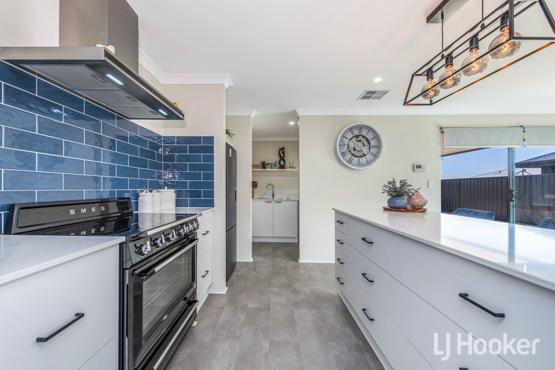 At the heart of the home lies a stunning open-plan living and dining area, seamlessly connecting to a chef's kitchen designed to impress, showcasing premium appliances, including a statement SMEG freestanding induction cooktop and 90cm oven, this space balances functionality with sophistication. A generous walk-in scullery, complete with sliding window access to the alfresco, ensures effortless entertaining while keeping the main kitchen pristine.
