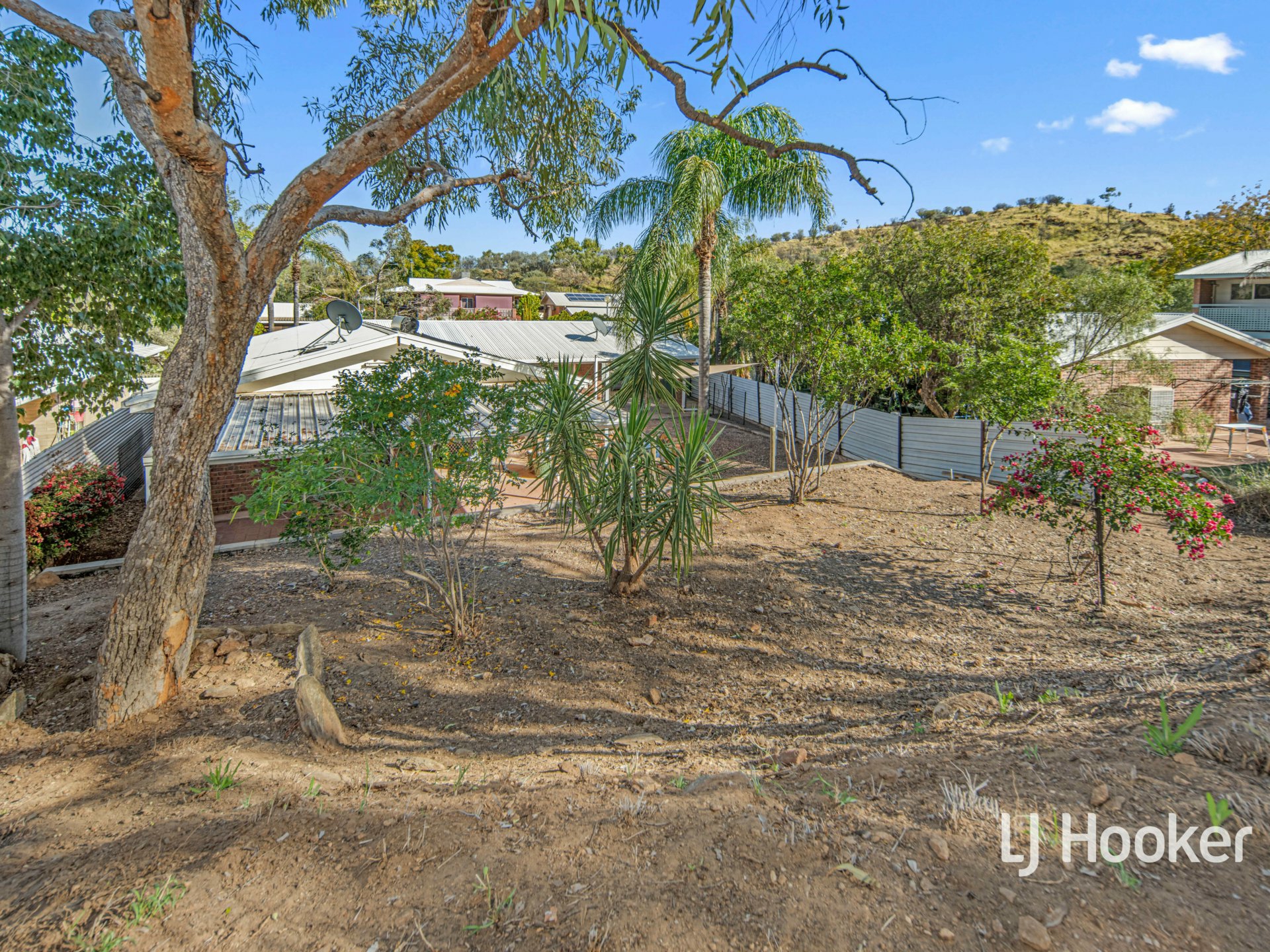 The low-maintenance rear yard is a blank canvas for your gardening creativity, currently featuring a few established shrubs and no lawn to mow.