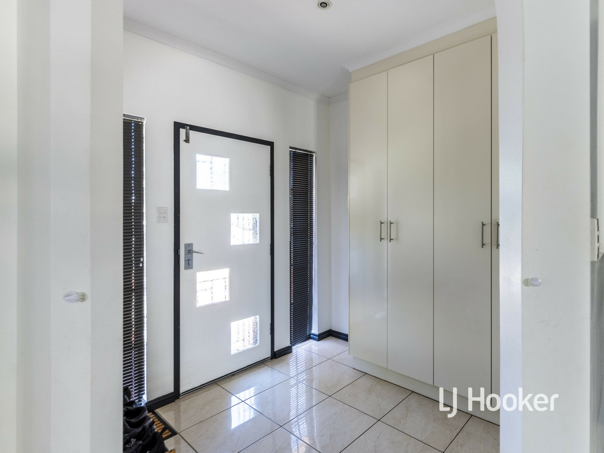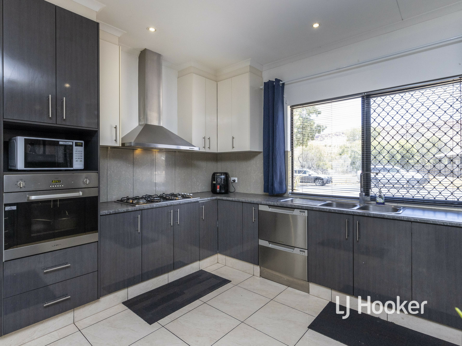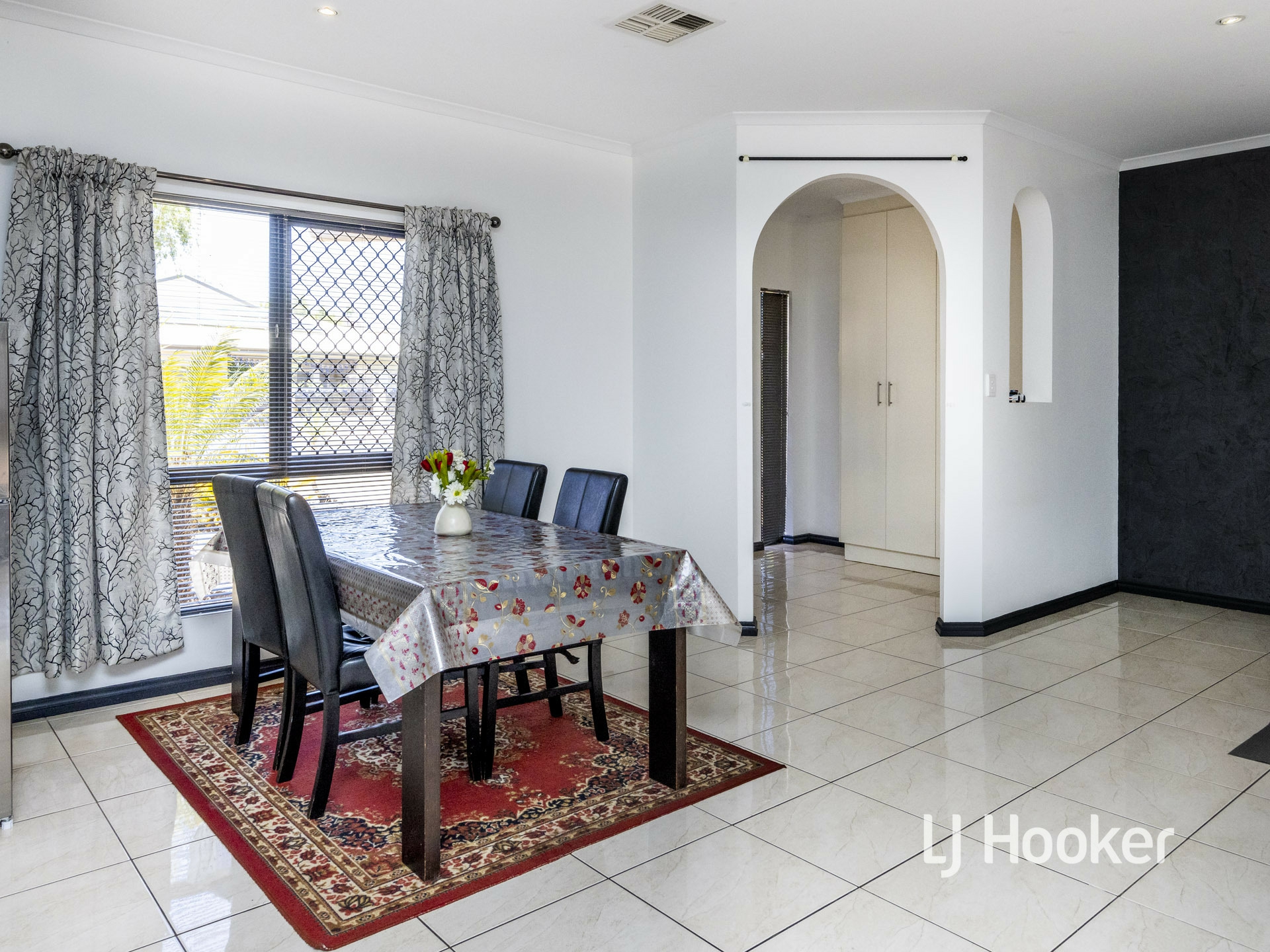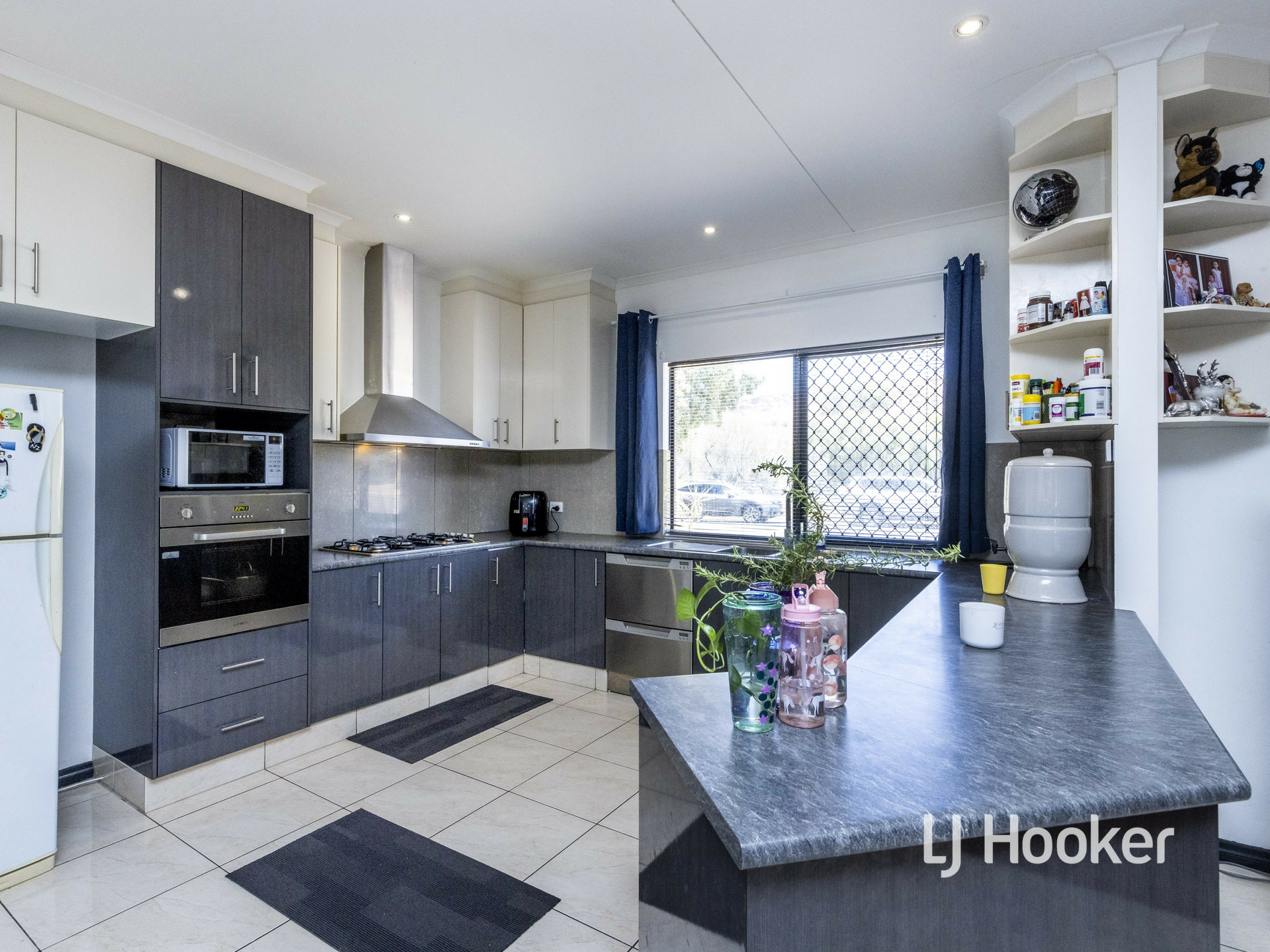 Large storage cupboards feature in the entry area of the home. Then step into the large, open plan living area that includes a designated dining area and fully serviced gas kitchen. The black and white colour theme permeates through the home with the kitchen being no exception. Stainless steel appliances have been installed that include a gas cooktop, rangehood and dishwasher. There is a very family friendly breakfast bar and pantry storage.