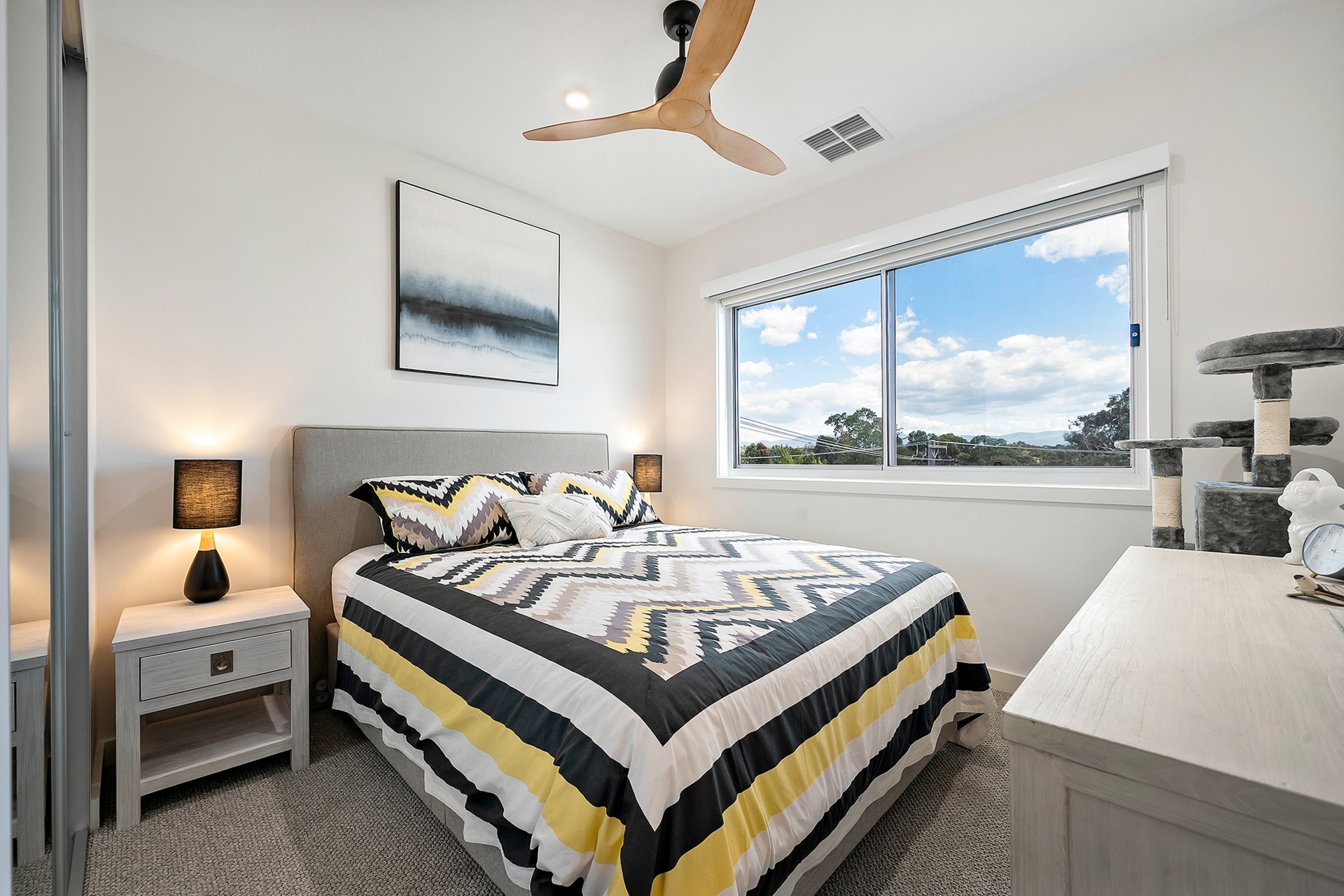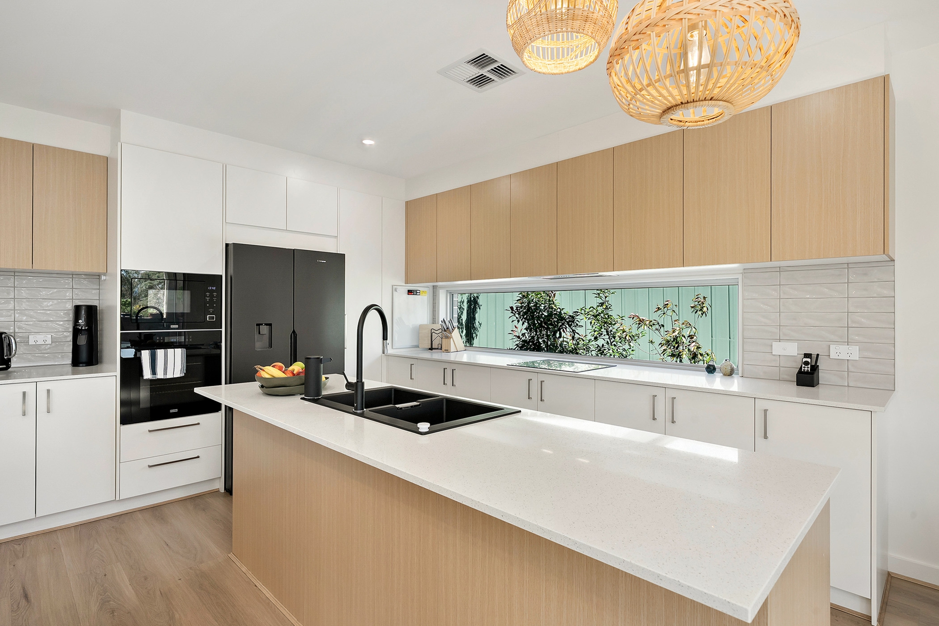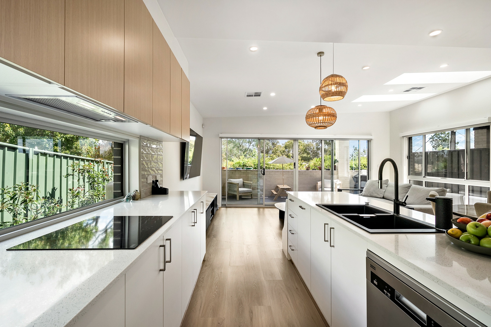 Step inside and you are immediately welcomed by a light-filled interior, enhanced by timber-look vinyl flooring throughout the living areas and soft wool carpets in the bedrooms, creating a warm yet refined atmosphere.