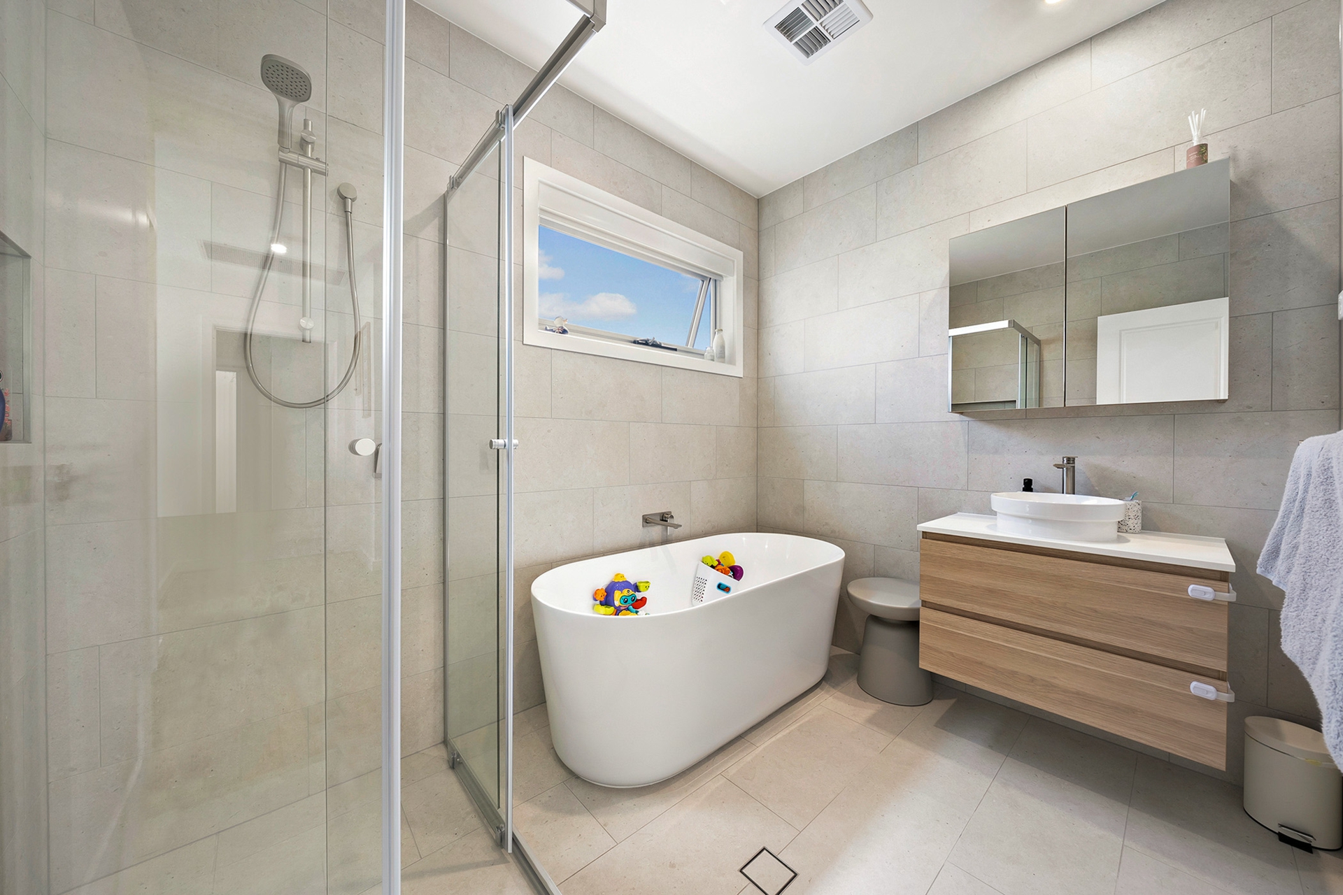 The floorplan has been cleverly designed for flexibility, with the master bedroom located downstairs, complete with a walk-in robe and private ensuite, providing a peaceful retreat away from the rest of the home. Upstairs, two additional bedrooms with built-in robes are serviced by a well-appointed bathroom with a separate WC, ideal for family living.