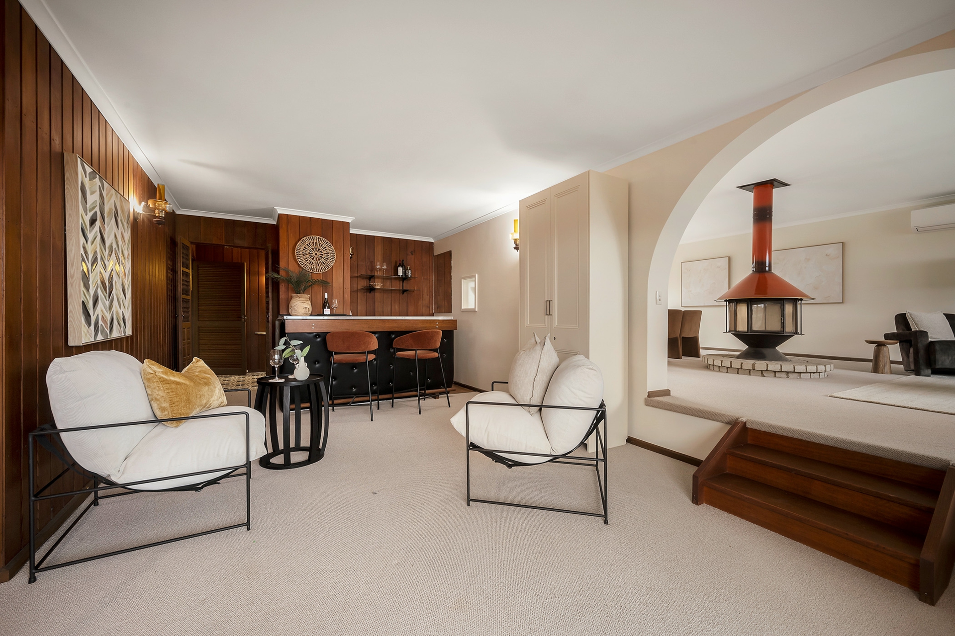 A home that embraces both warmth and individuality, you'll fall in love with its unique character. The Canadian-imported fireplace, cedar timber panelling, and retro design elements create a timeless charm rarely found in today's market. The flexible floorplan offers two separate living areas and a downstairs rumpus room, ideal for entertaining, working from home, or giving the kids their own retreat. The brand new electric cooktop & oven and a recently installed Bosch dishwasher add modern comfort, while the large patio is the perfect setting for weekend gatherings, with panoramic views stretching out to the Brindabellas.