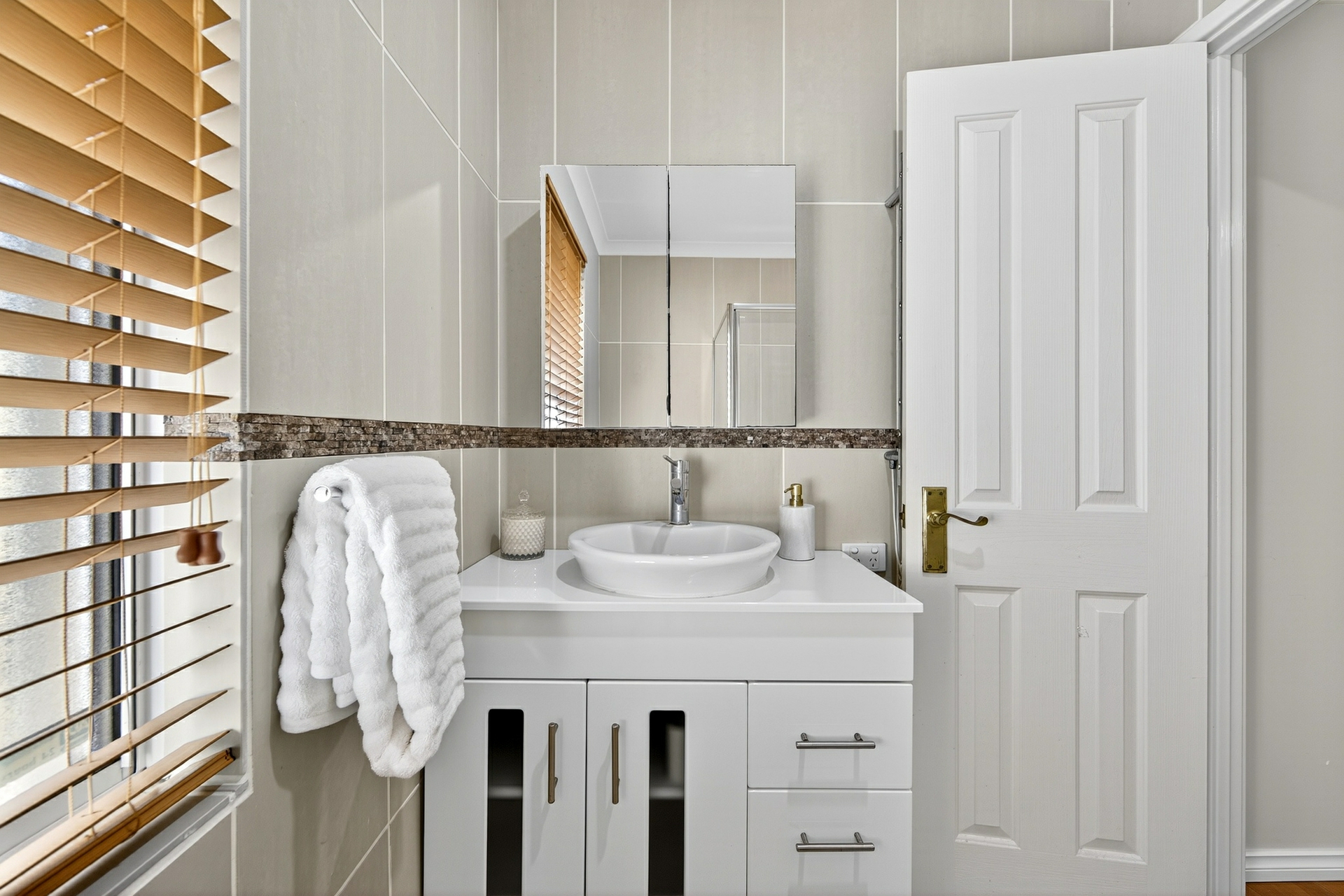 • The master bedroom is spacious and indulgent, complete with custom walk-in robes and a luxe ensuite featuring floor-to-ceiling tiles.