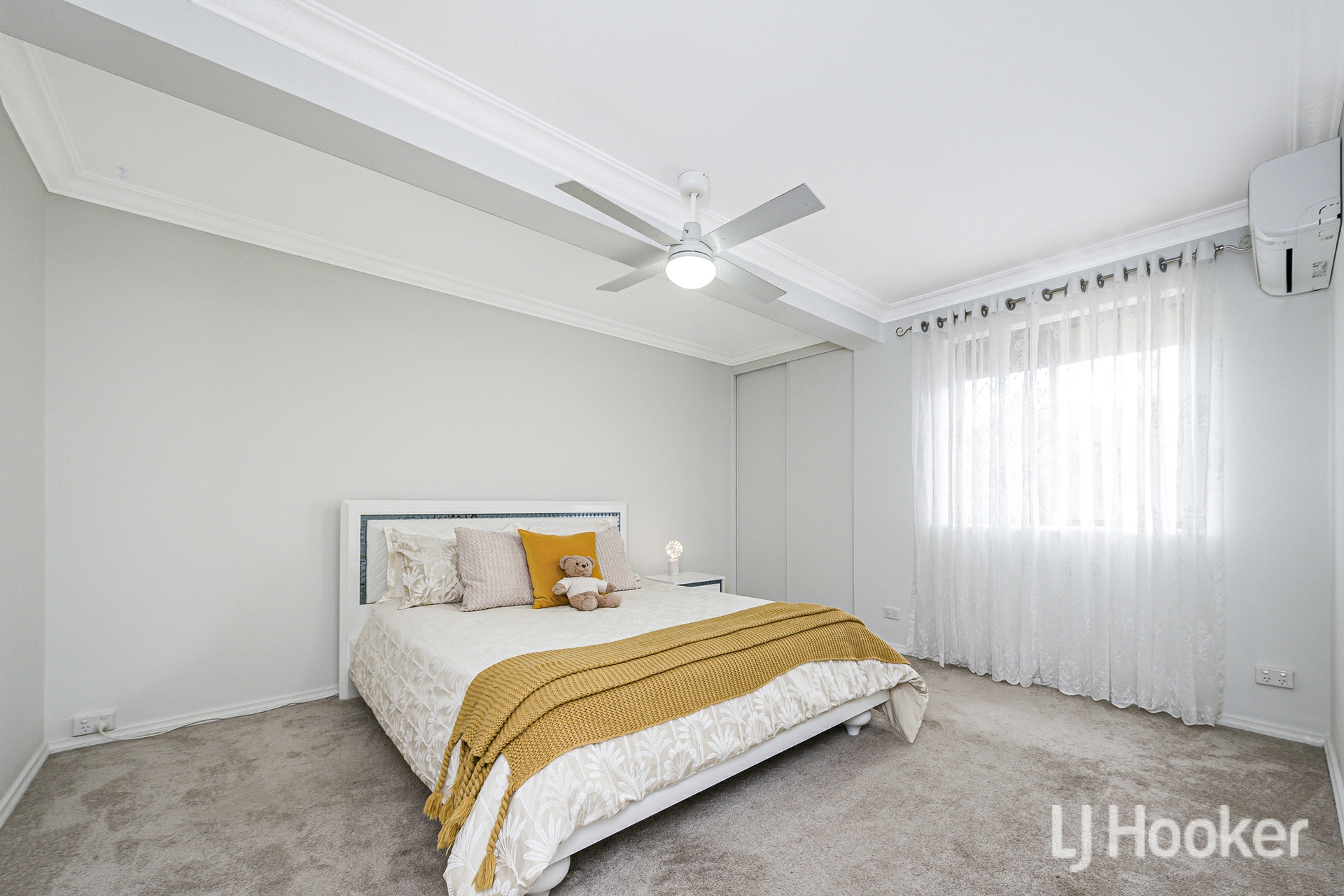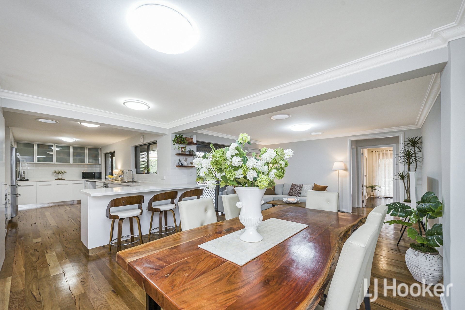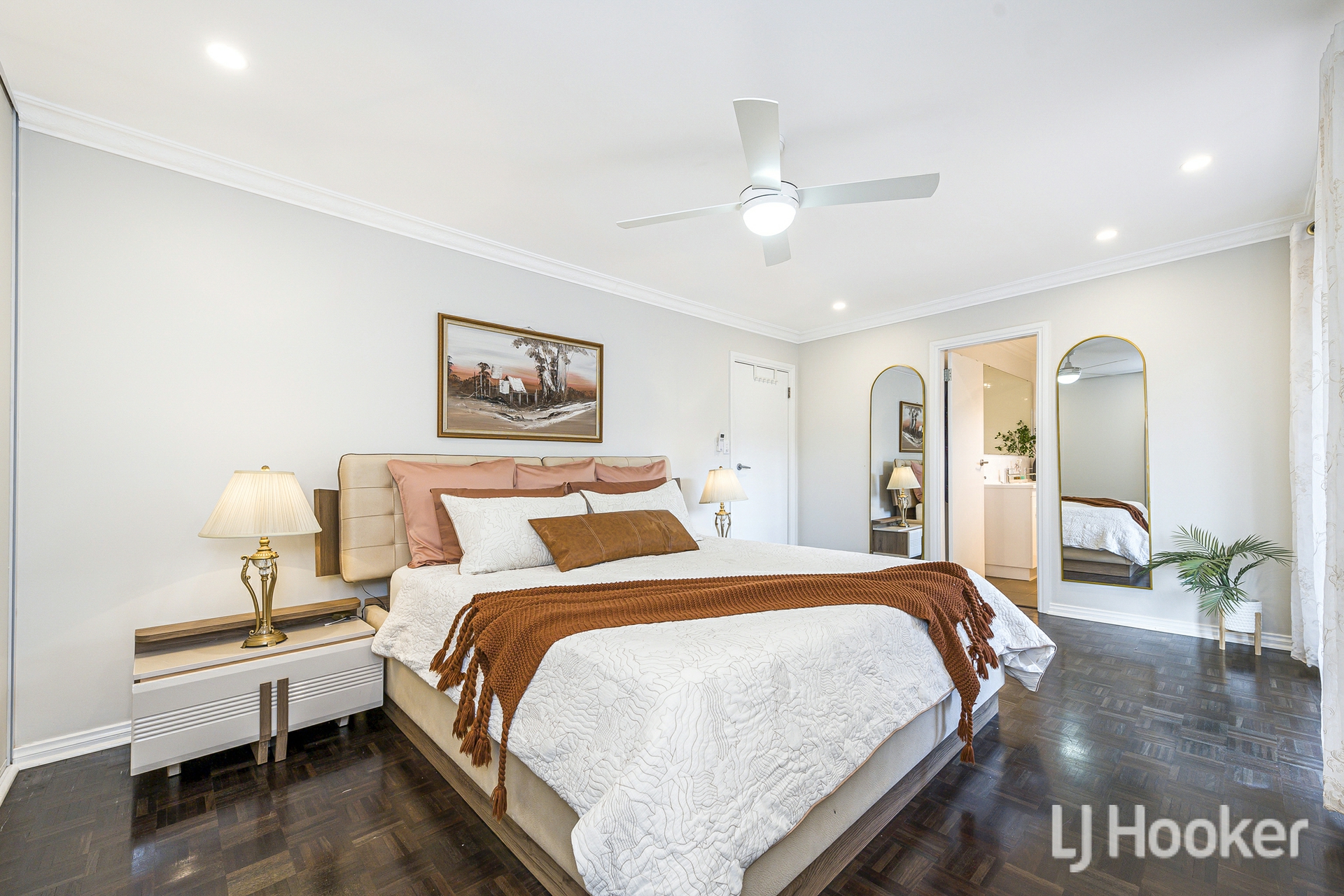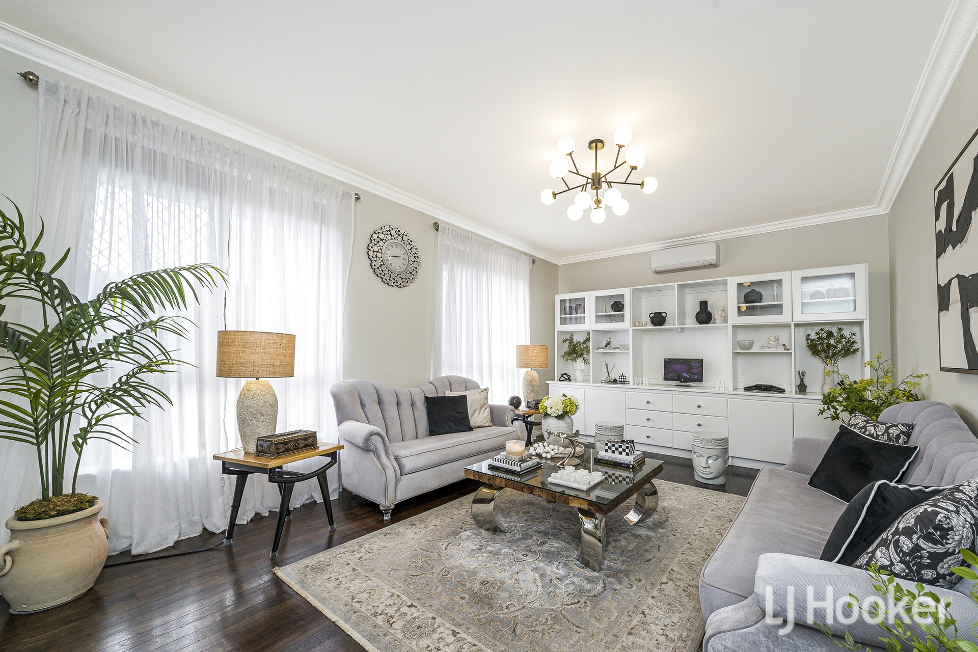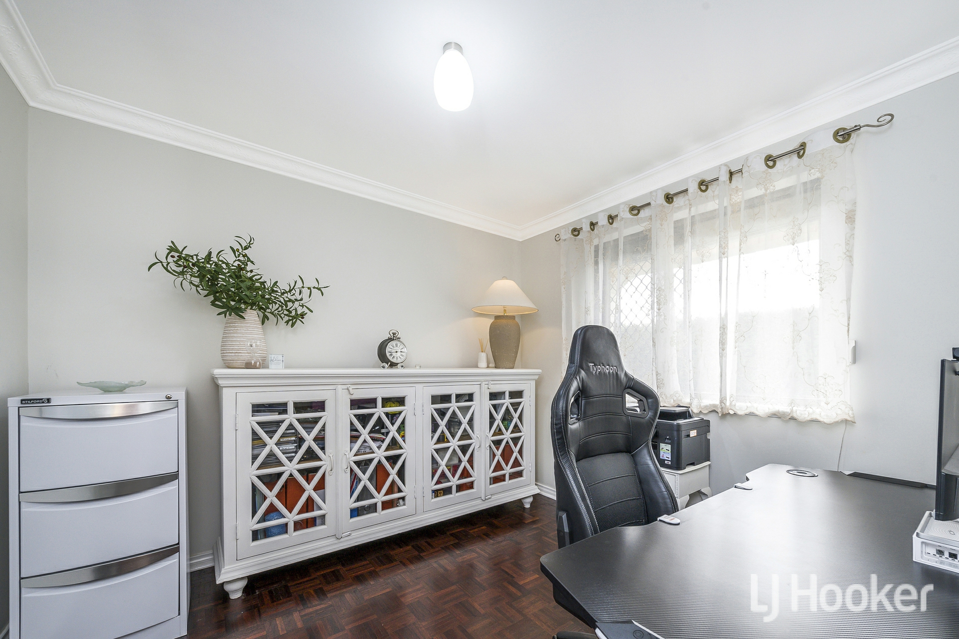 Inside, warmth meets functionality. Rich Jarrah flooring anchors the sunken front lounge, while a dedicated study/home office provides the ideal work-from-home retreat. All the living areas and bedrooms enjoys its own air-conditioning, ensuring year-round comfort no matter the season.