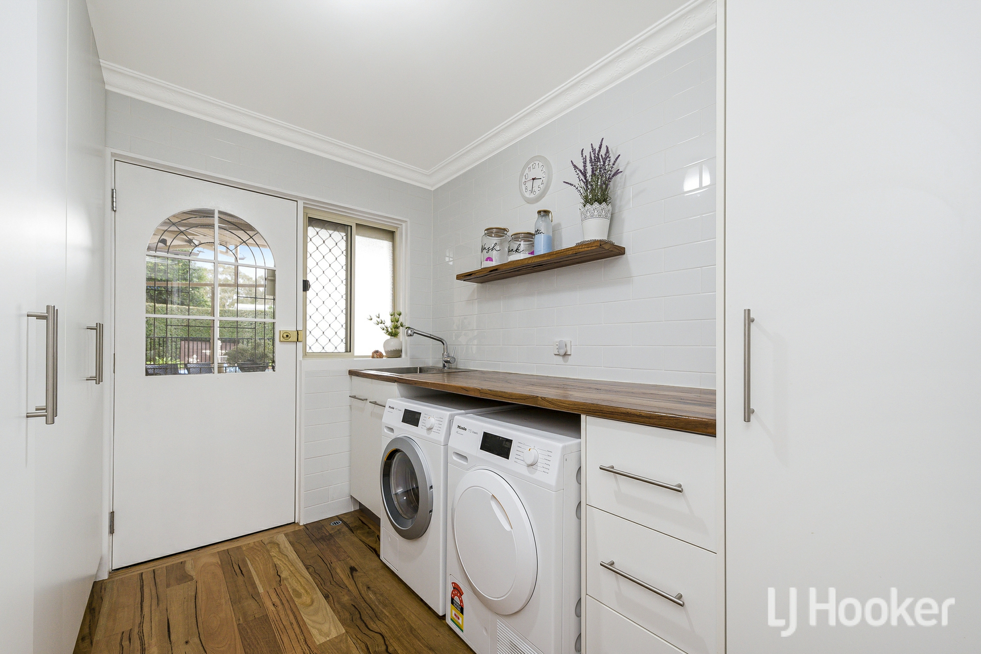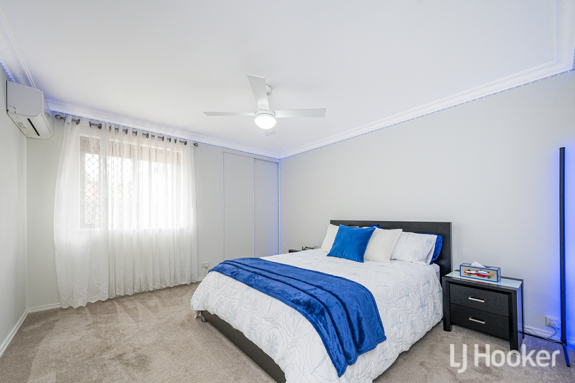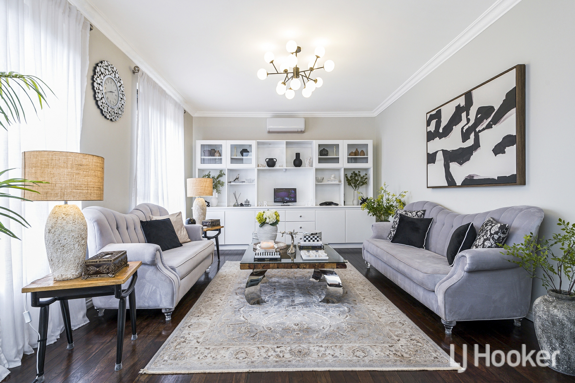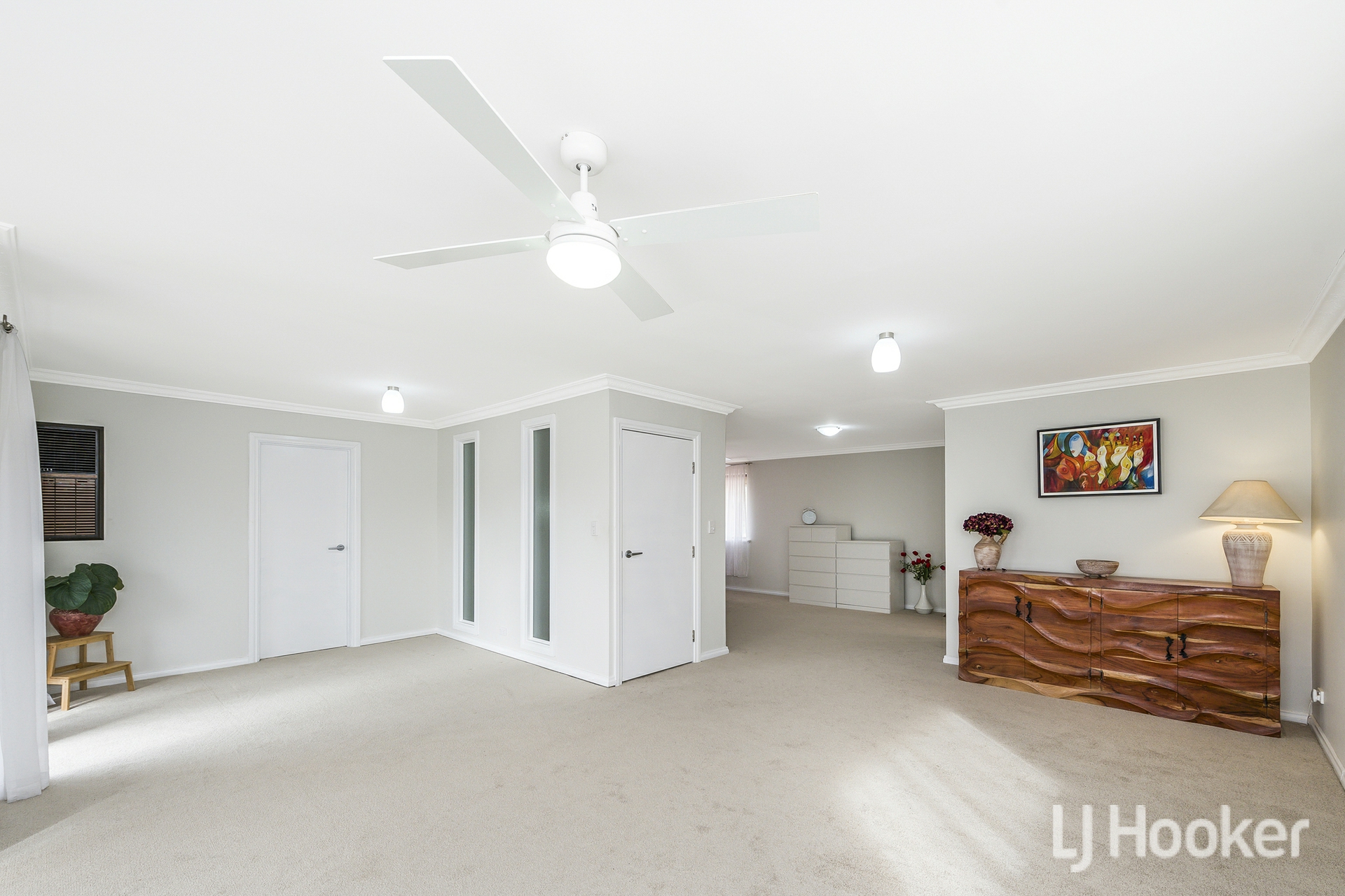 Inside, warmth meets functionality. Rich Jarrah flooring anchors the sunken front lounge, while a dedicated study/home office provides the ideal work-from-home retreat. All the living areas and bedrooms enjoys its own air-conditioning, ensuring year-round comfort no matter the season.
