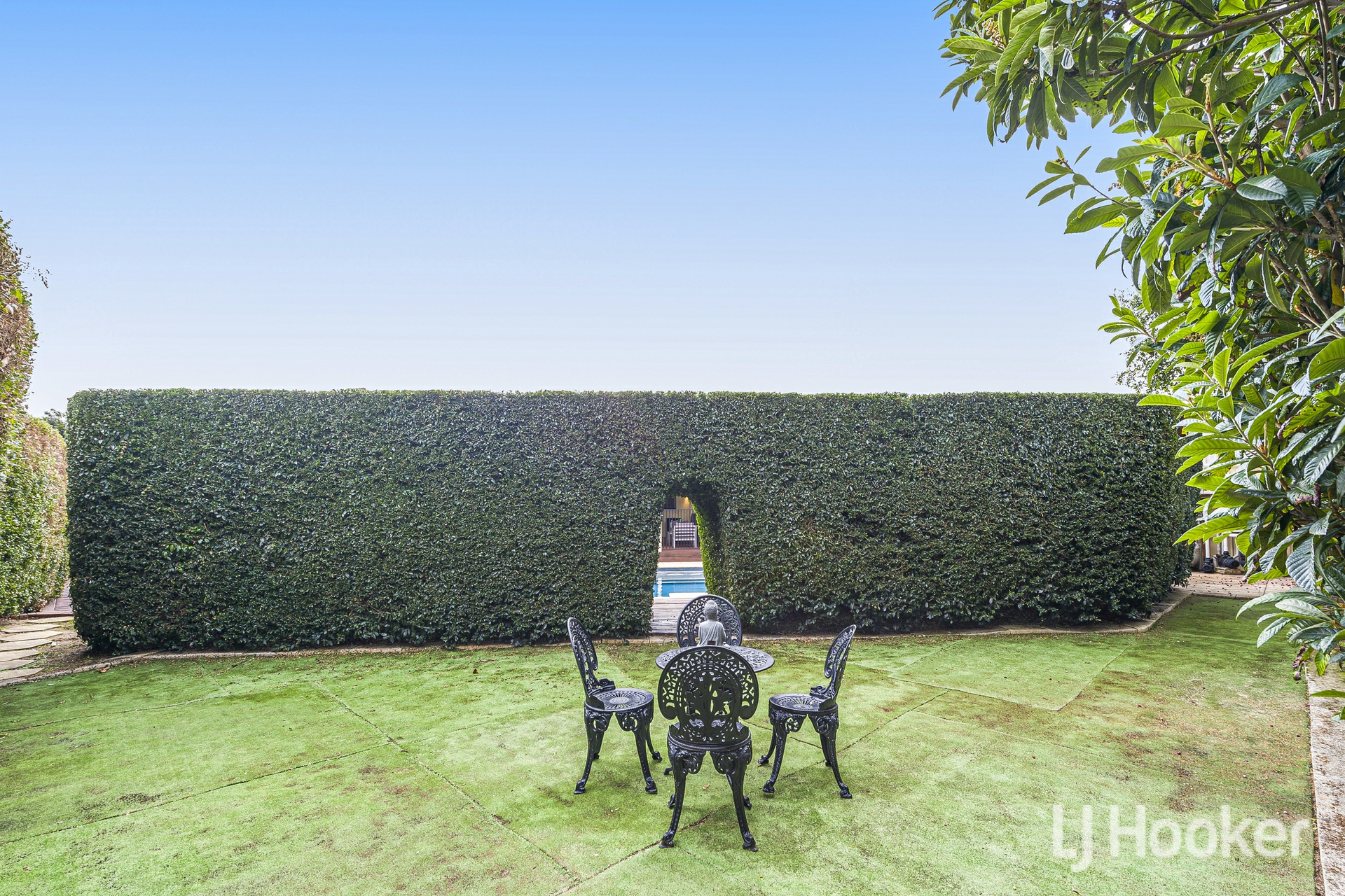 A hidden zone behind a magical hedge offers a quiet space for reflection. Herb gardens and a collection of fruit trees-orange, loquat, mandarin, lemon, guava, fig and peach-bring colour and life to every corner.
