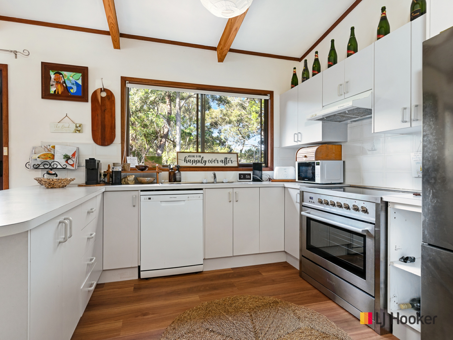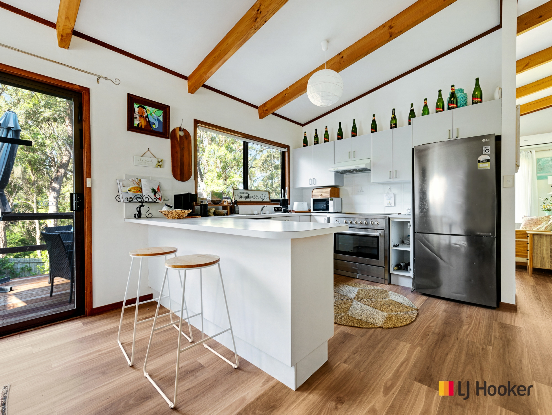 Lots of gorgeous features like exposed beams, split level, large timber deck, ensuite off the main bedroom, large fully enclosed back yard, Reverse cycle aircon and the feeling of being in the bush with access into the reserve behind the house.
