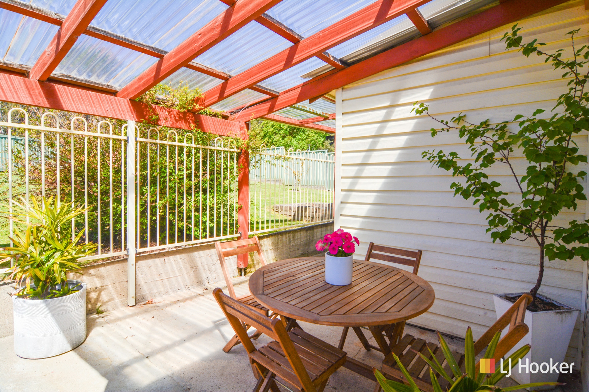 There is a covered BBQ area off the rear of the home, a sunny front porch that offers a pleasant view to the West, and the large 632 square metre block has a single carport and garden shed.