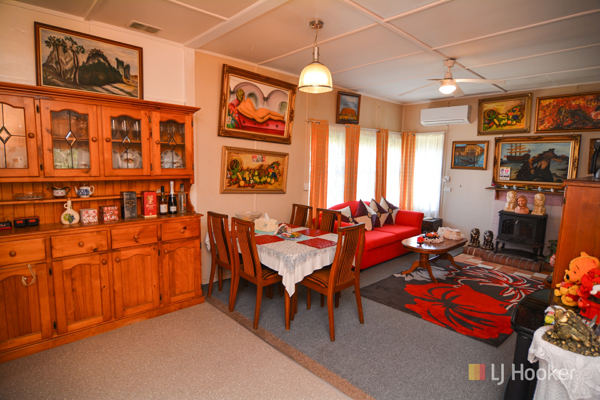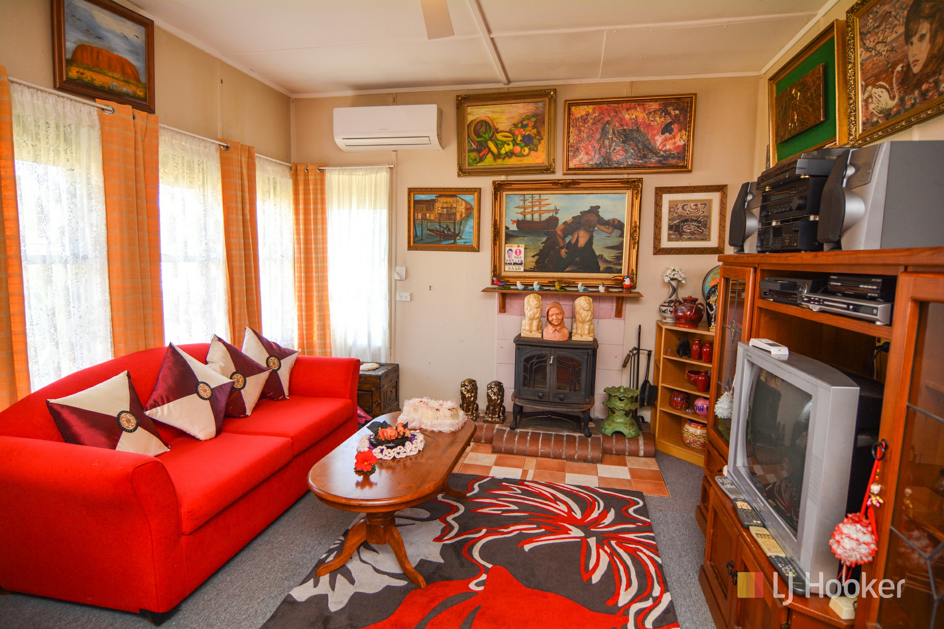 The home features 2 bedrooms, an open plan living and dining room with wood burner and split system, a neat laminate kitchen with electric stove, and a neat bathroom. There is a small sunroom at the back of the home, roller shutters to most windows, and a handy second toilet in the laundry.
