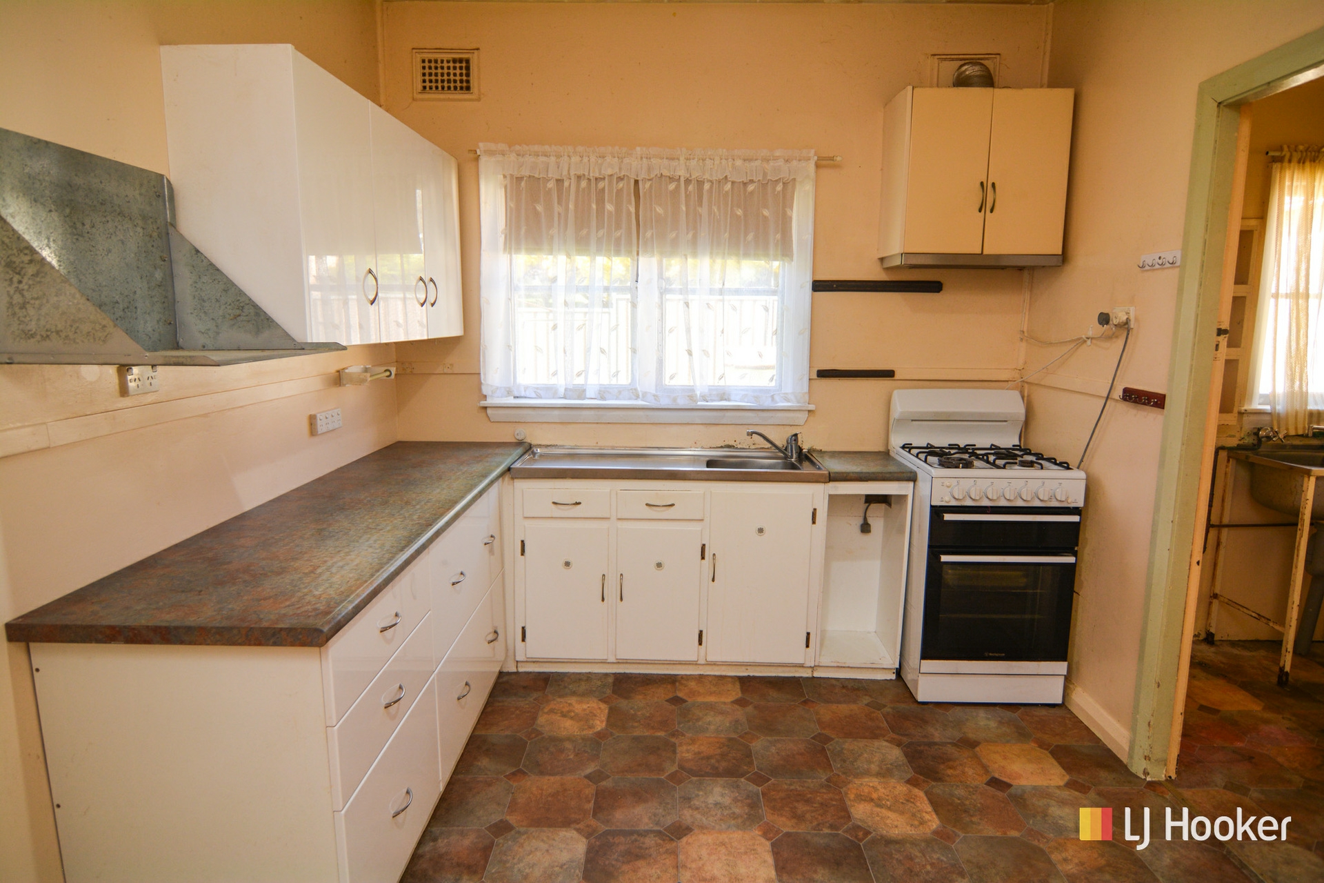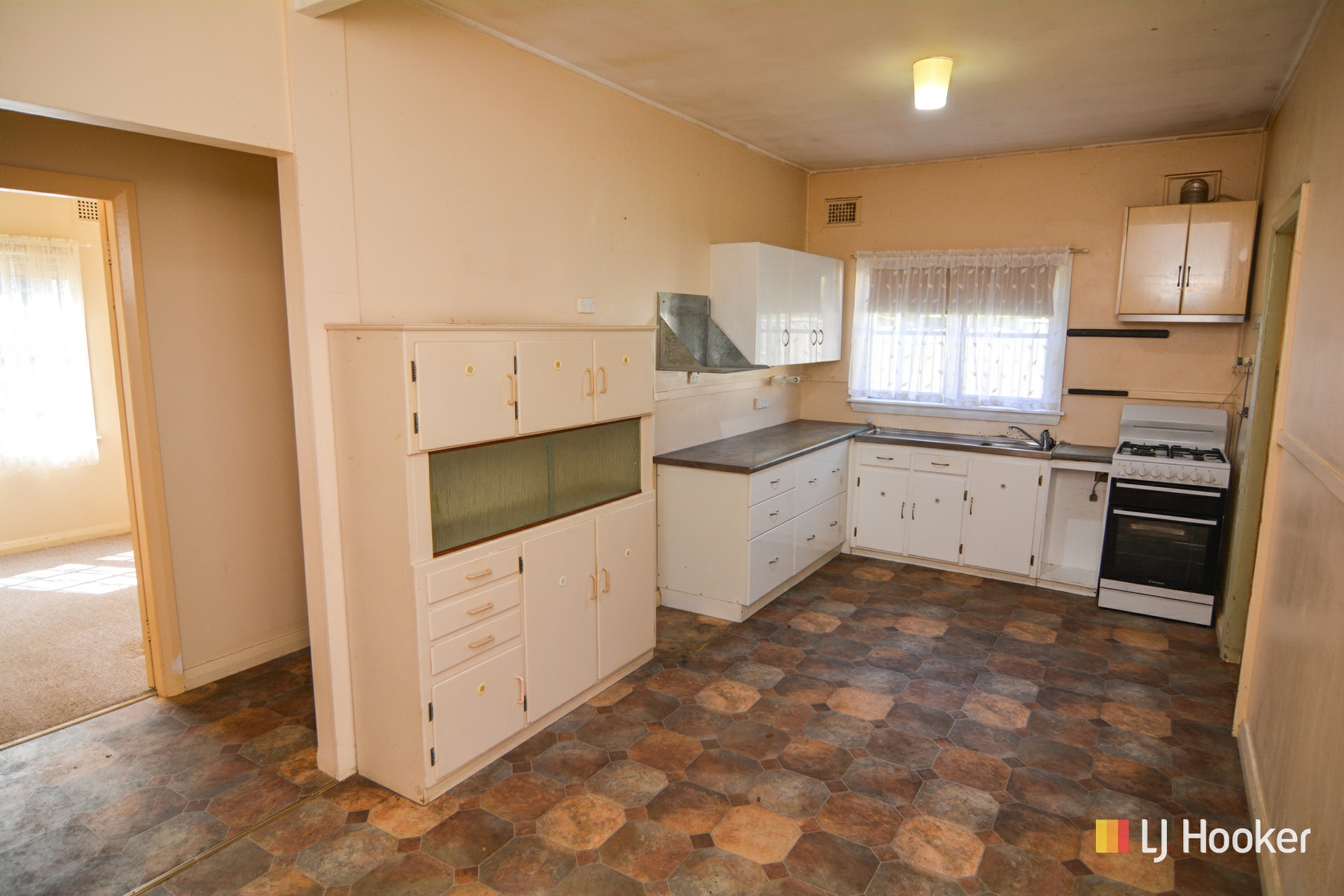 The layout features 3 bedrooms, an original eat-in kitchen with natural gas stove, a formal lounge room with natural gas heater, and a tidy bathroom and laundry.