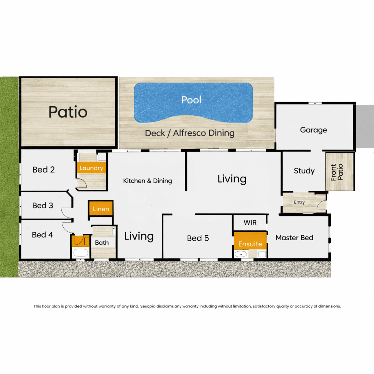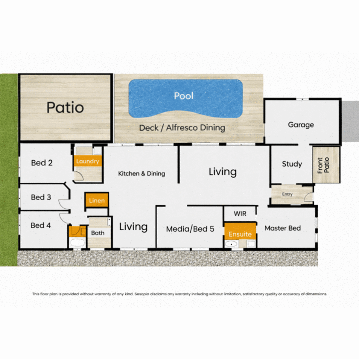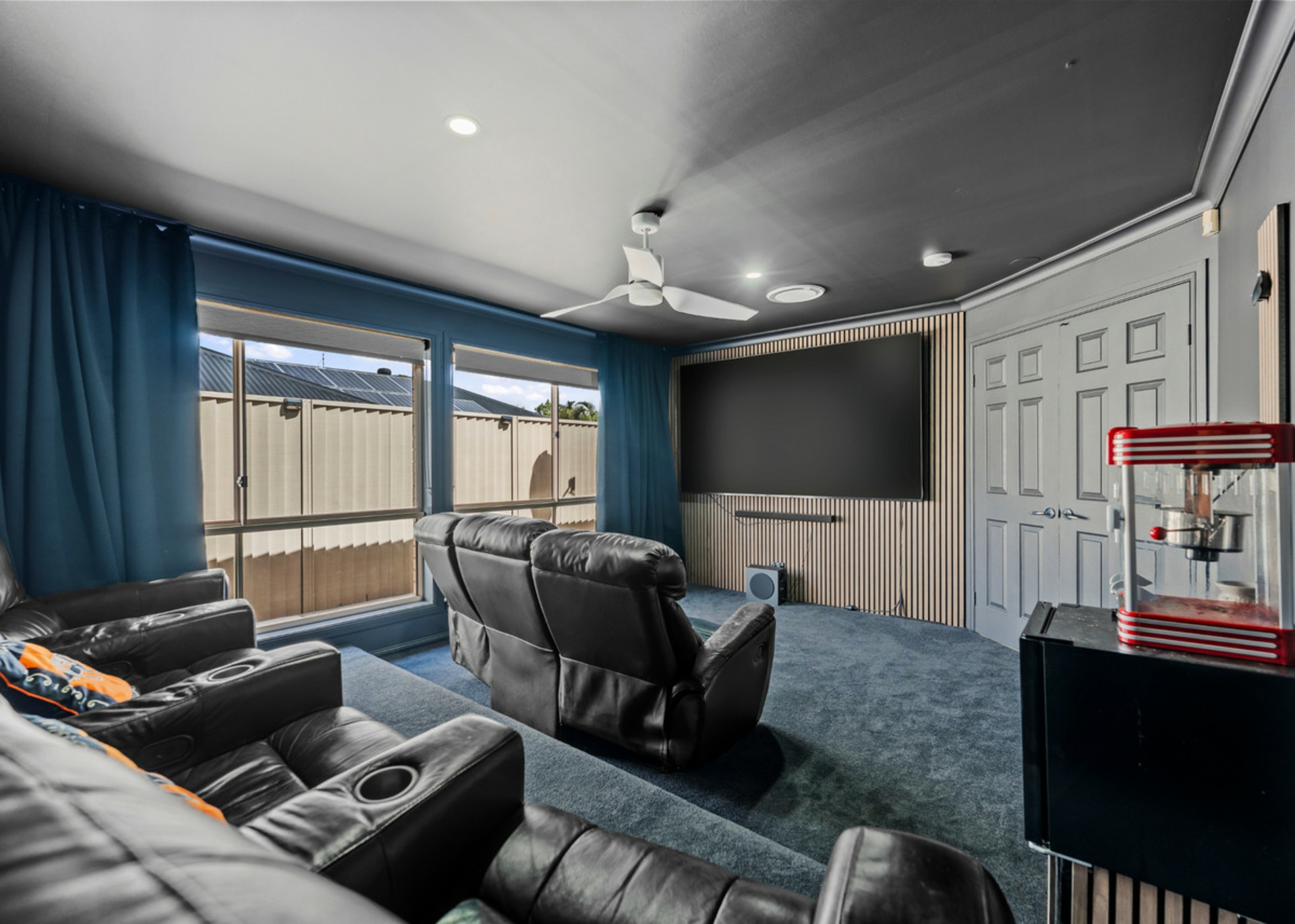 - Three separate living areas including dedicated media room