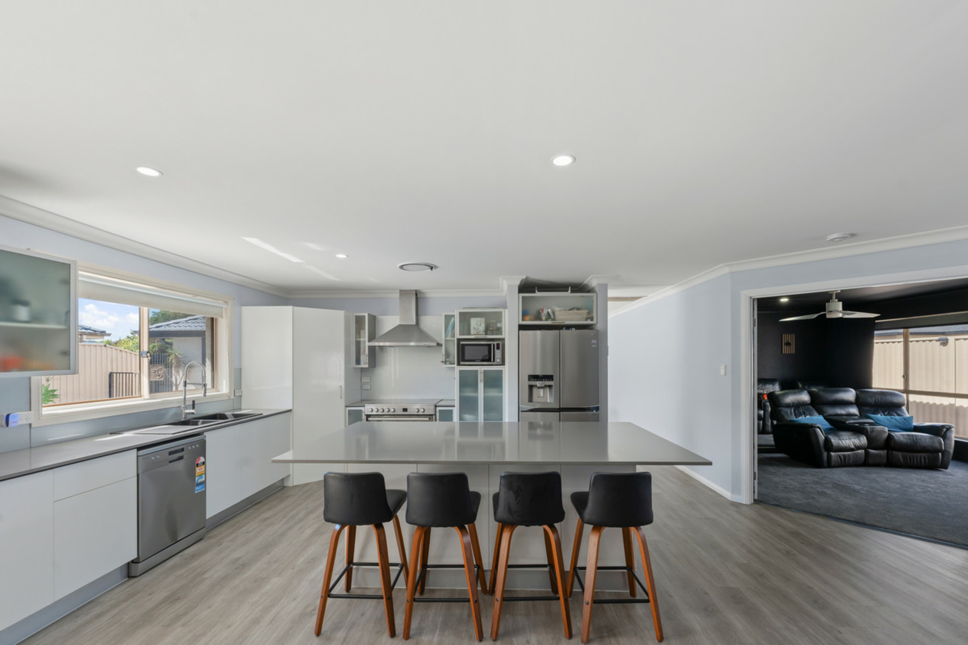 Extra-high ceilings and plantation shutters feature throughout, enhancing the home's sense of quality and refinement. At the centre of the property, the open-plan kitchen, living and dining area forms the true heart of the home, complete with a 900mm electric cooktop and oven plus quality appliances. A dedicated media room (or optional 5th bedroom), additional separate living area and a home office/study, provide three distinct living zones, ensuring flexibility for growing families.