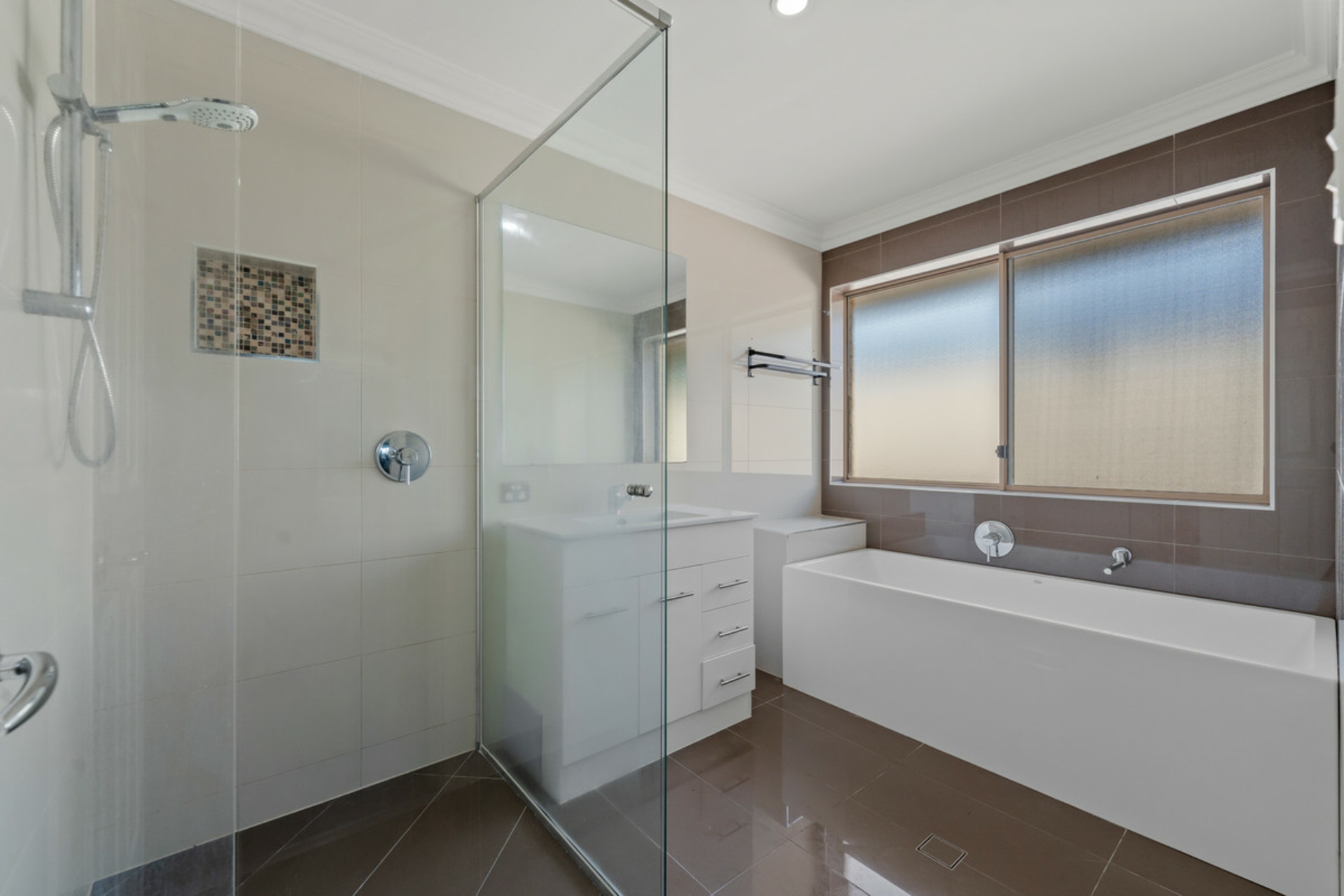 The master suite is privately positioned at the front of the home, complete with a walk-in robe and ensuite, creating a peaceful retreat away from the remaining bedrooms located at the rear alongside the main bathroom with bathtub, ideal for children or guests.