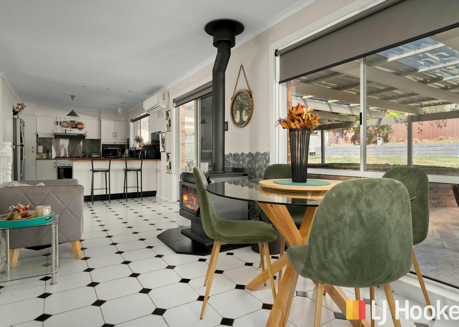 - Light filled open living, kitchen and dining