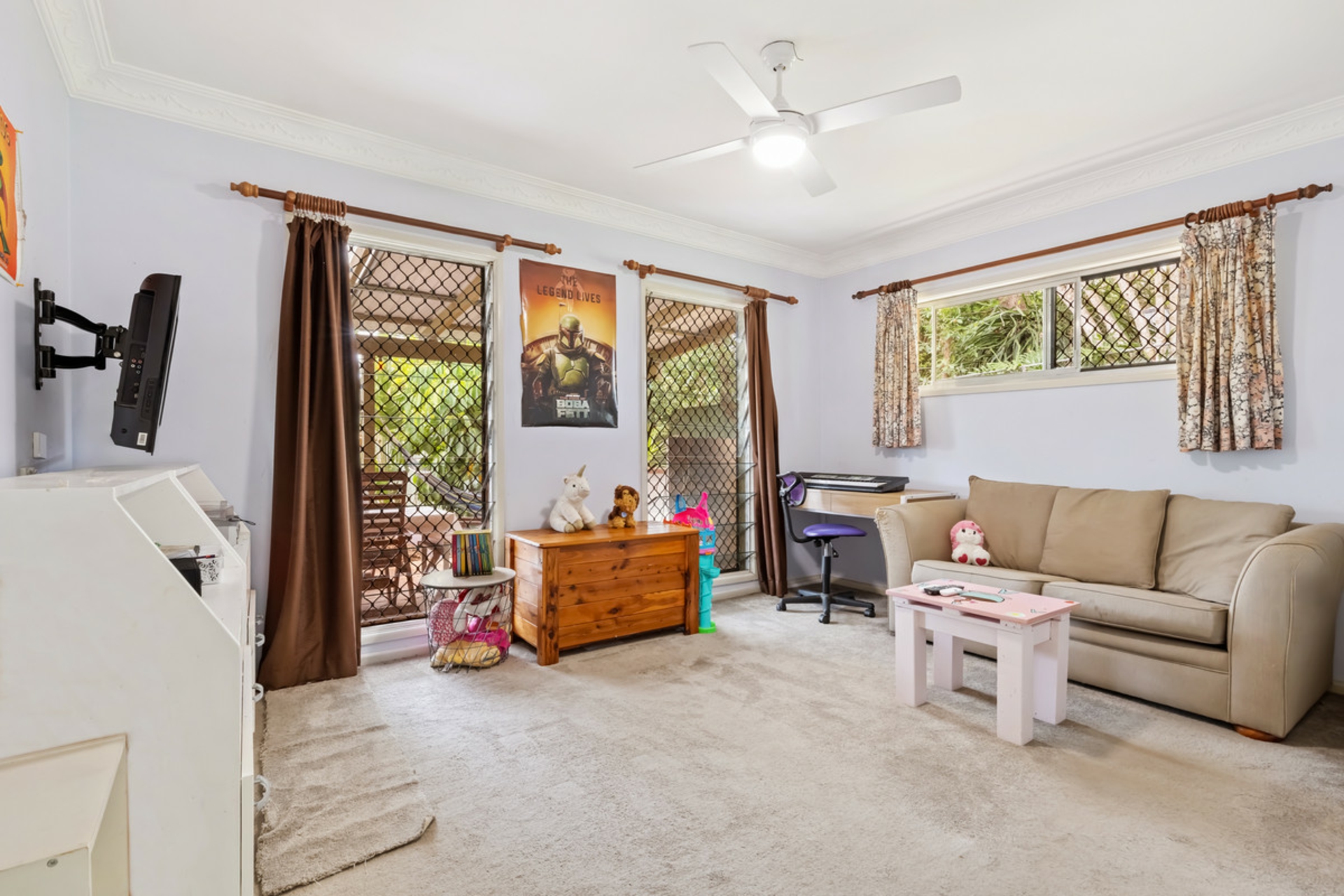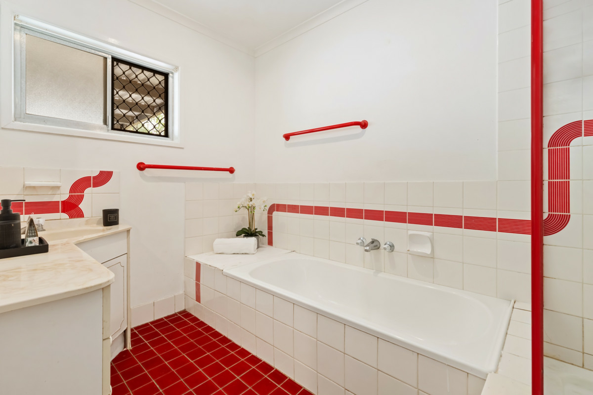 To the front of the home is the original air-conditioned master bedroom with built-in and ceiling fan, which could be used as another living space. Another two bedrooms with ceiling fans and built-ins to this side of the home. To the rear of the home is the master bedroom with parent's retreat. This versatile room could be used as a study or convert into a large walk-in robe and convert the current walk-in robe into an ensuite as it backs onto the laundry for easy plumbing access.