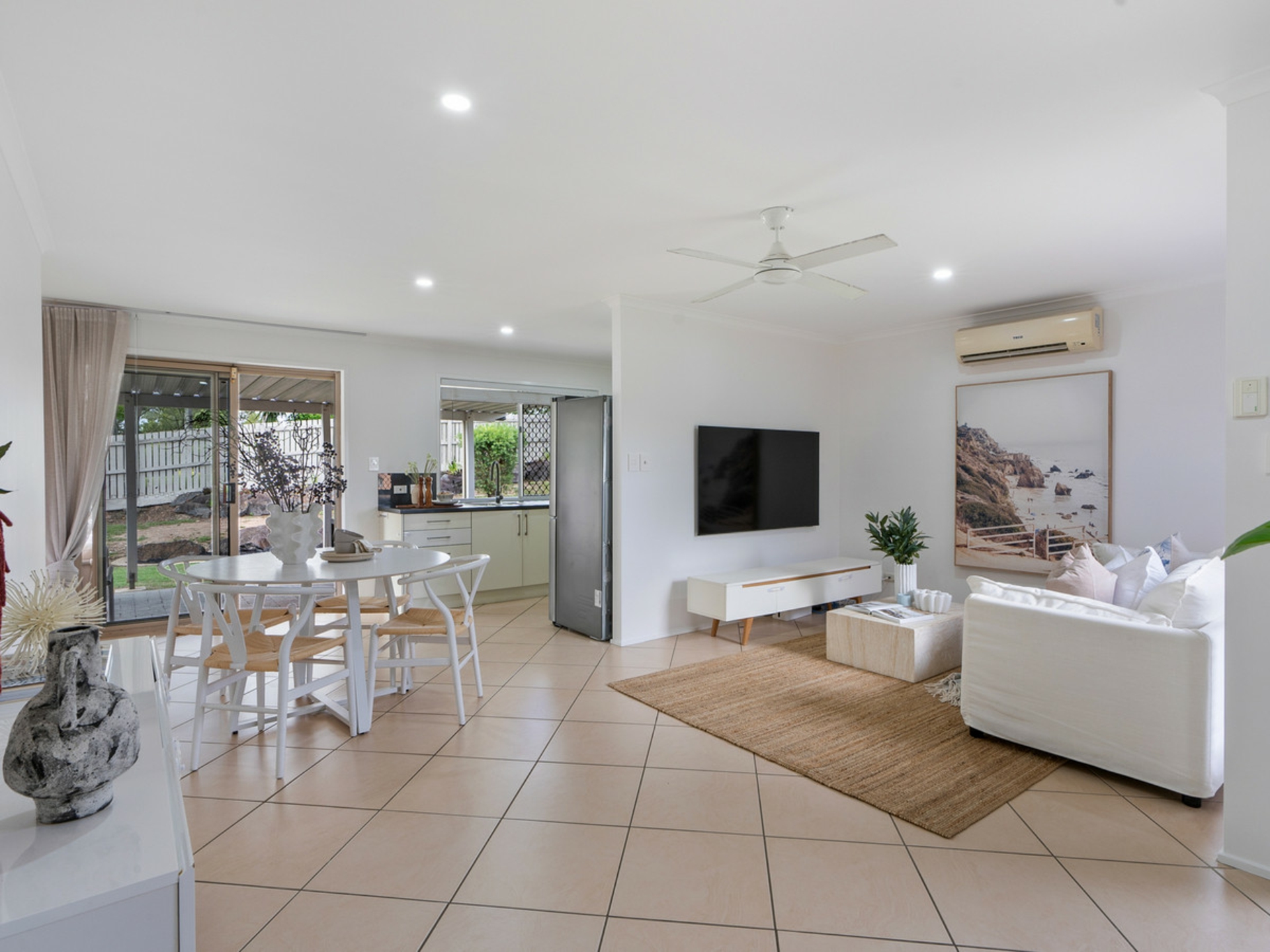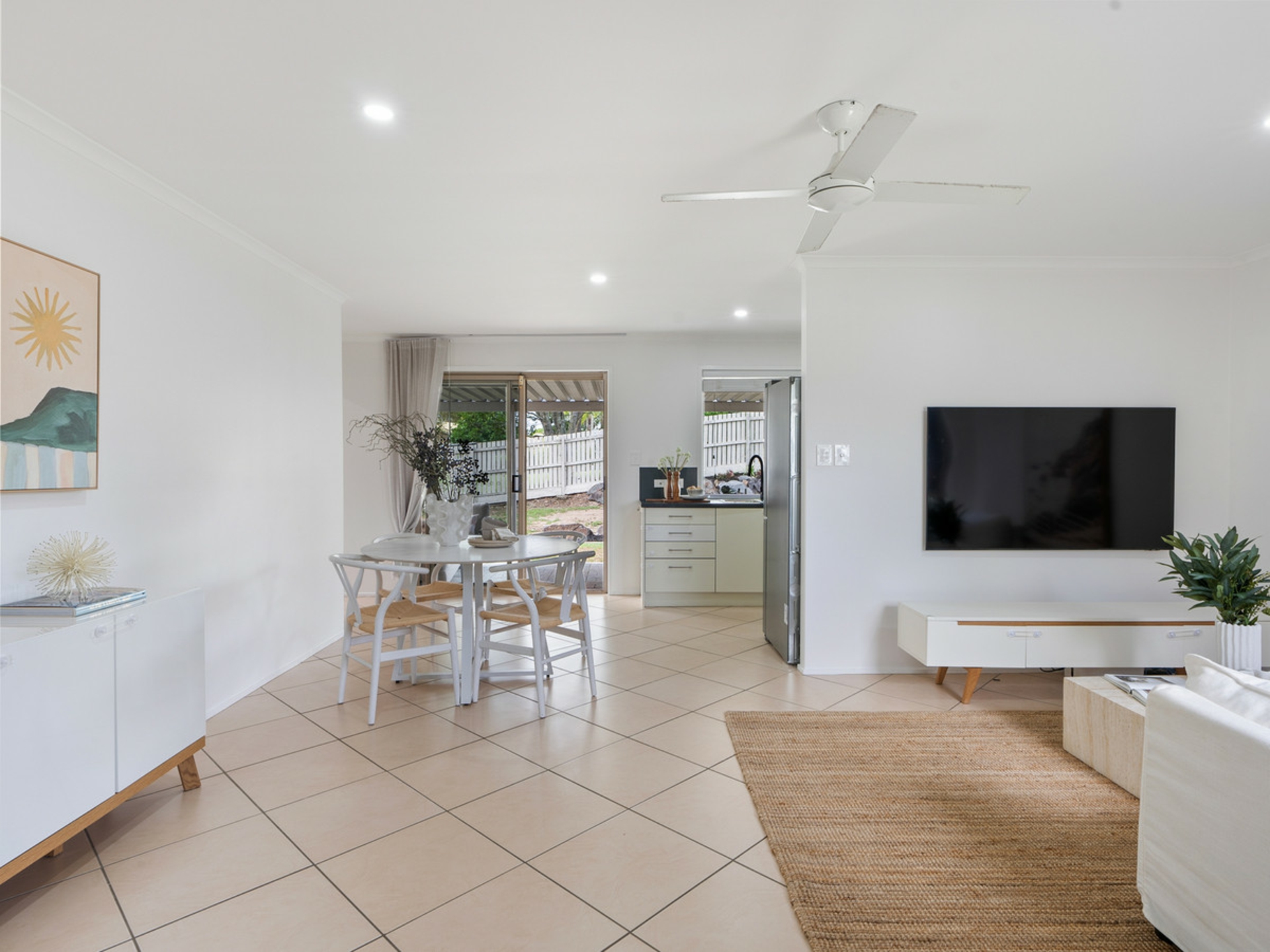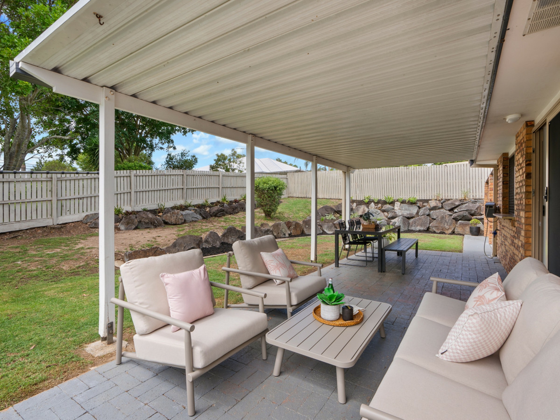 The functional floorplan includes three well-sized bedrooms, a central bathroom, and comfortable living spaces that flow effortlessly to the outdoors. With two-car accommodation and plenty of yard space, there's room for kids, pets, or future improvements.
