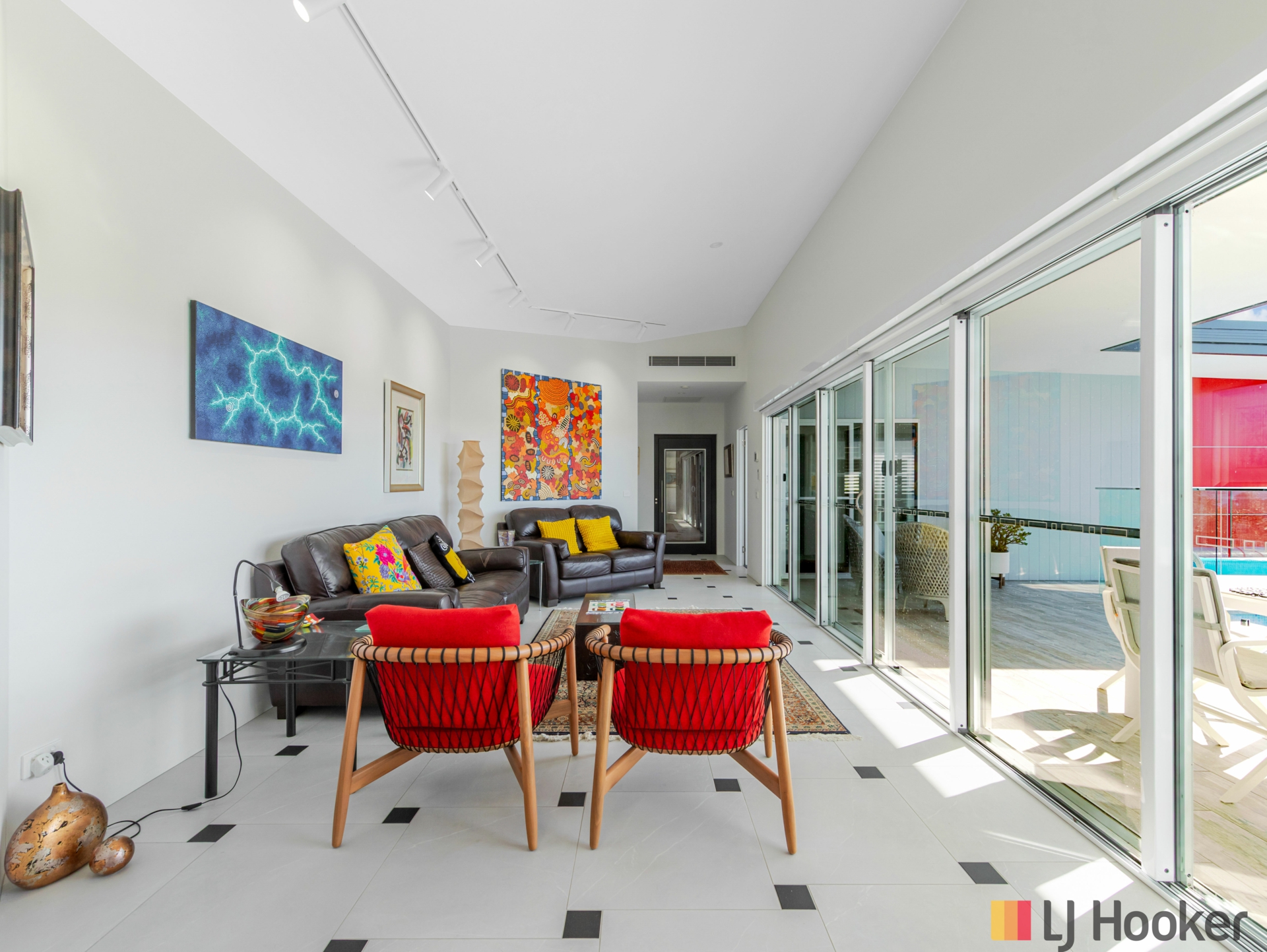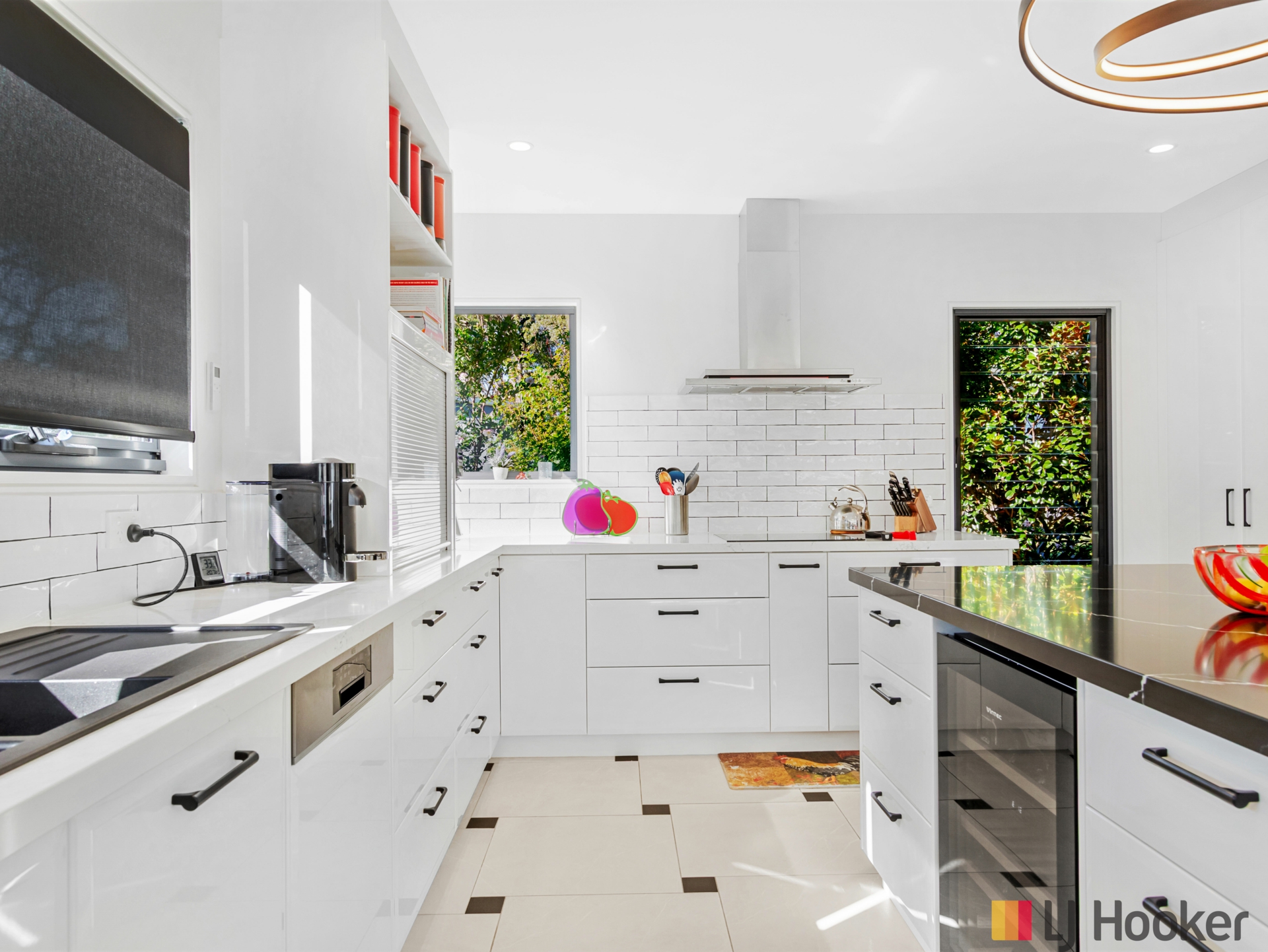 The home itself was designed by Involve Design and custom built in 2020 by Sealine Homes, with a strong focus on solar passive design and energy efficiency. Features include double-glazed windows where possible with louvre cross flow, Alucobond cladding, slab floor construction for thermal retention, 33 LG solar panels with a 10kW LG battery, plus R/C ducted air conditioning and additional wall-mounted AC to the lower level.