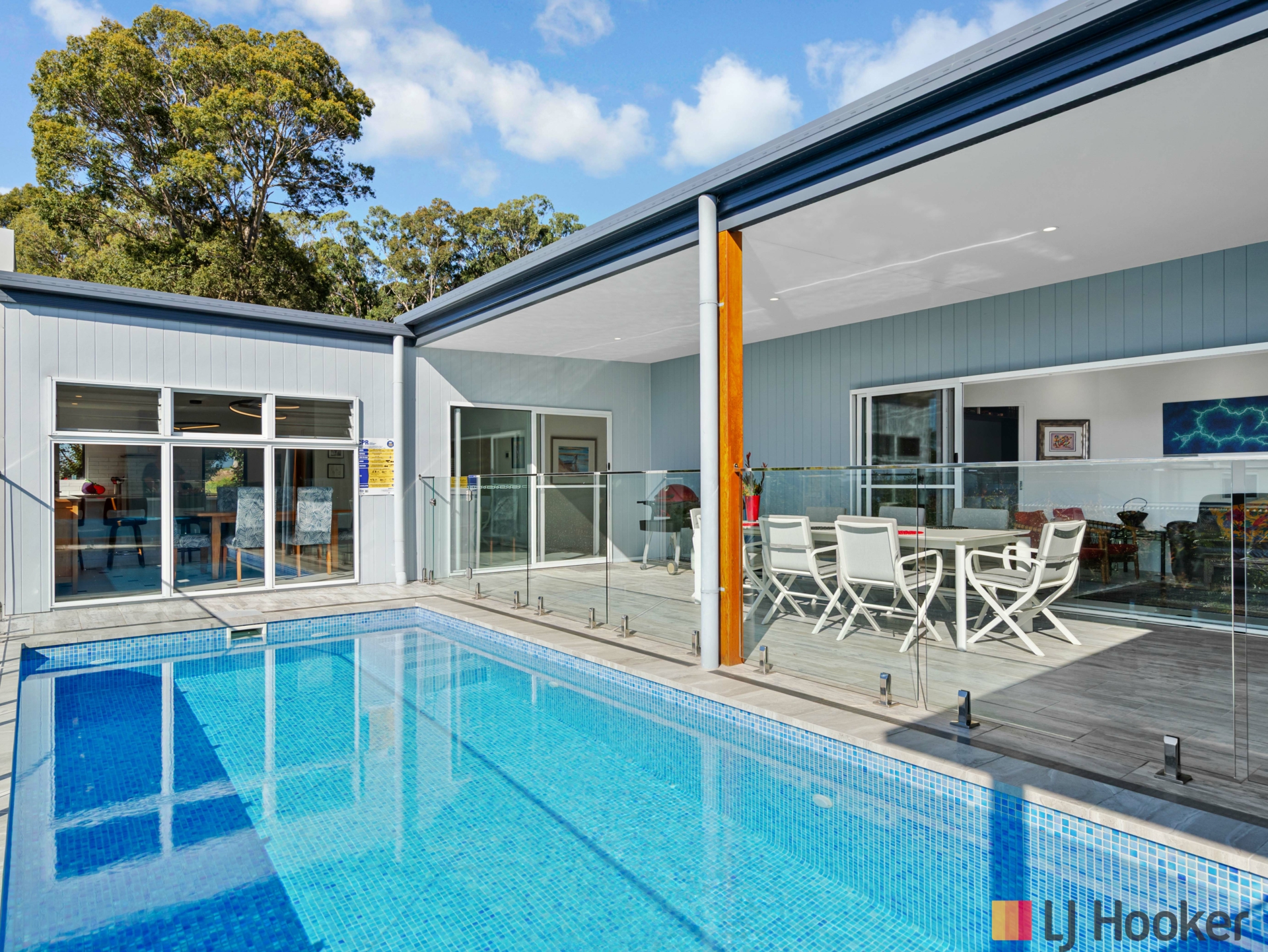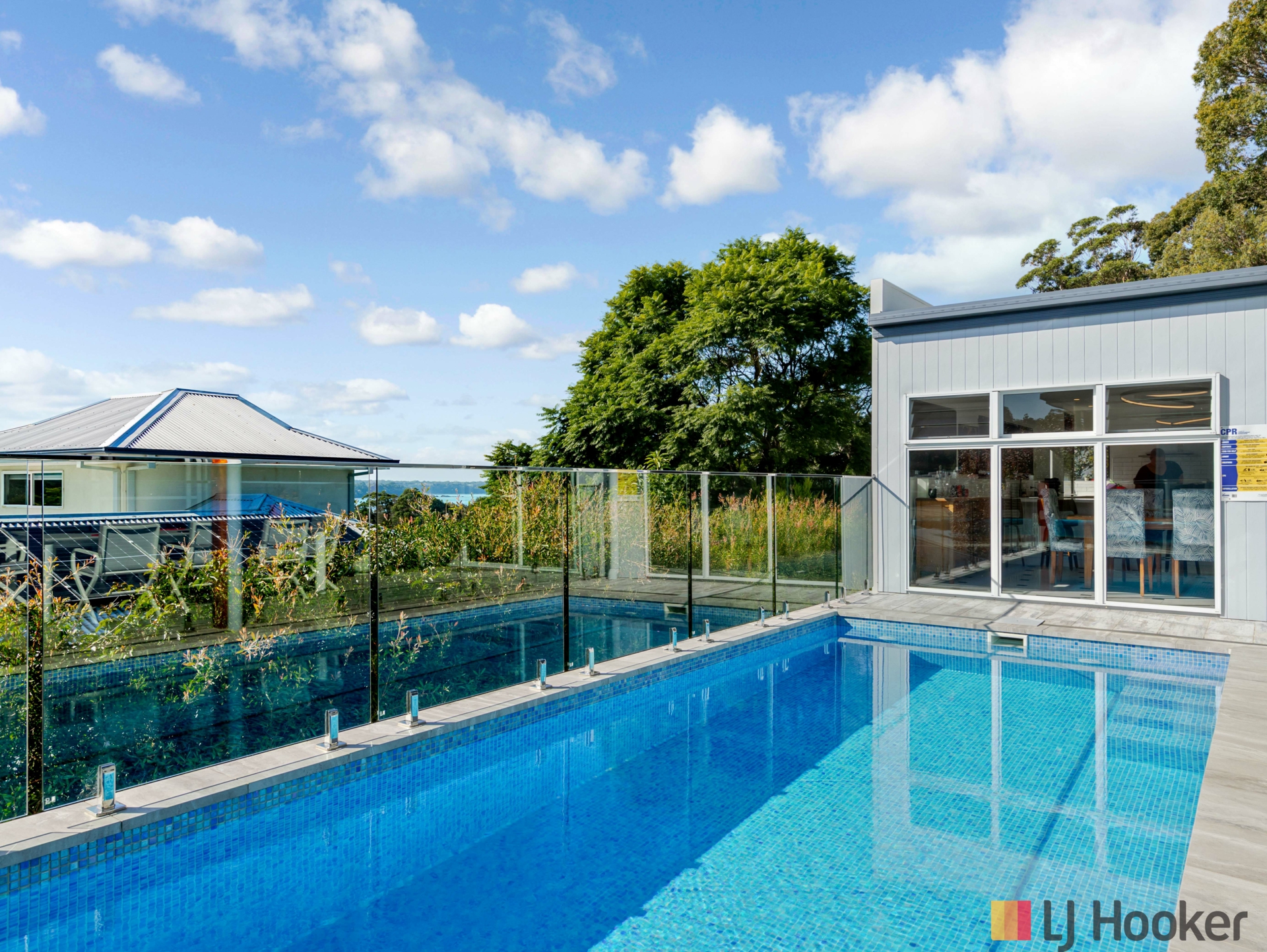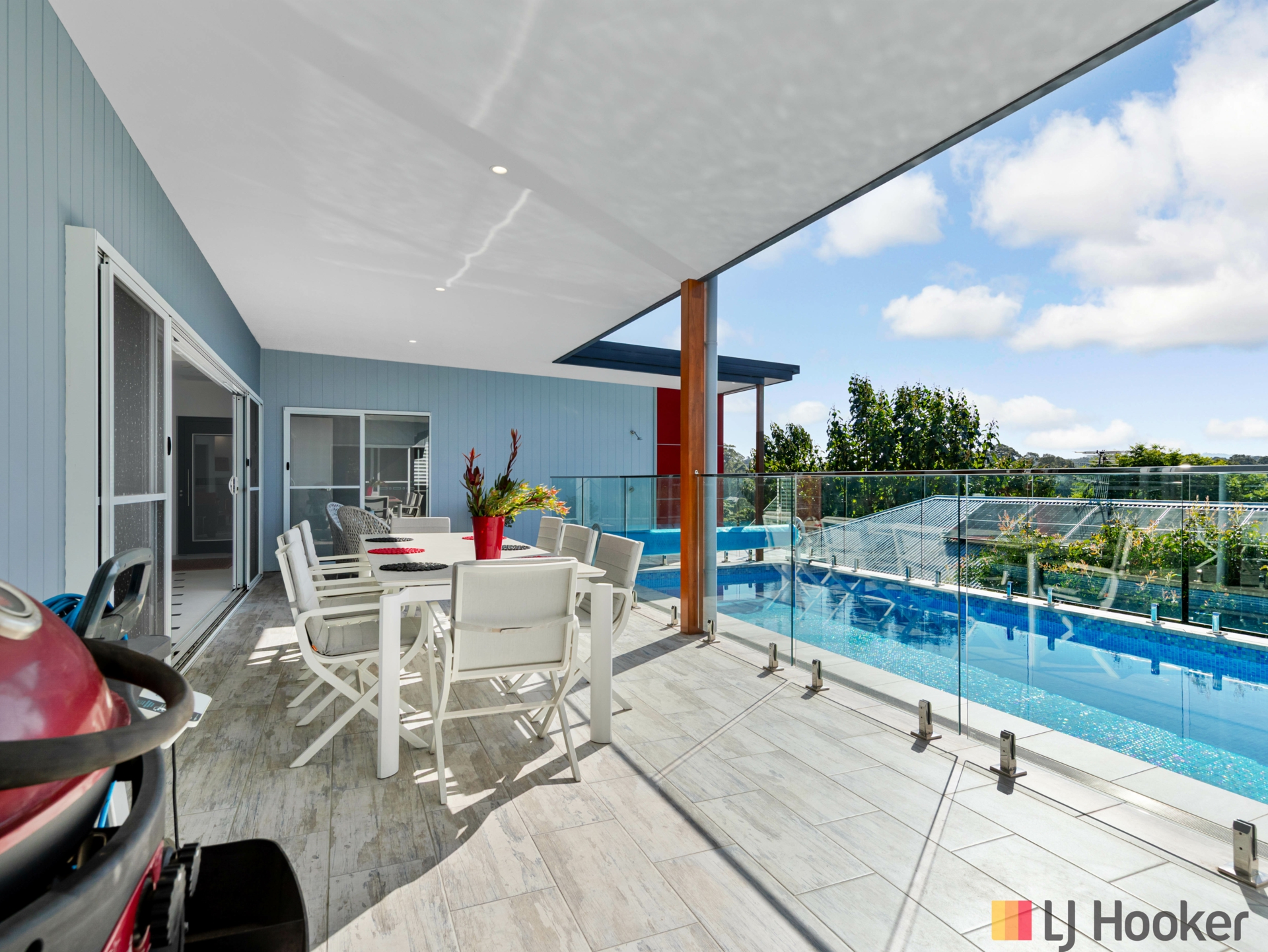 As you move further into the home, a second living space opens up and, with the use of stacker doors, creates a seamless flow out to the covered outdoor entertaining area. From here you overlook the tiled concrete pool and out toward the ocean and headland - it's a great connection of indoor and outdoor living. An external shower is there ready for a rinse-off after a swim.