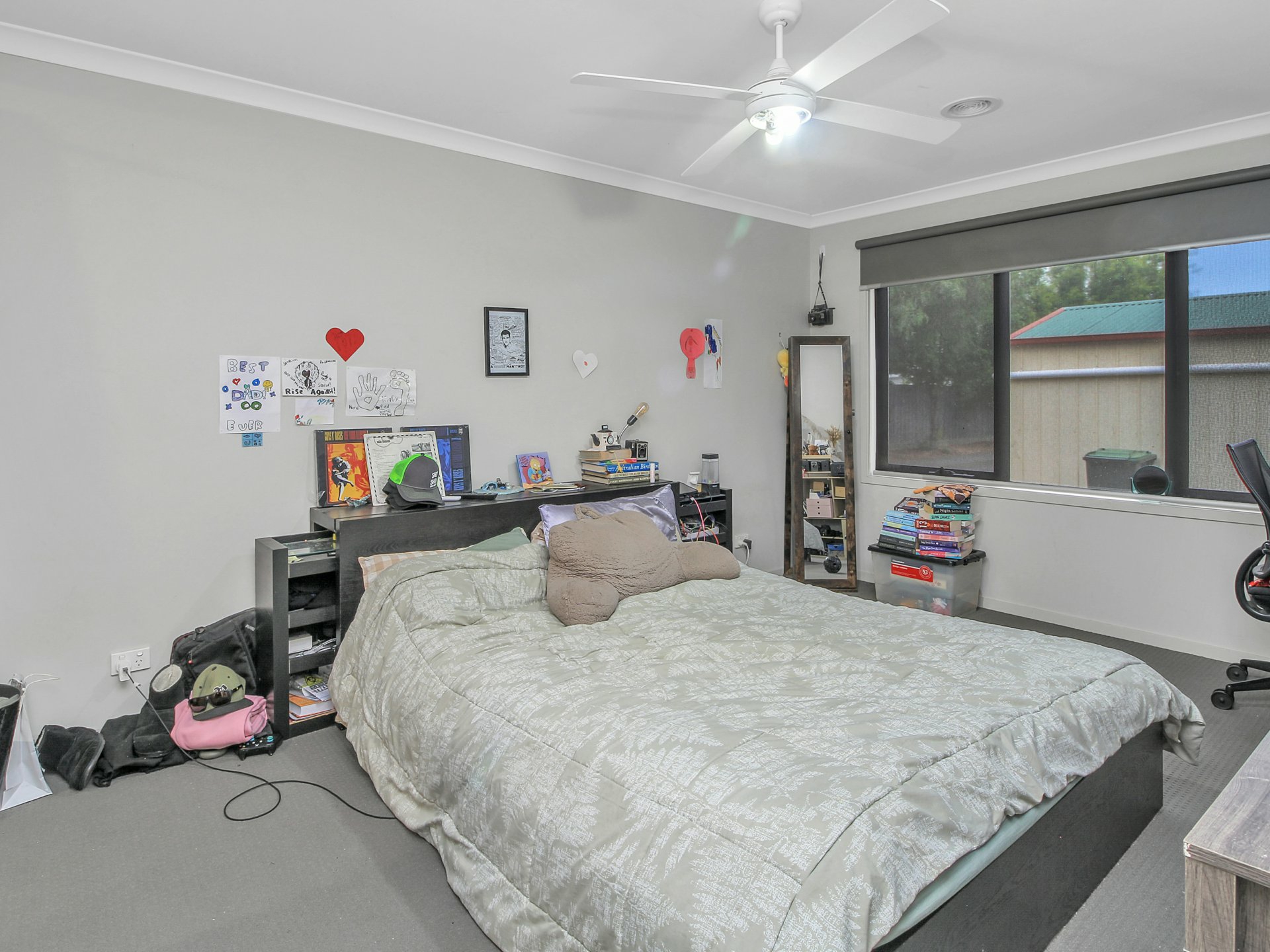 Tucked away in a quiet court, this home offers practical convenience. Inside, the master suite features a walk-in robe, ensuite and block-out blinds, while the remaining three bedrooms include built-in storage and ceiling fans. Comfort is guaranteed throughout the seasons with ducted gas heating and a split system. The kitchen is a standout, complete with a large walk-in pantry, stone benchtops, room for a double-door fridge and a 5-burner gas cooktop—ideal for those who love to cook. With ample space to park three vehicles and direct access to the backyard. The easy-care outdoor area includes a generous lawn perfect for pets to enjoy, complemented by a concreted patio that’s ideal for entertaining. The property is fully enclosed with secure Colourbond fencing. Currently leased at $450 per week on a month-to-month agreement, this residence is an appealing option for investors or anyone seeking a quiet, private place to call home.