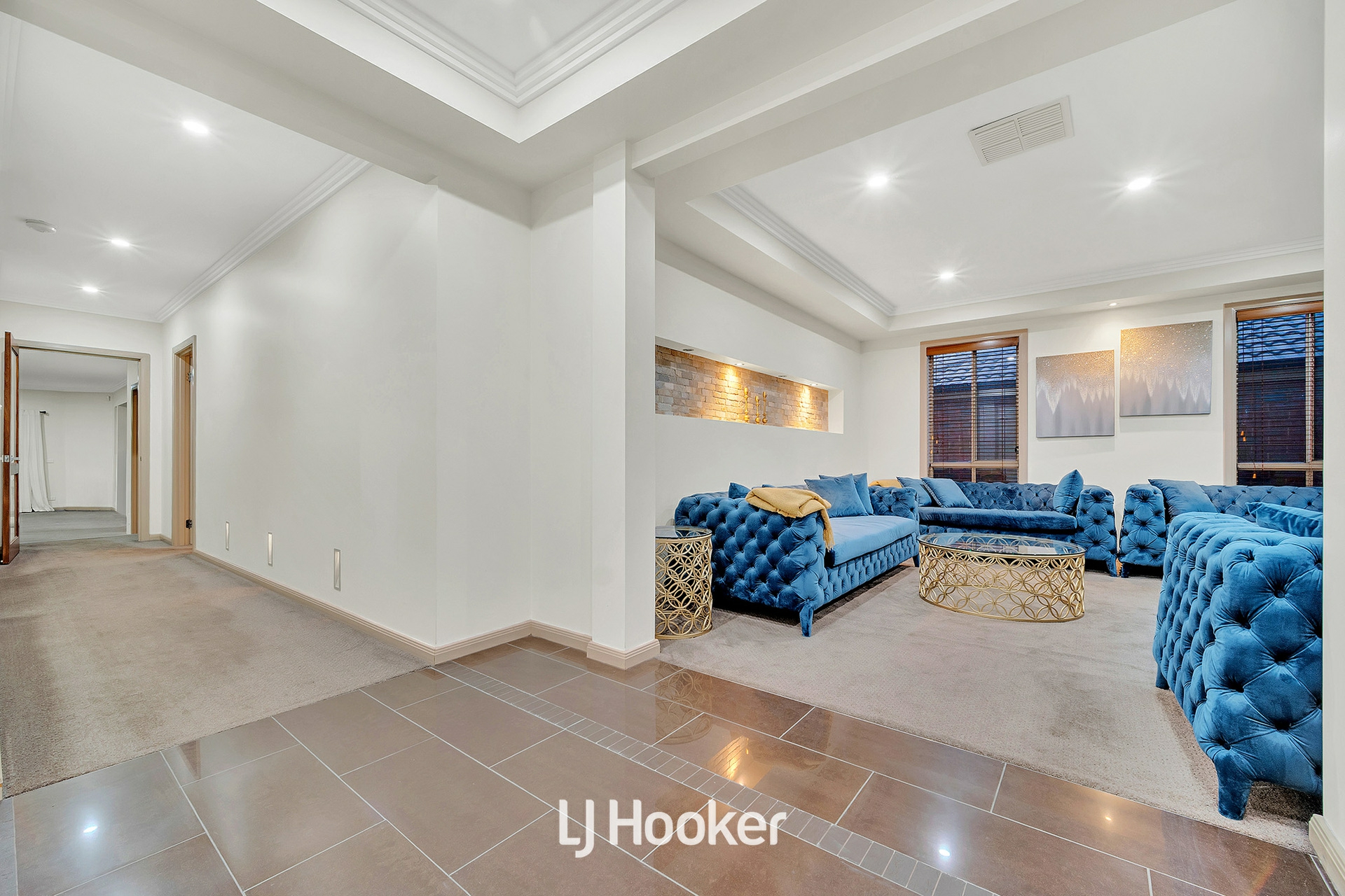 A selection of separate living areas enhances the flexibility of the home, including a formal living room at the front, a dedicated theatre room tucked away for movie nights, and an additional family zone positioned at the heart of the home-ensuring every member of the household has their own space to relax or unwind.