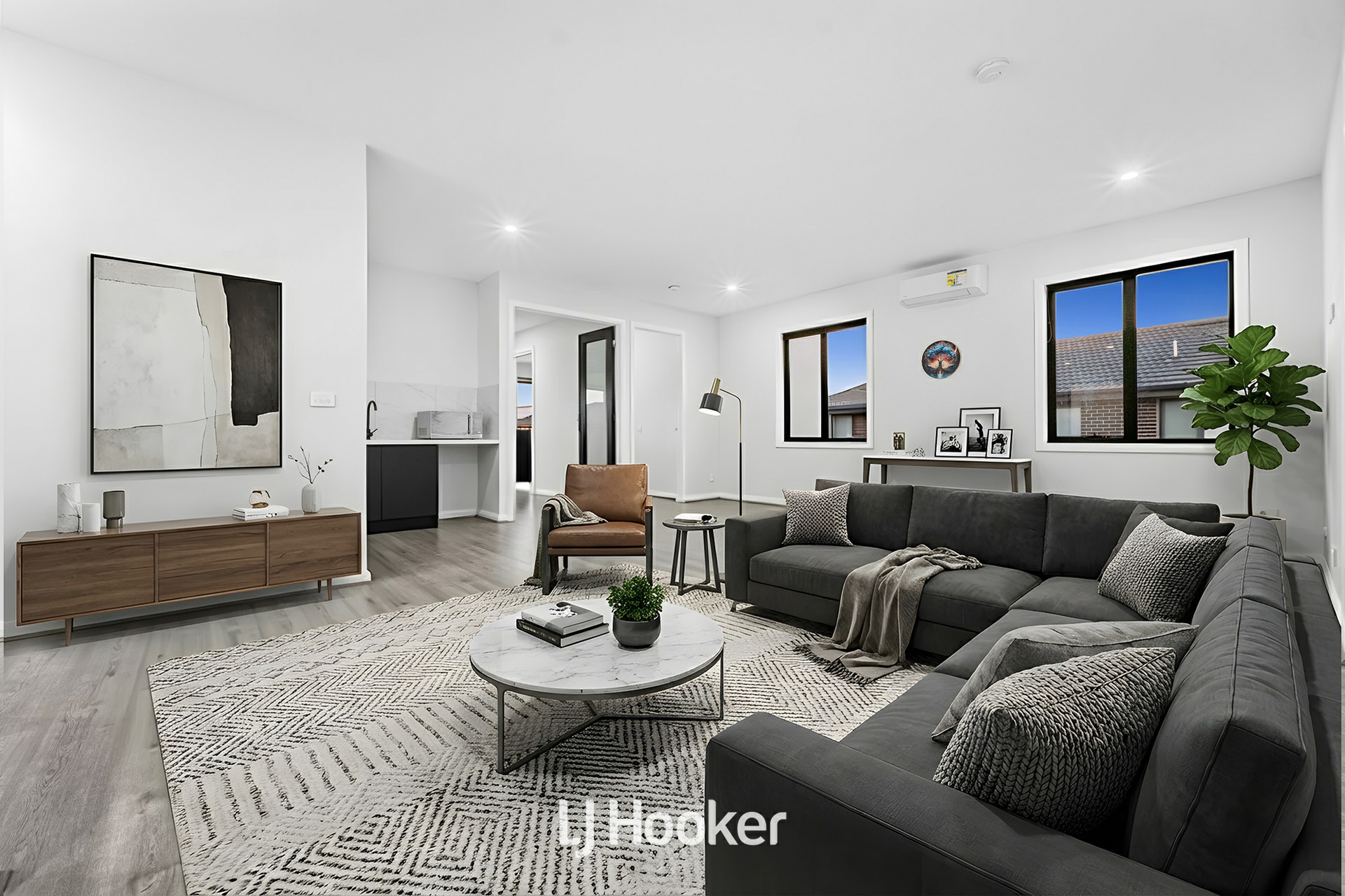 The open-plan living and dining areas form the heart of the home, seamlessly connecting the kitchen to everyday living and entertaining. The kitchen itself is both stylish and functional, featuring quality cabinetry, ample bench space, and premium appliances-designed to handle everything from busy weekday mornings to large family gatherings. Large windows invite natural light throughout the day, enhancing the sense of warmth and openness.