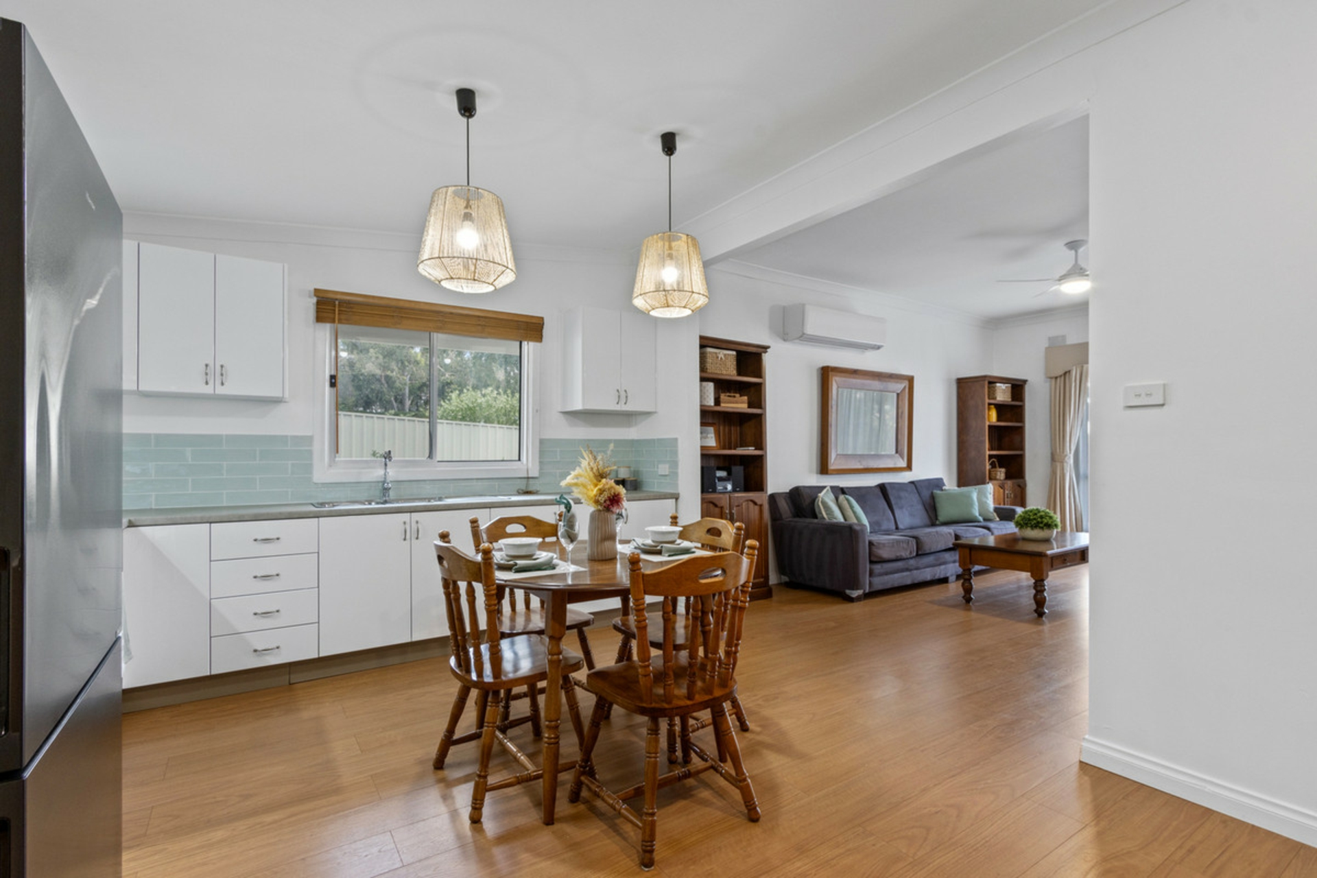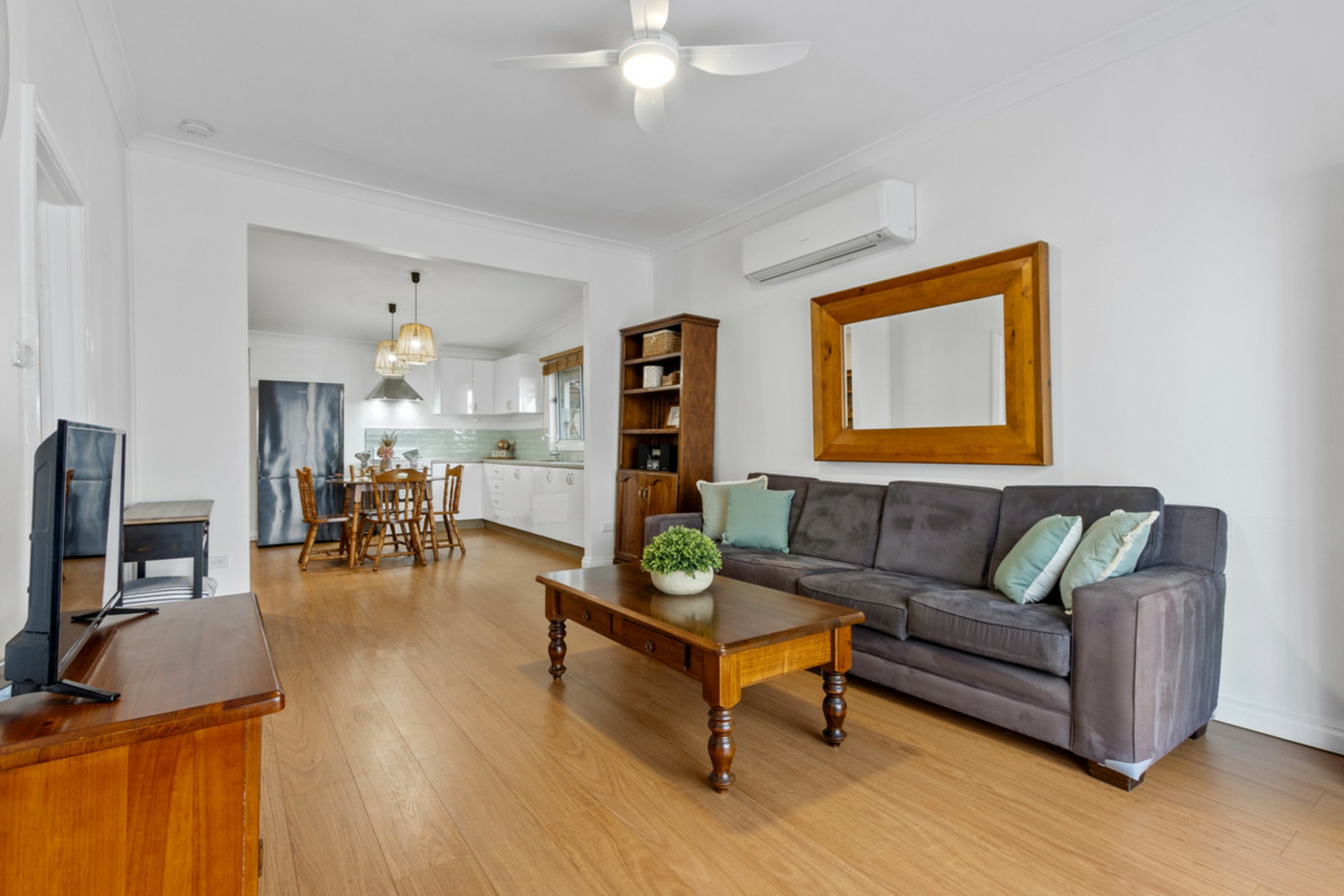 • Lounge room with ceiling fan and split system air conditioning.