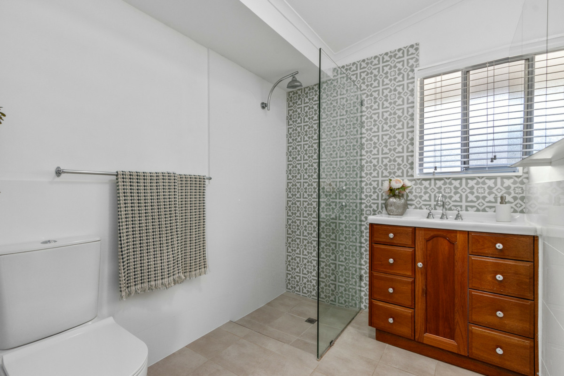 • Updated bathroom with unique tiling.