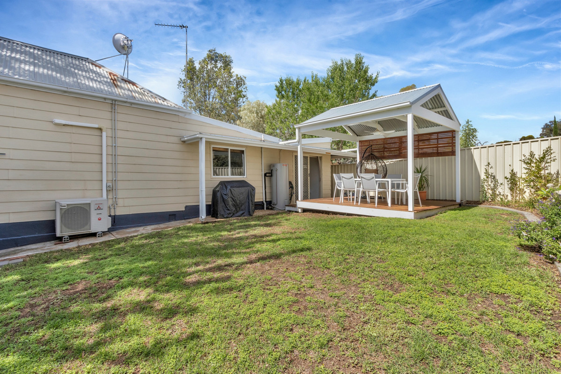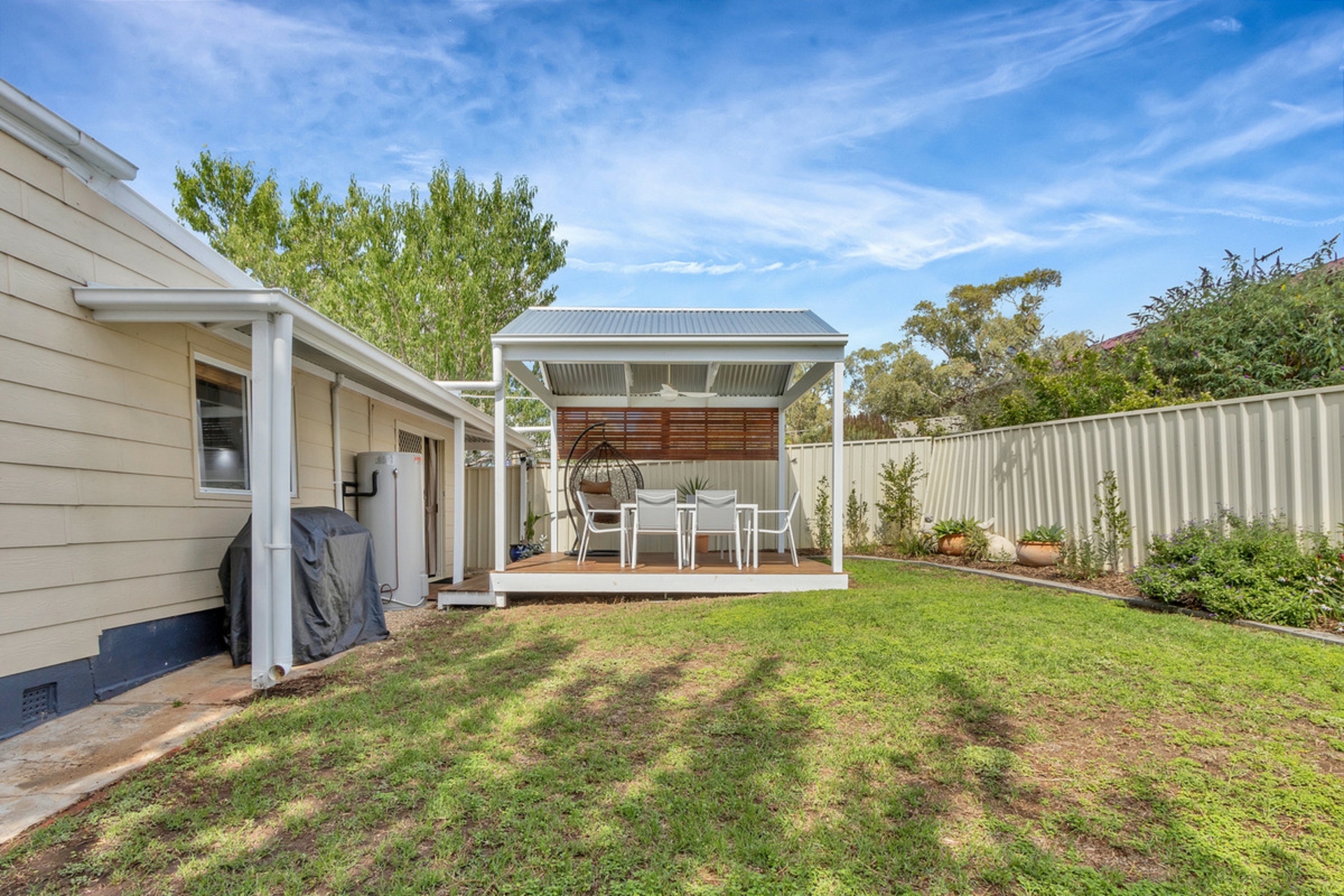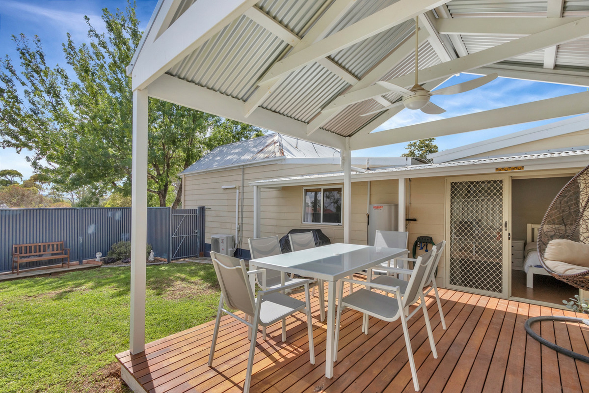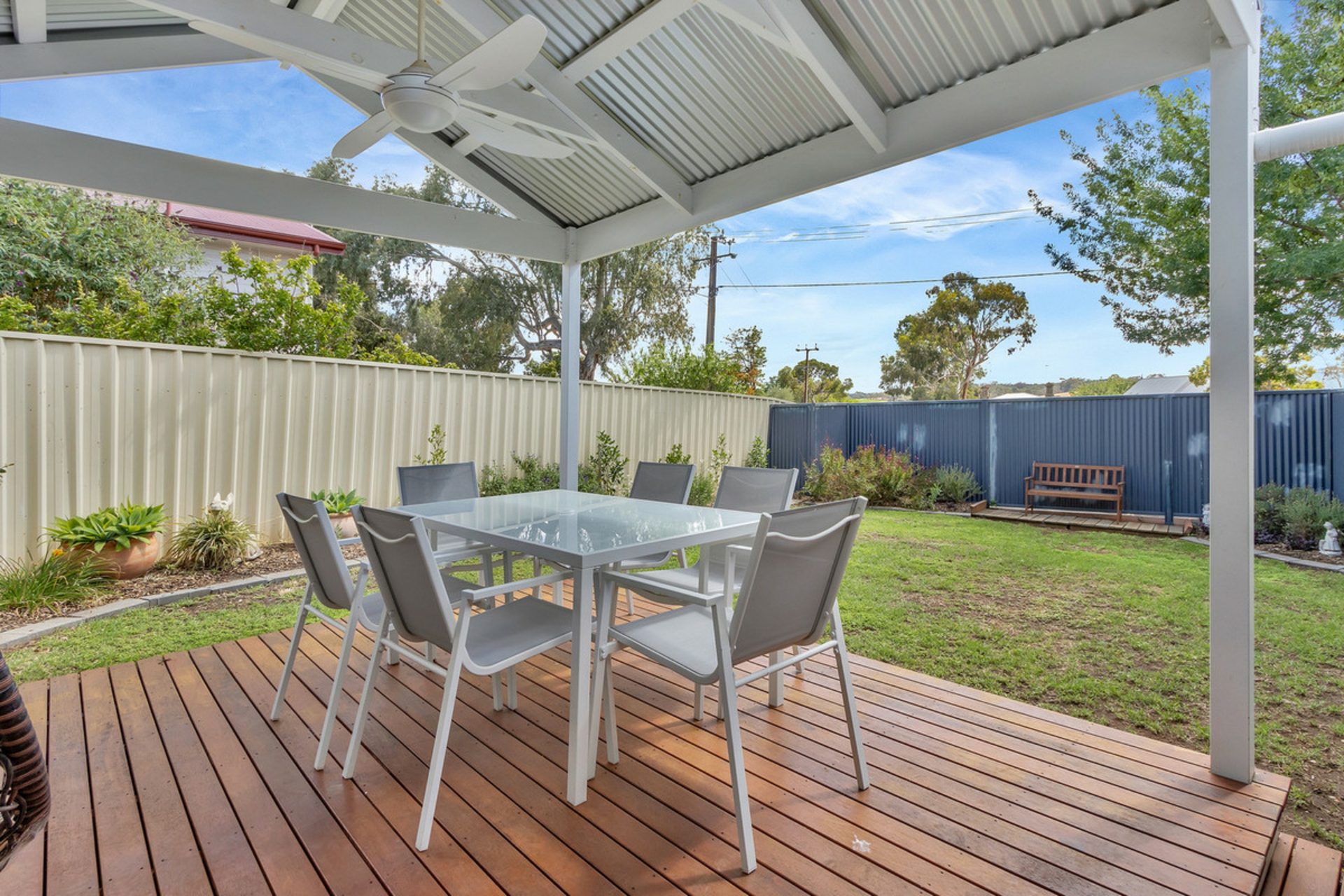 • Undercover gazebo with ceiling fan and decking.