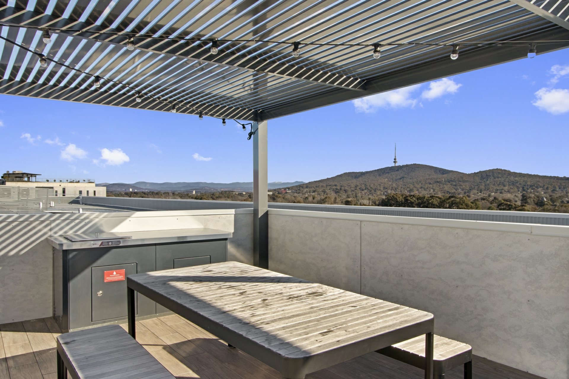 Take advantage of the rooftop garden, unwind and entertain with BBQ facilities, and enjoy 360-degree views of the Brindabellas, Black Mountain Tower, Mt Ainslie, and Mt Majura.