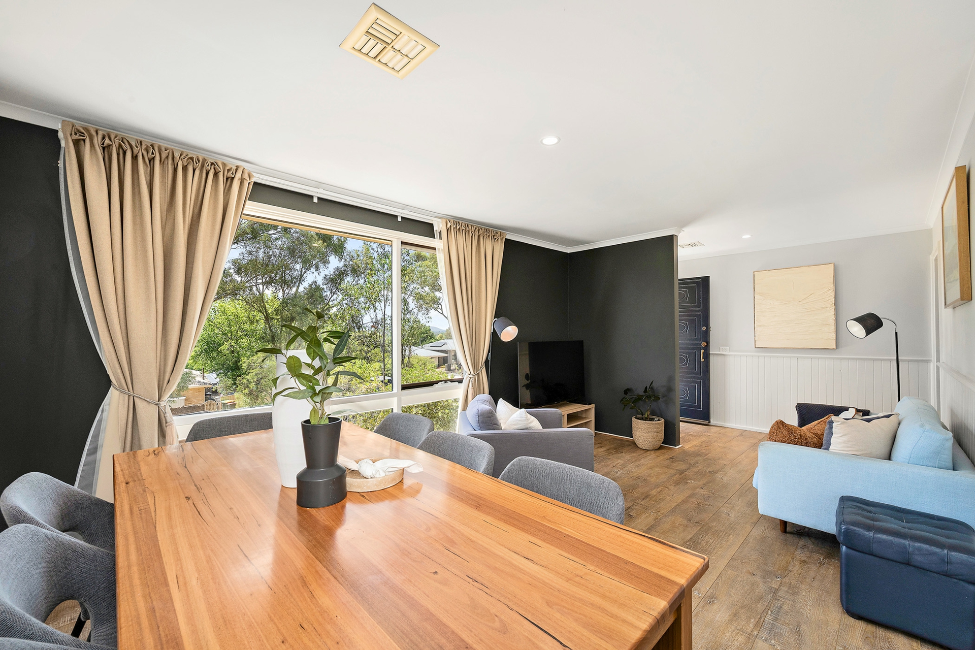 Step inside to be welcomed by a large formal lounge and dining room, both flooded with natural light and framed by those impressive elevated views. The spacious kitchen offers abundant bench and cupboard space and is equipped with gas cooking and a Fisher & Paykel double drawer dishwasher, flowing effortlessly into the adjoining family room. From here, watch the kids play across the landscaped rear grounds or entertain friends and family on the expansive timber deck, now enhanced by a private deck screen to create a secluded and comfortable outdoor retreat.