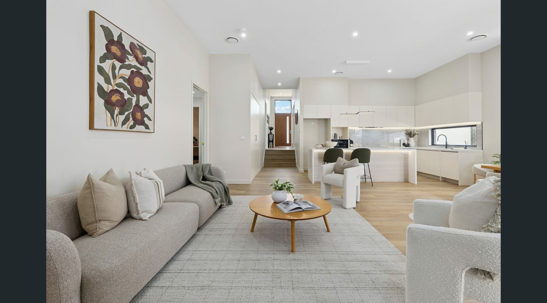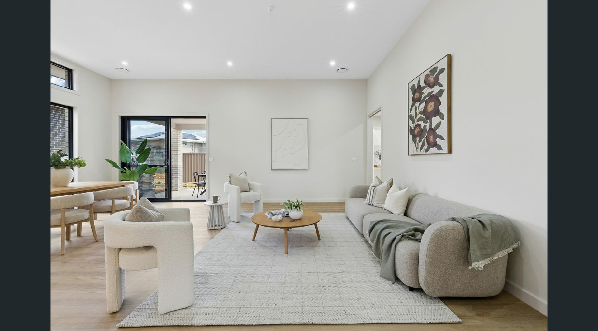 Upon entry, the home immediately impresses with its soaring 3.6-metre ceilings, feature LED strip lighting, and an abundance of natural light that creates an open, airy atmosphere. The generous open-plan living and dining zone sits at the centre of the home, providing a seamless environment for relaxed family living and entertaining alike.