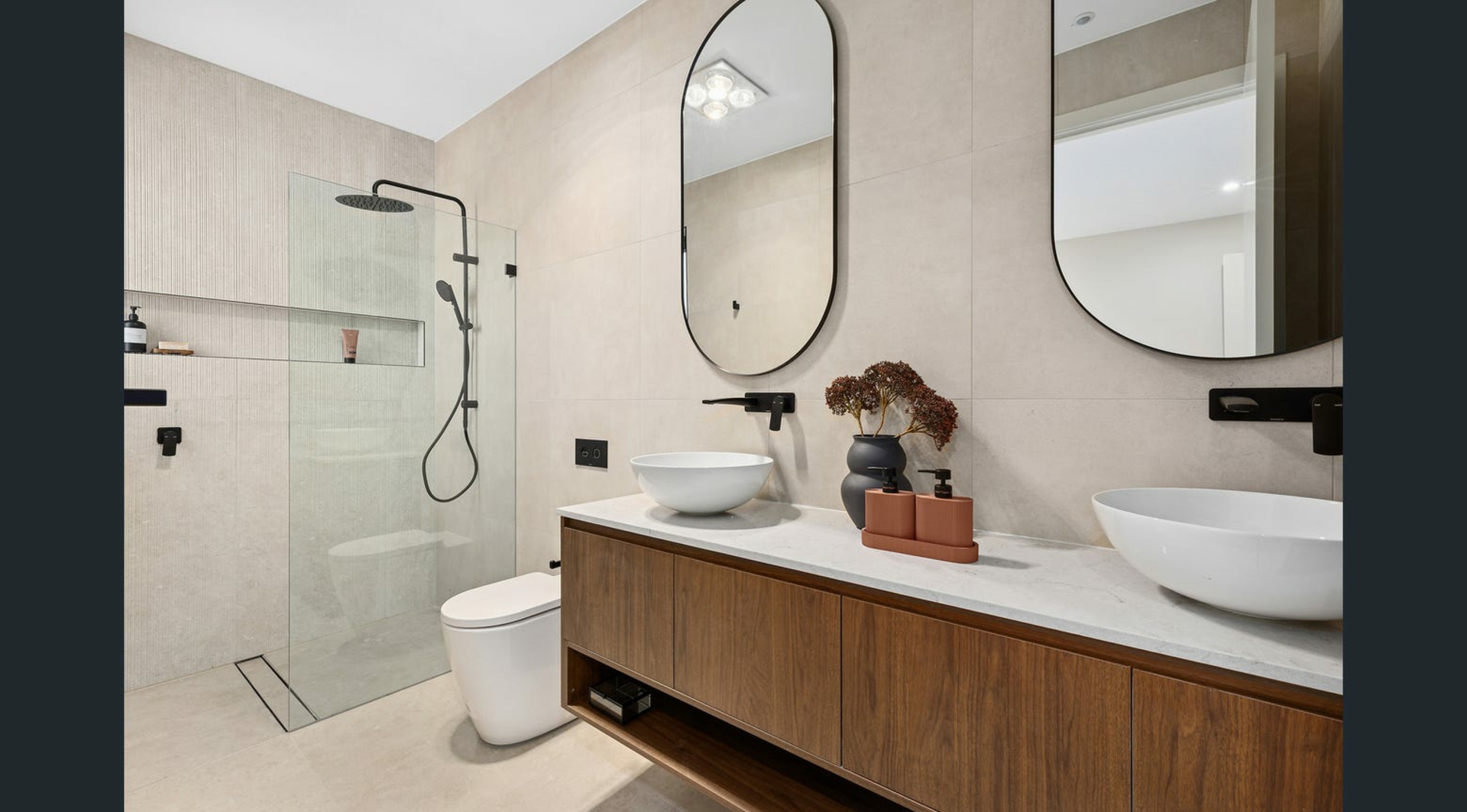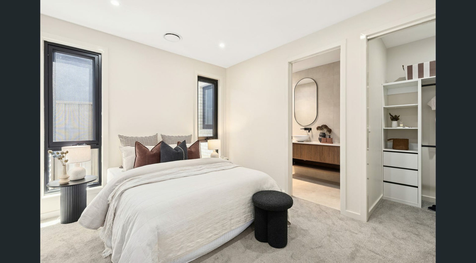 - Two master suites with stylish ensuites and custom wall-hung vanities