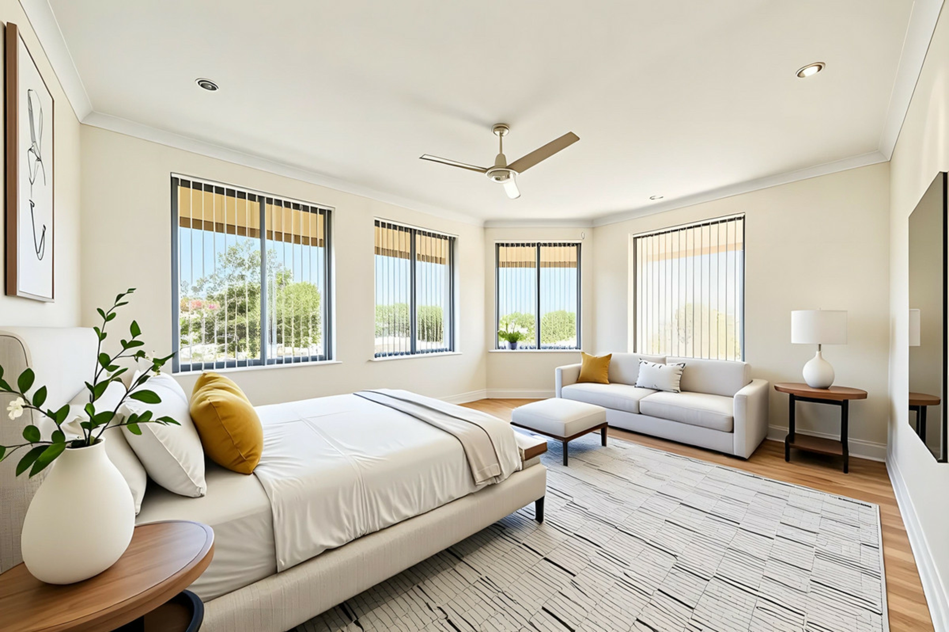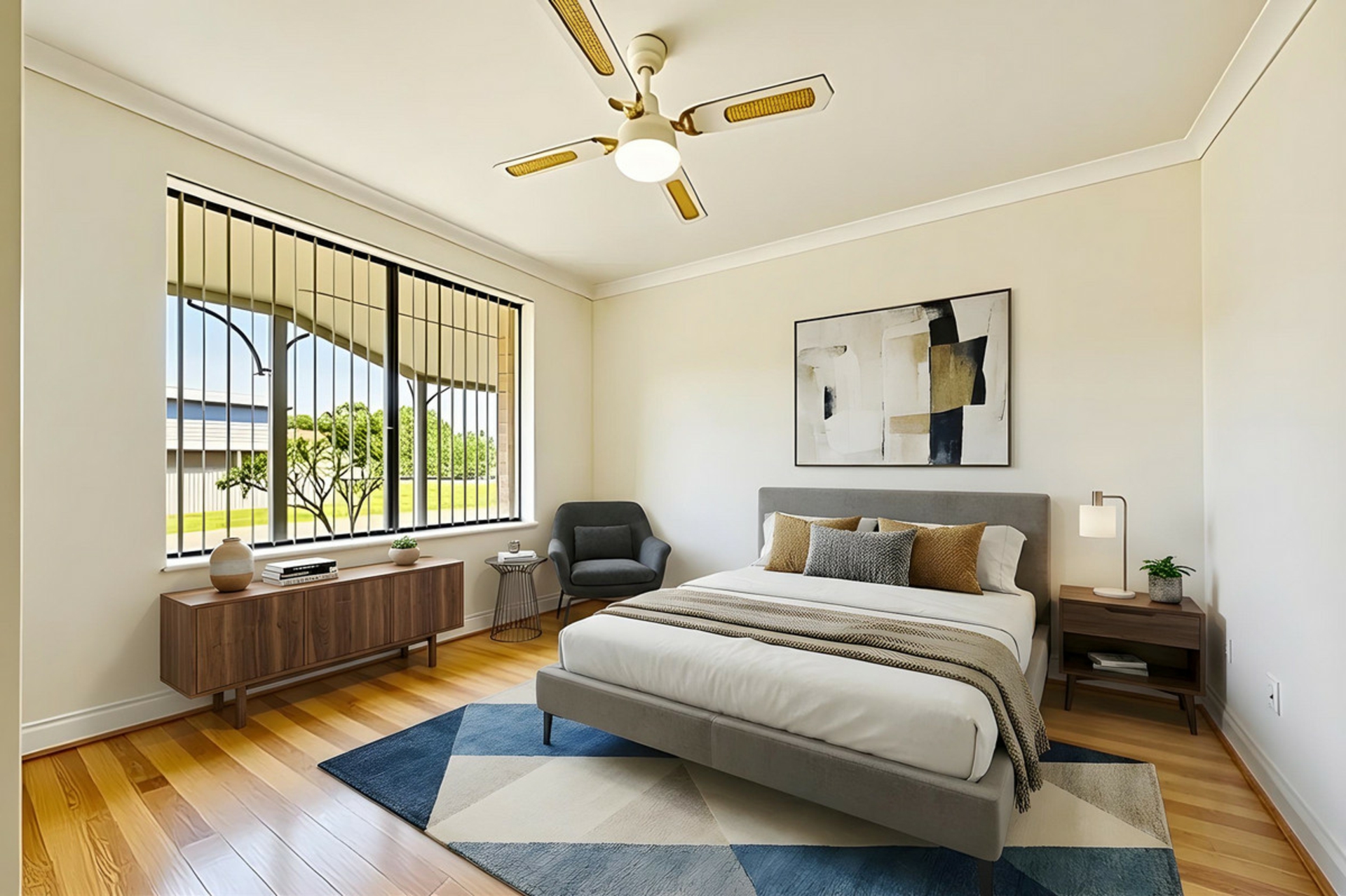 Accommodation is thoughtfully designed with a large front master suite featuring ceiling fan, reverse-cycle air conditioning, a spacious walk-in robe, and a well-appointed ensuite. Minor bedrooms are positioned for privacy, all with built-in robes, including one with a semi-ensuite - ideal for teenagers or guests seeking their own space. A dedicated study nook with its own air-conditioning unit adds further flexibility for working from home.