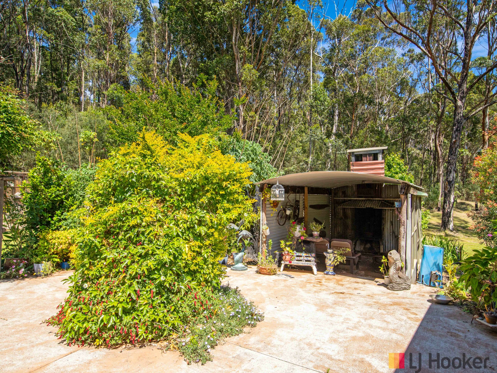 Other features include, a fantastic lined guest room which these owners have used as a music room, but with the 22 power points in there, it could be enjoyed by any kind of hobby enthusiast! A garage that can fit 4 small cars or 3 cars with a large workspace area, double carport, shedding, large chook run, rustic BBQ area and potting shed for the gardener and don't forget the 400 megalitre dam that has an electric pump allowing access from the 7 house taps. 60,0000 litres of tank water for house, and a concrete driveway from the main road which is tarred to the entry.