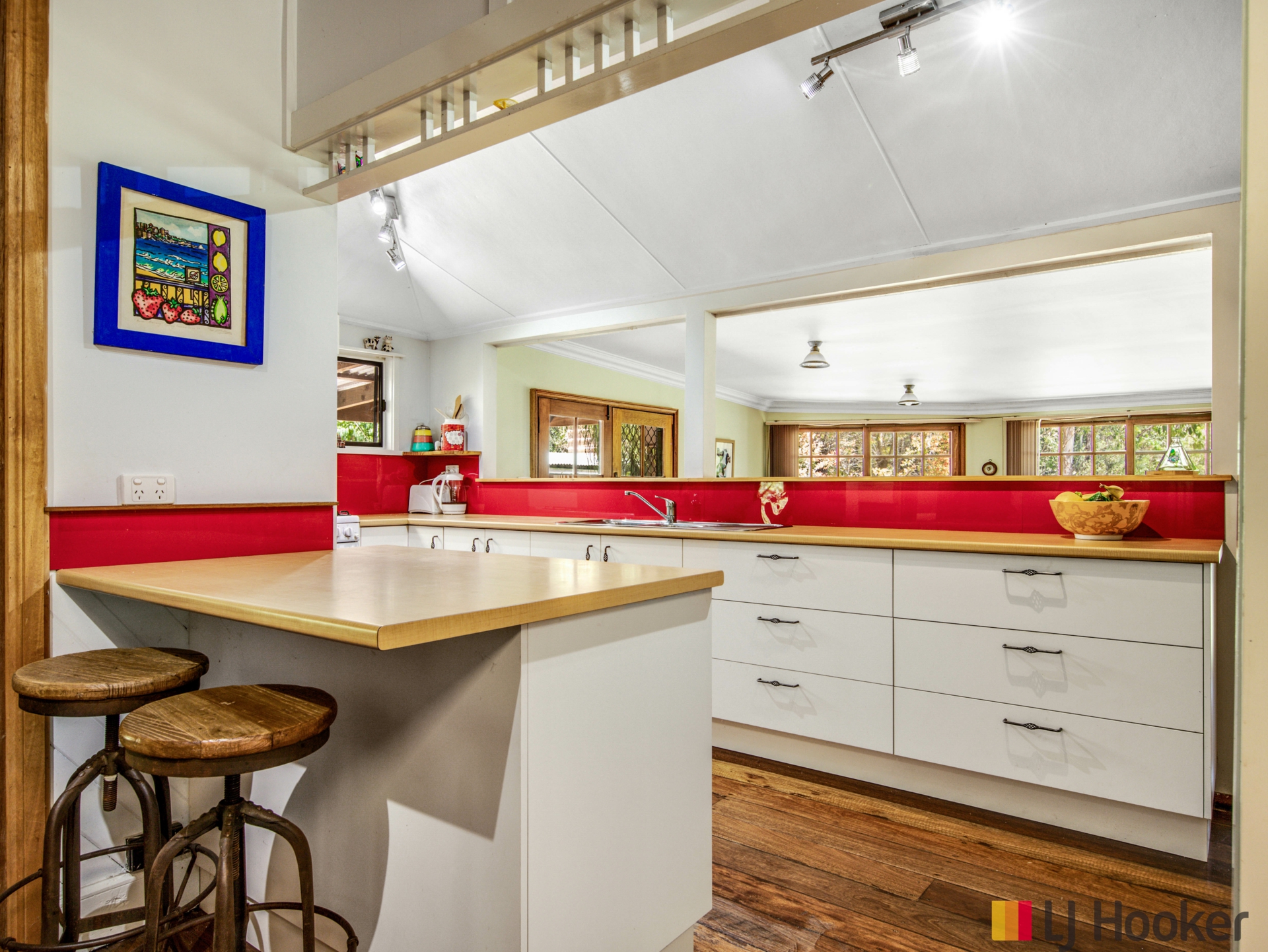 The house originally started out life as the old Batemans Bay Post Office which was cut in half and transported to its current position in 1984. It still retains features such as the fat hardwood floor boards and the bedrooms extended out under the original verandah line that the post office bought with it. Over time it was of course added onto, to fit with current living expectations and now boasts large living areas and a floor plan that offers easy living, bringing the inside to outside with an enclosed sunroom and a N/West facing verandah to enjoy your evenings on.