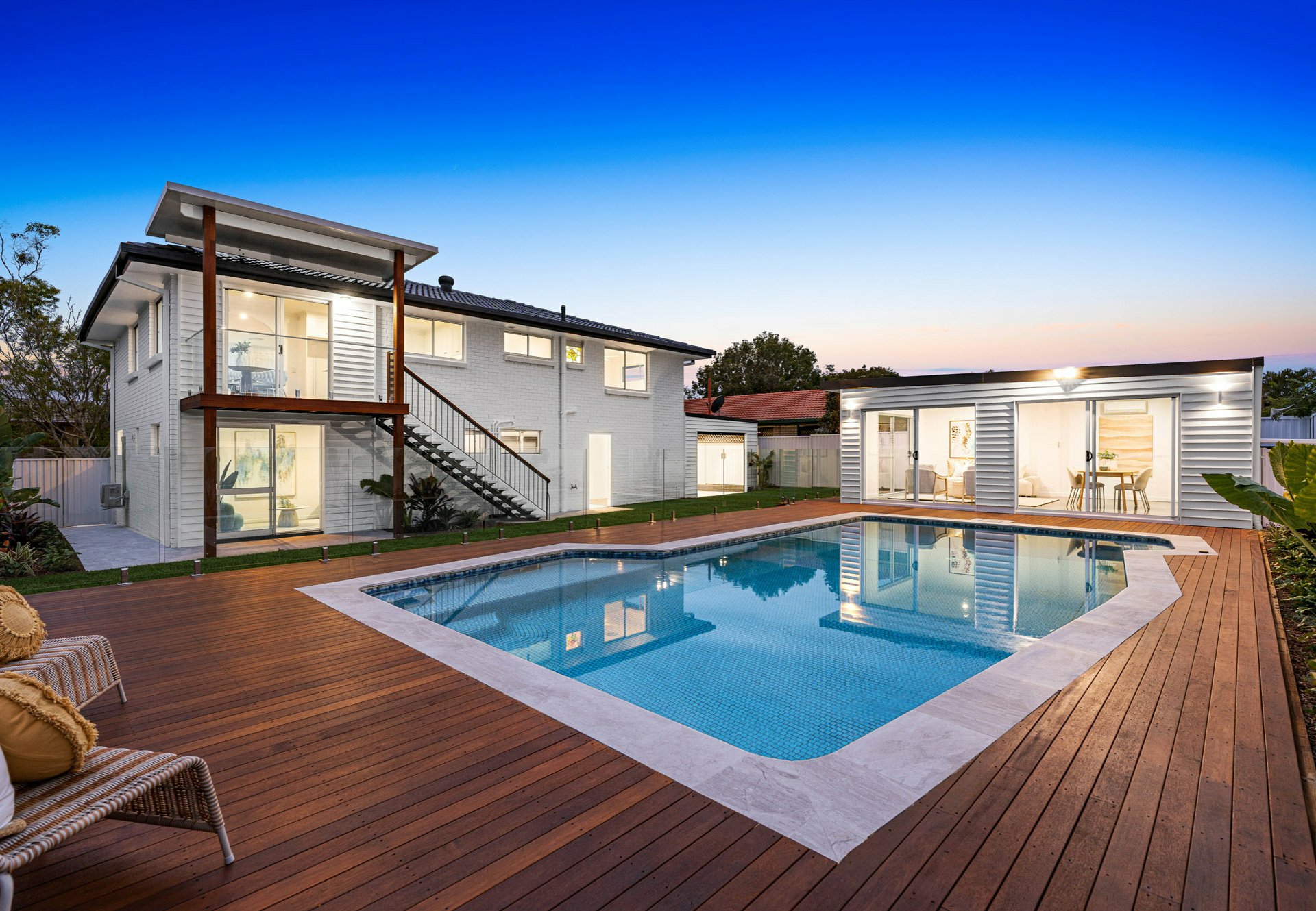 Set on a 590m² block within a tightly held enclave, and walking distance to Moreton Bay College and Mayfair Village, this residence is designed with lifestyle in mind. Whether entertaining family and friends or enjoying a peaceful afternoon by the pool, the home effortlessly caters to all stages of family life.