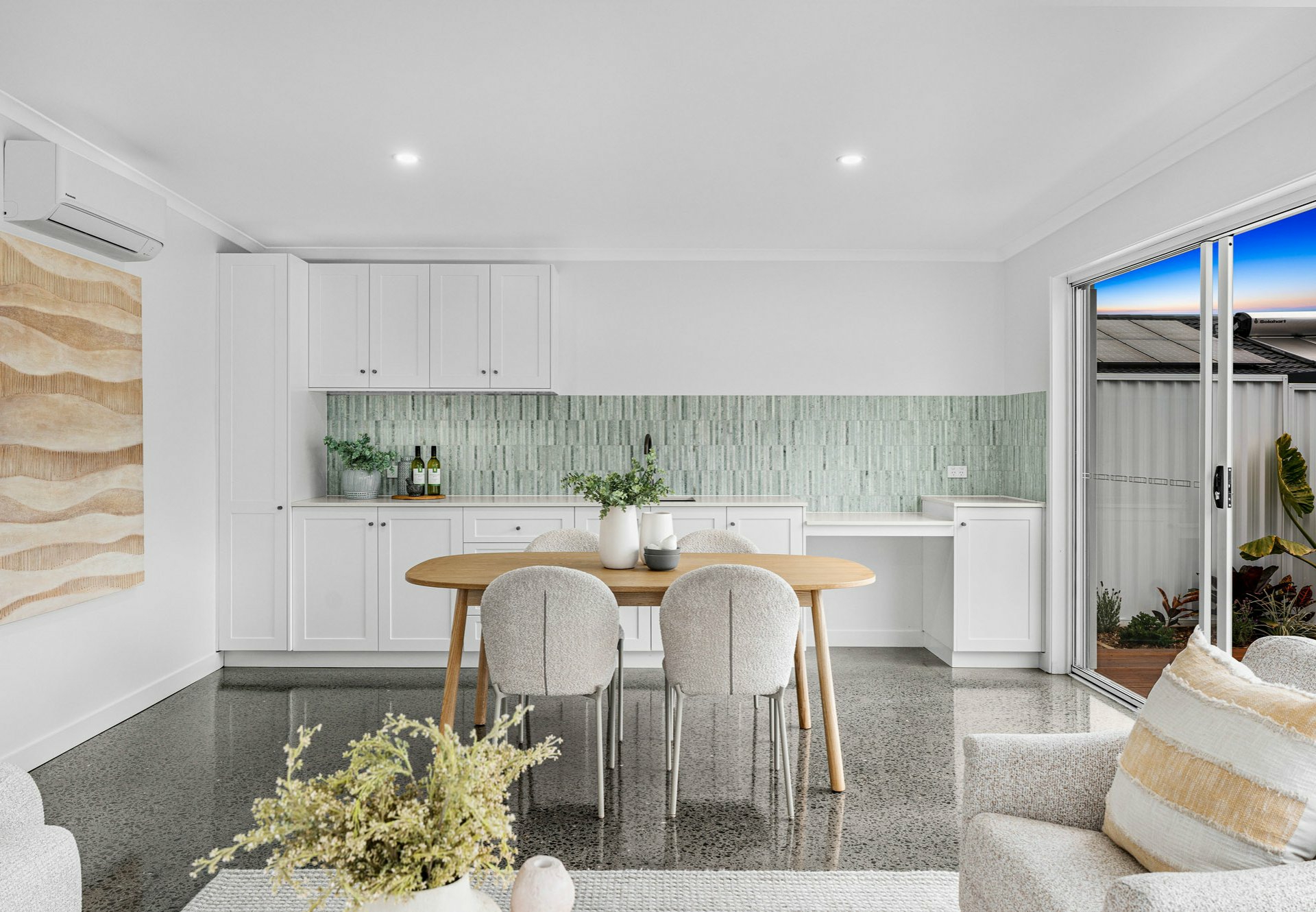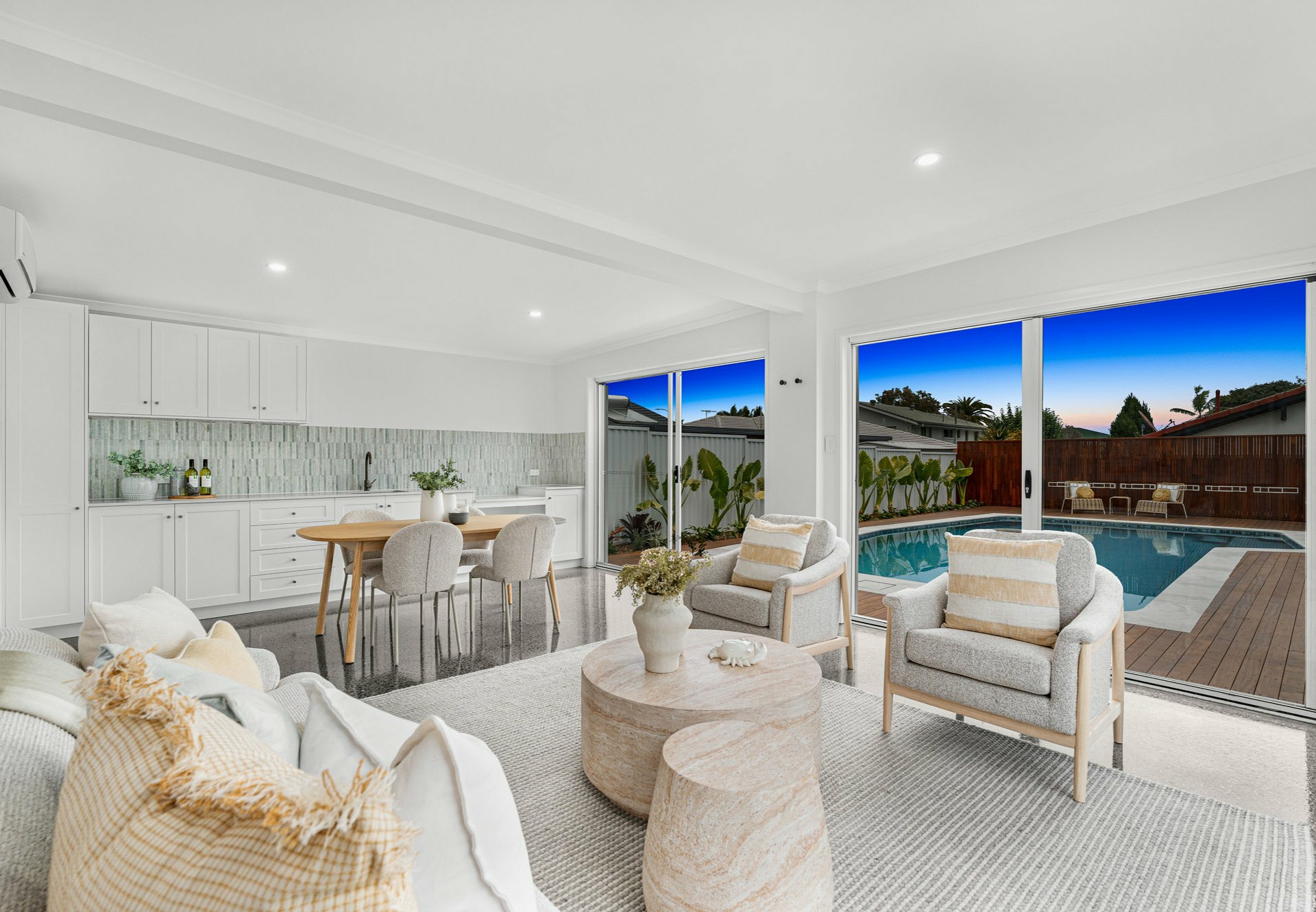 • Pool house with polished concrete, kitchenette/minibar, marble splashbacks and split A/C