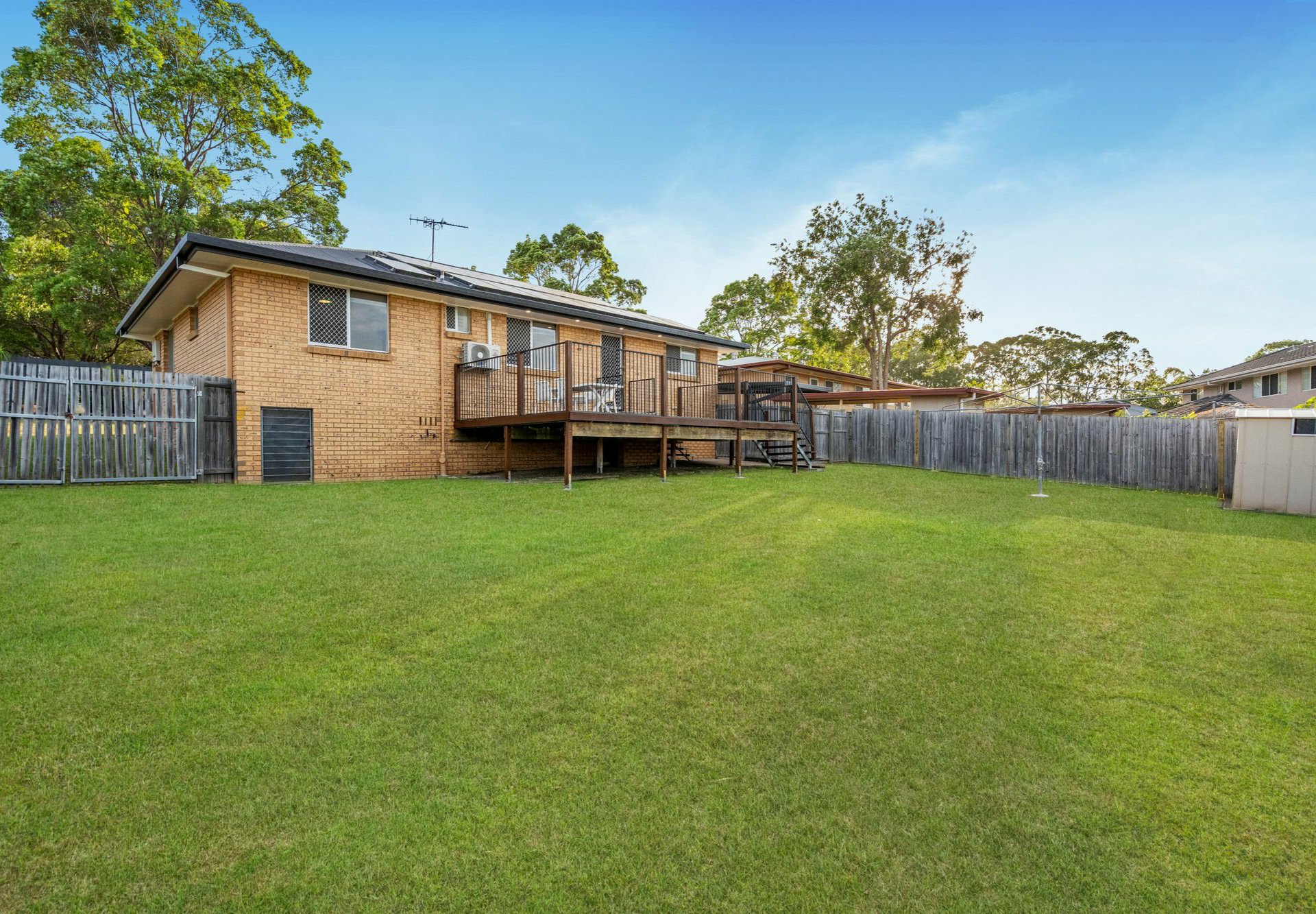 Stepping outside, the massive back deck serves as a second living area, providing an elevated vantage point to watch the kids play in the secure, fully fenced backyard. With a low-maintenance garden and a handy outdoor shed, you'll spend less time on chores and more time enjoying your weekends.
