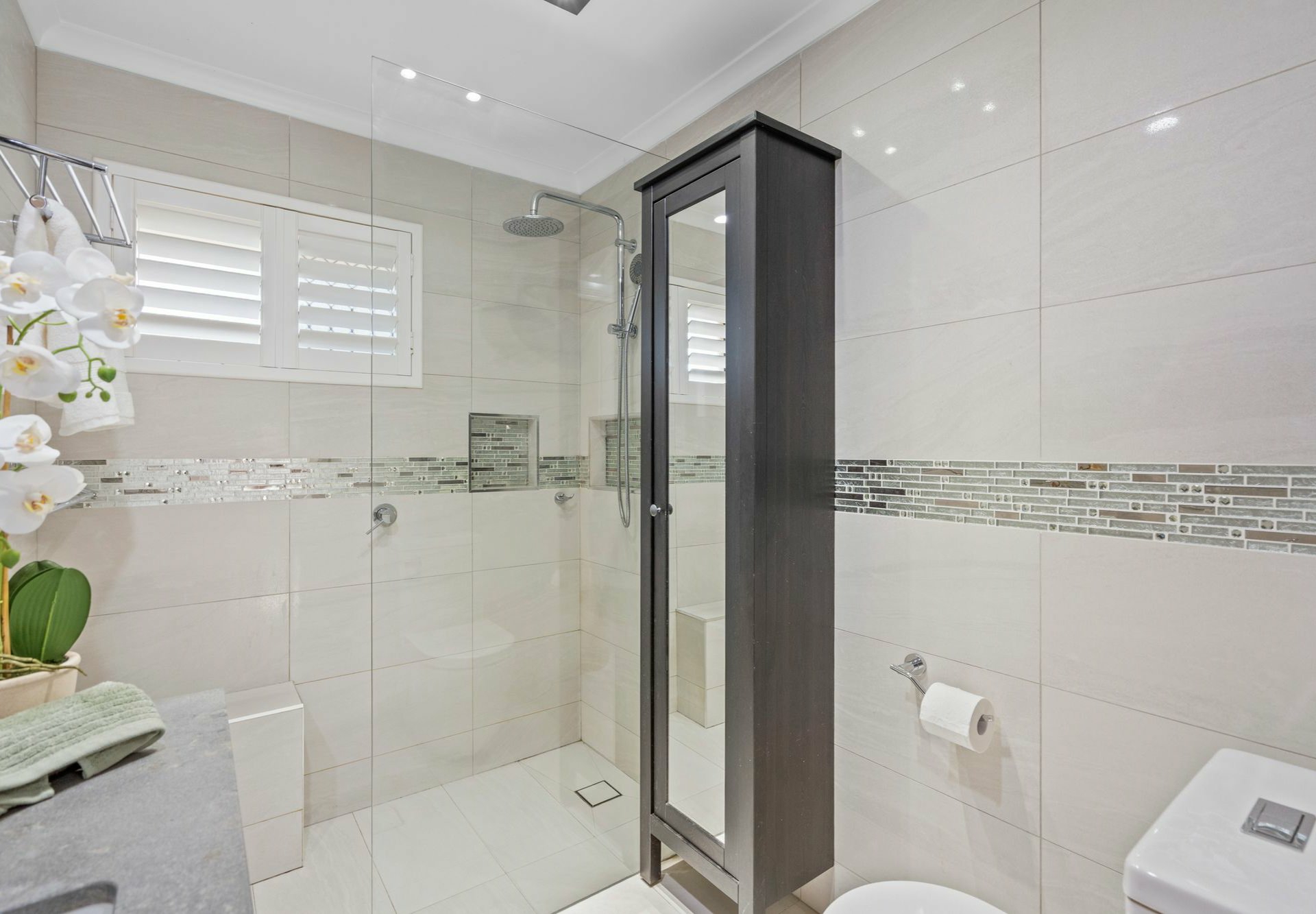 \u183? Stylish renovated bathroom offering modern finishes and a sleek, contemporary feel.