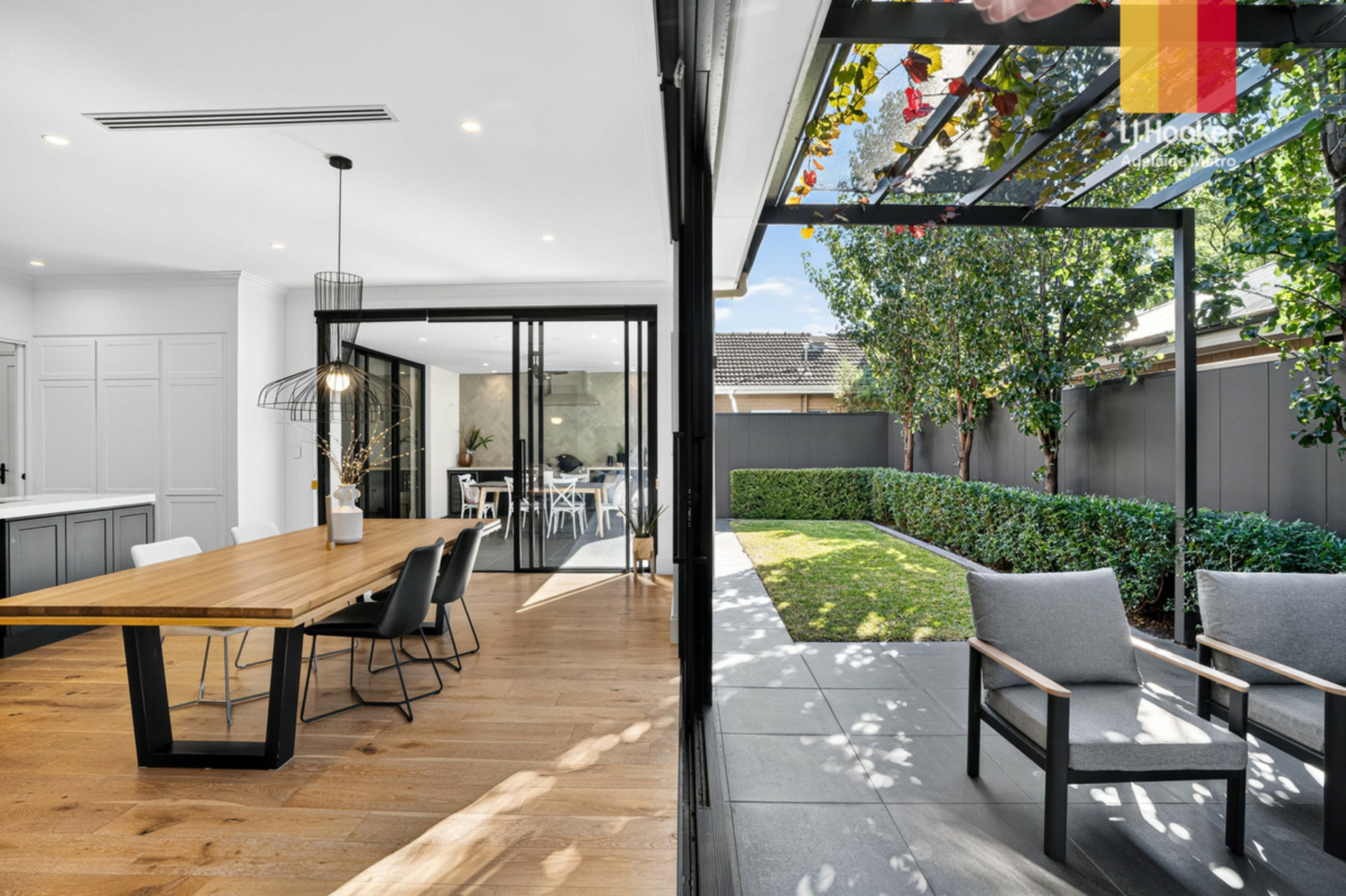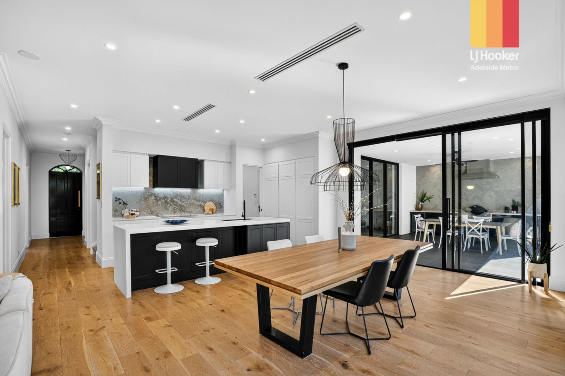 From the moment you step inside, soaring ceilings and a sense of space set the tone for what lies ahead. The ground floor is anchored by an oversized master suite, complete with a walk-in robe and a luxurious ensuite, offering both privacy and convenience. Designed for modern living, the north facing open plan kitchen, living and dining area seamlessly connects to two outdoor entertaining zones via commercial grade stacker doors, flooding the home with natural light and creating an effortless indoor-outdoor lifestyle.