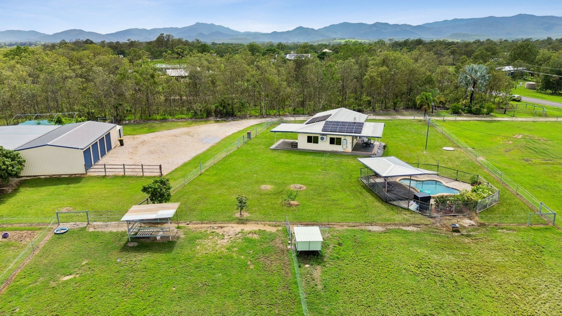 •Five acres of fully cleared land split into currently one-horse paddock and smaller livestock/dog runs