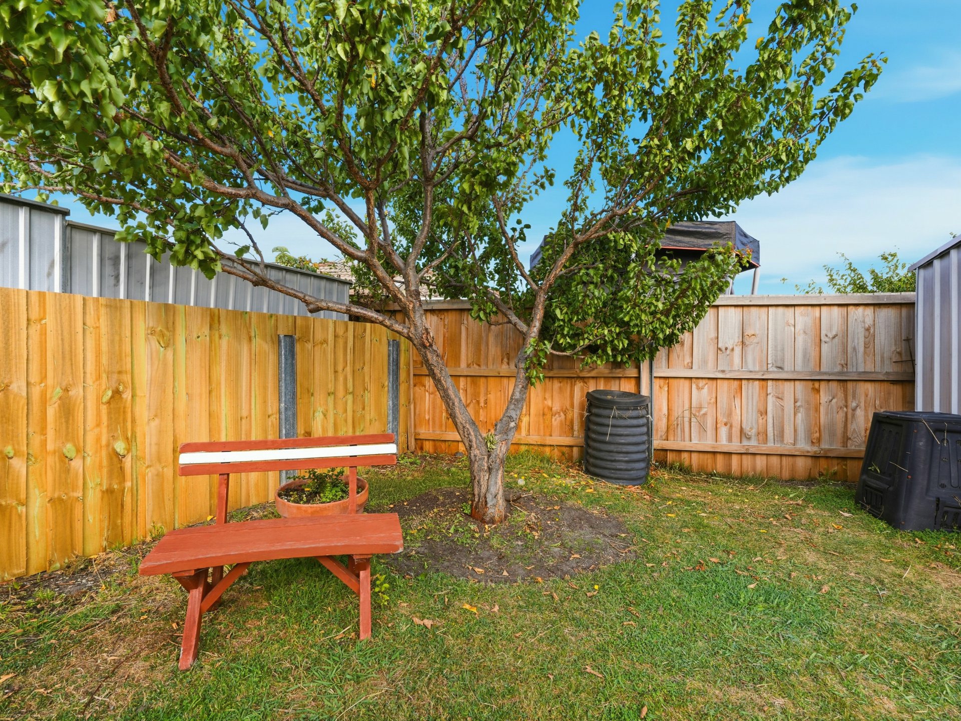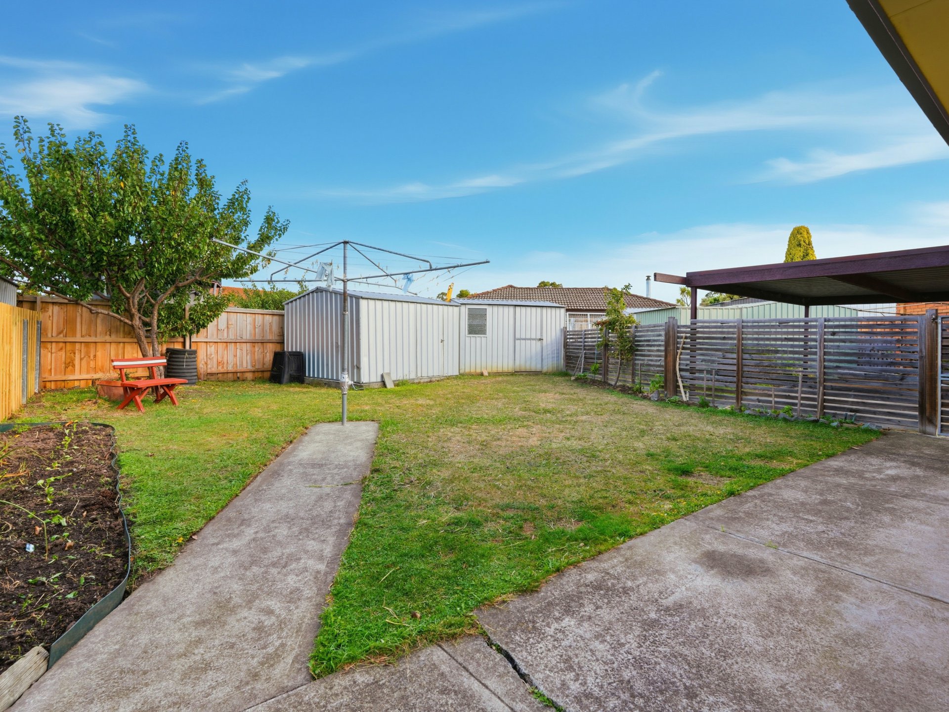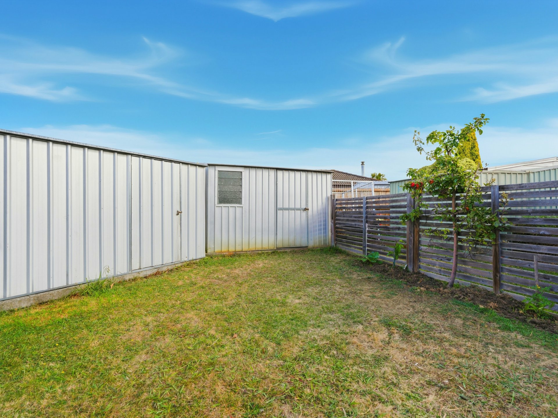 The property has a level backyard with two garden sheds, secure fencing and neat gardens.