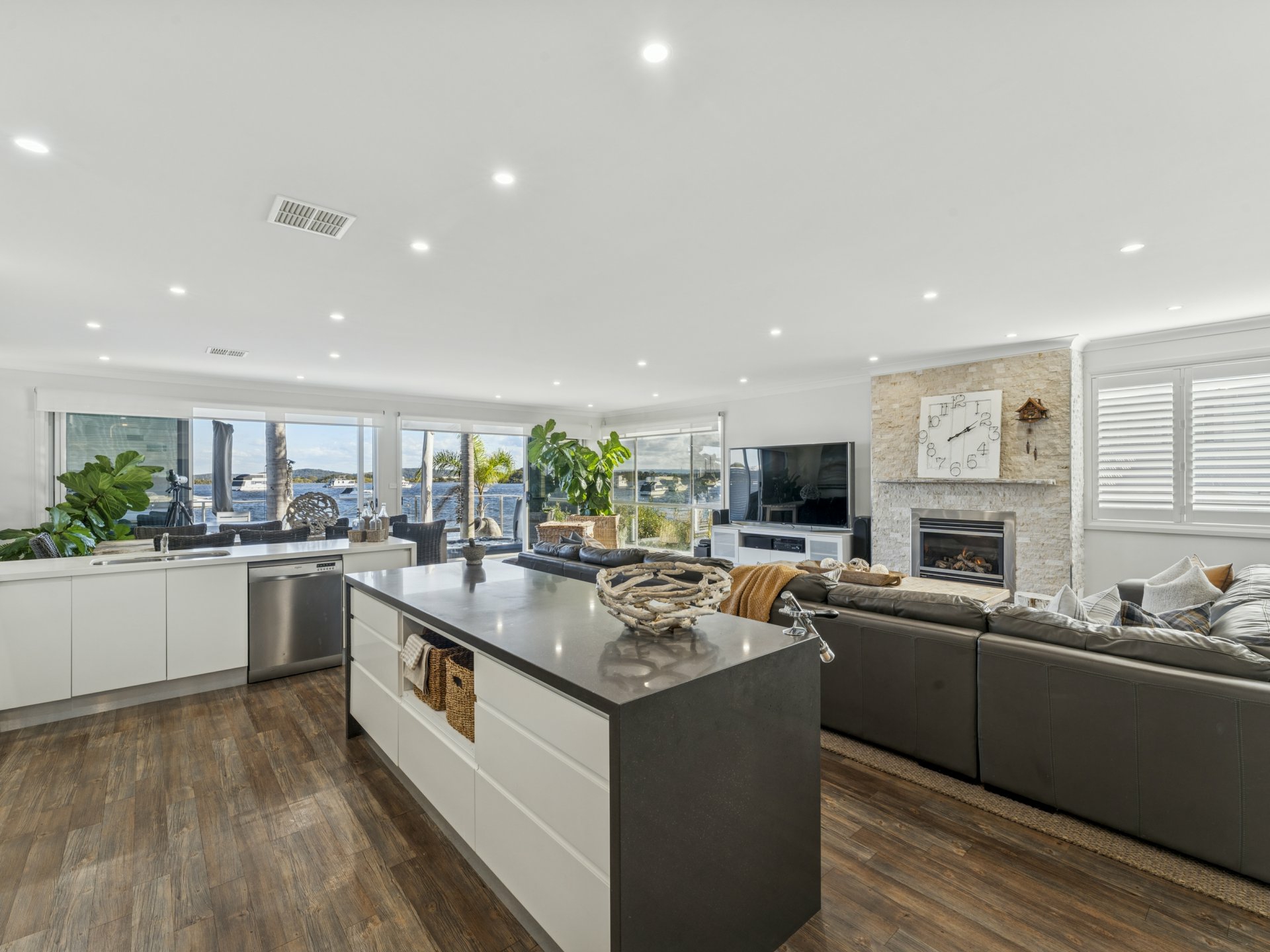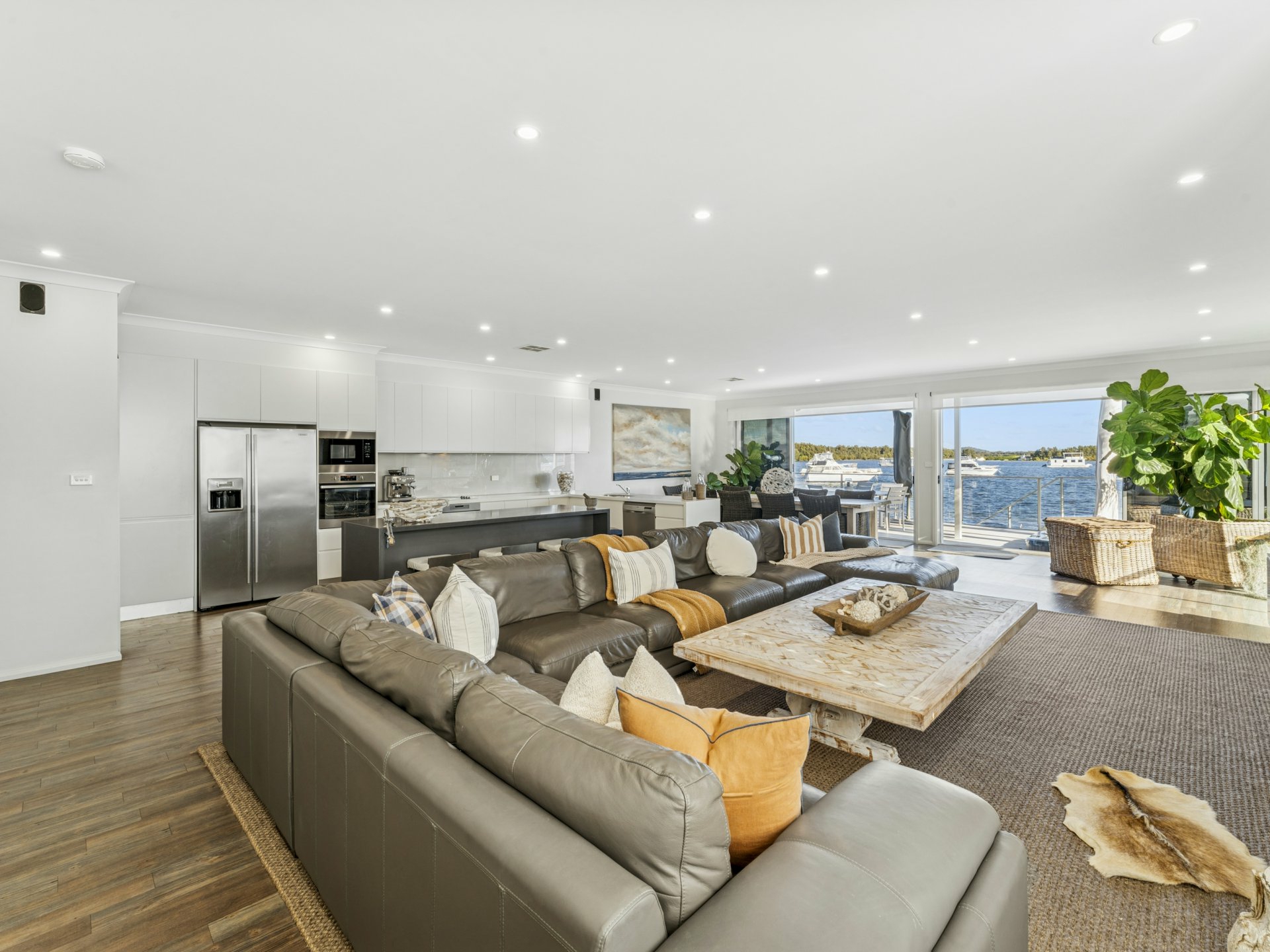 • Open-plan kitchen, dining and lounge with sparkling water views.