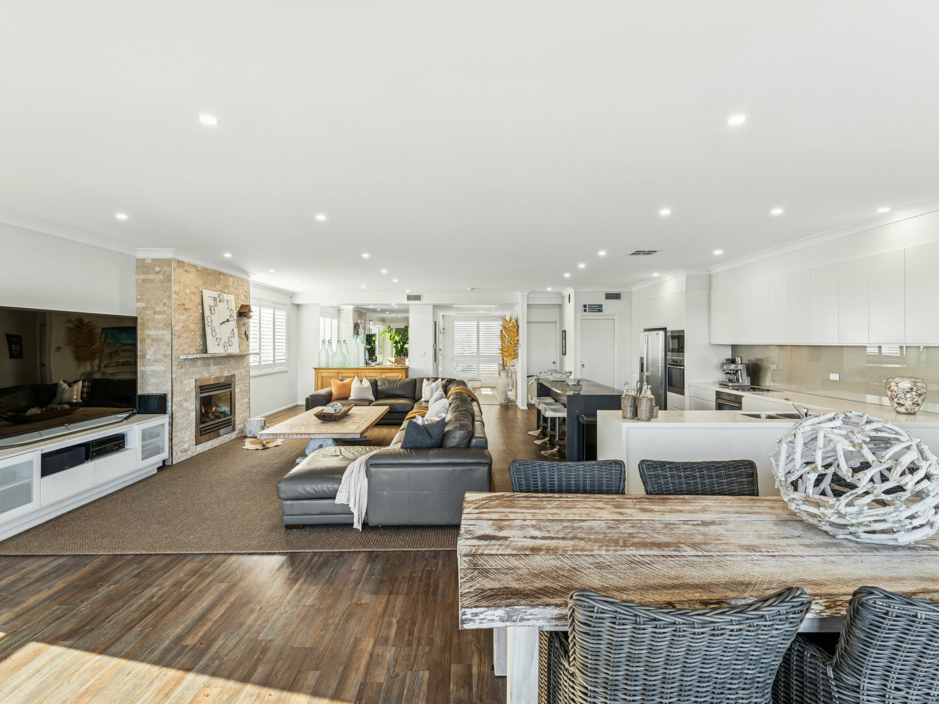 • Expansive open-plan living and dining zone, drenched in natural light and anchored by a cozy gas fireplace.