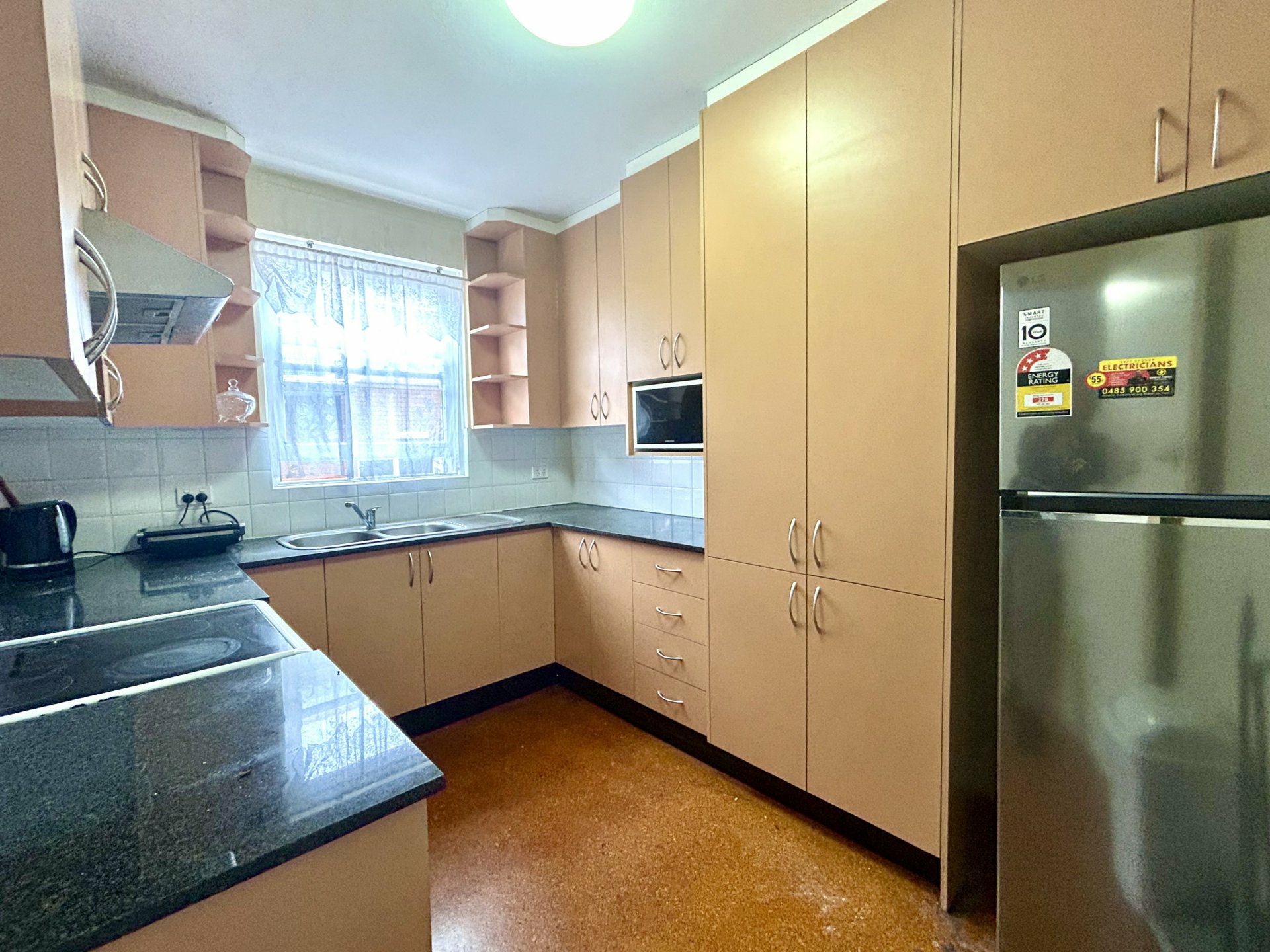 Polished Cyprus Pine floorboards throughout, 2 generous size bedrooms... each with built in robes, updated spacious kitchen, original "retro" style bathroom and a great size living room with new R/C aircon.