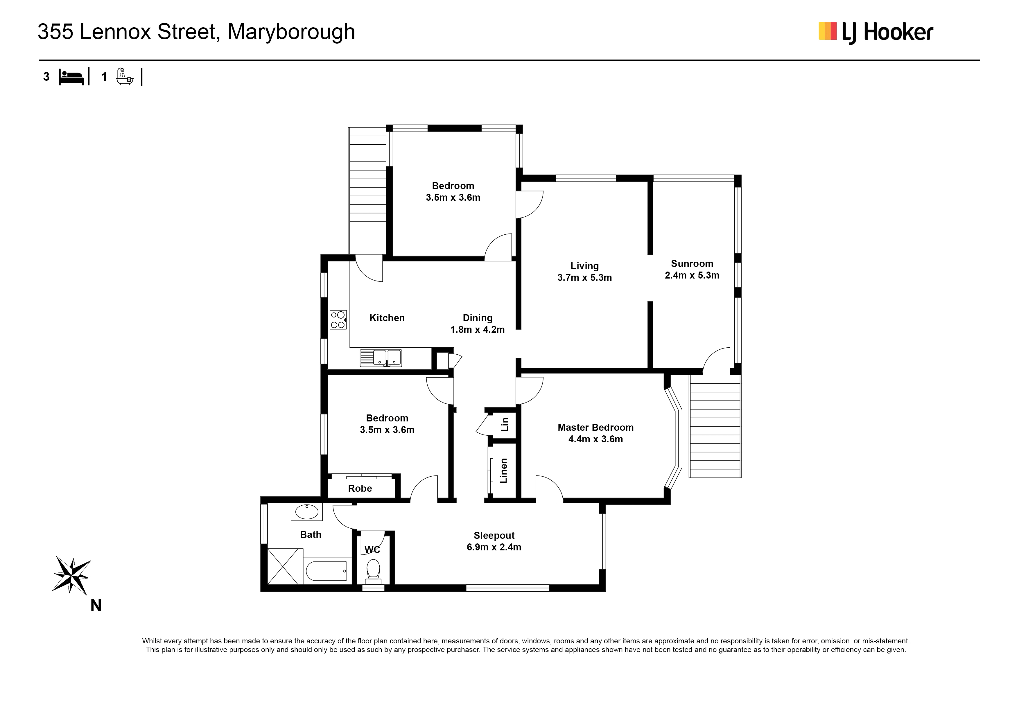 A welcoming front sunroom greets you on entry and flows through to the air-conditioned living areas. All bedrooms and the main living room are air-conditioned, while new carpet and freshly painted internal ceilings enhance the home’s light and fresh feel. The spacious eat-in kitchen offers plenty of room for family dining, and the main bathroom includes a separate bath and shower for added convenience.