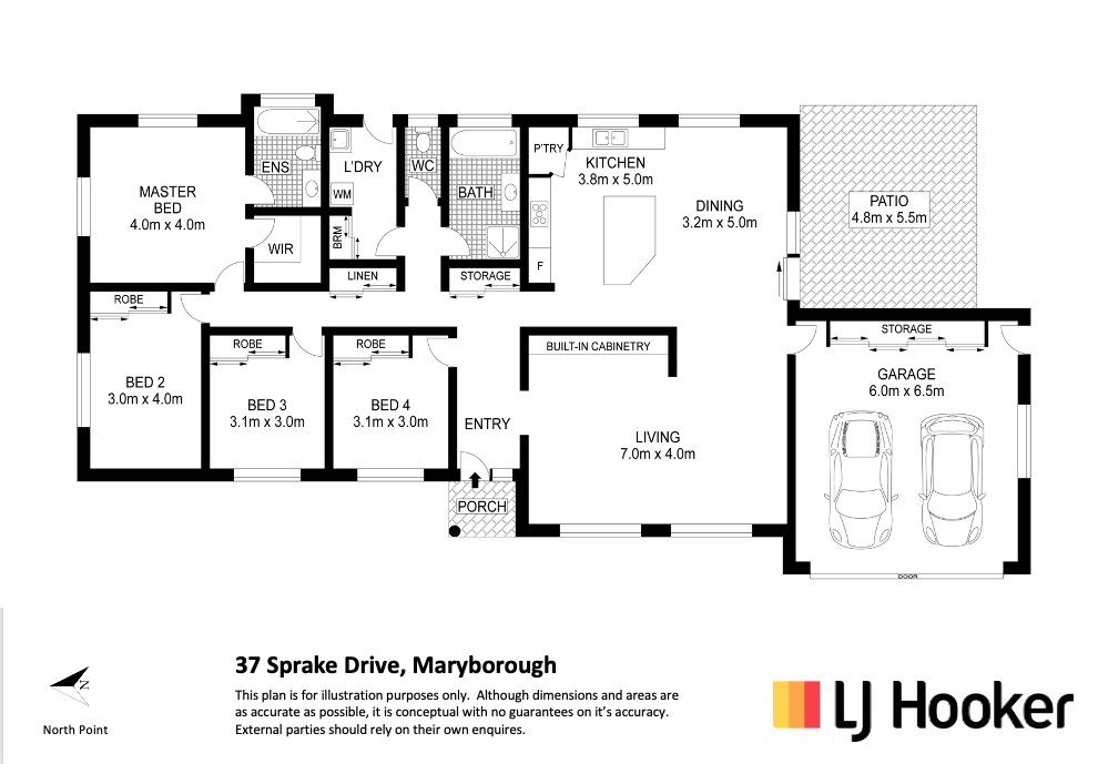 - Four car accommodation – 2 car lock up garage as well as double carport.