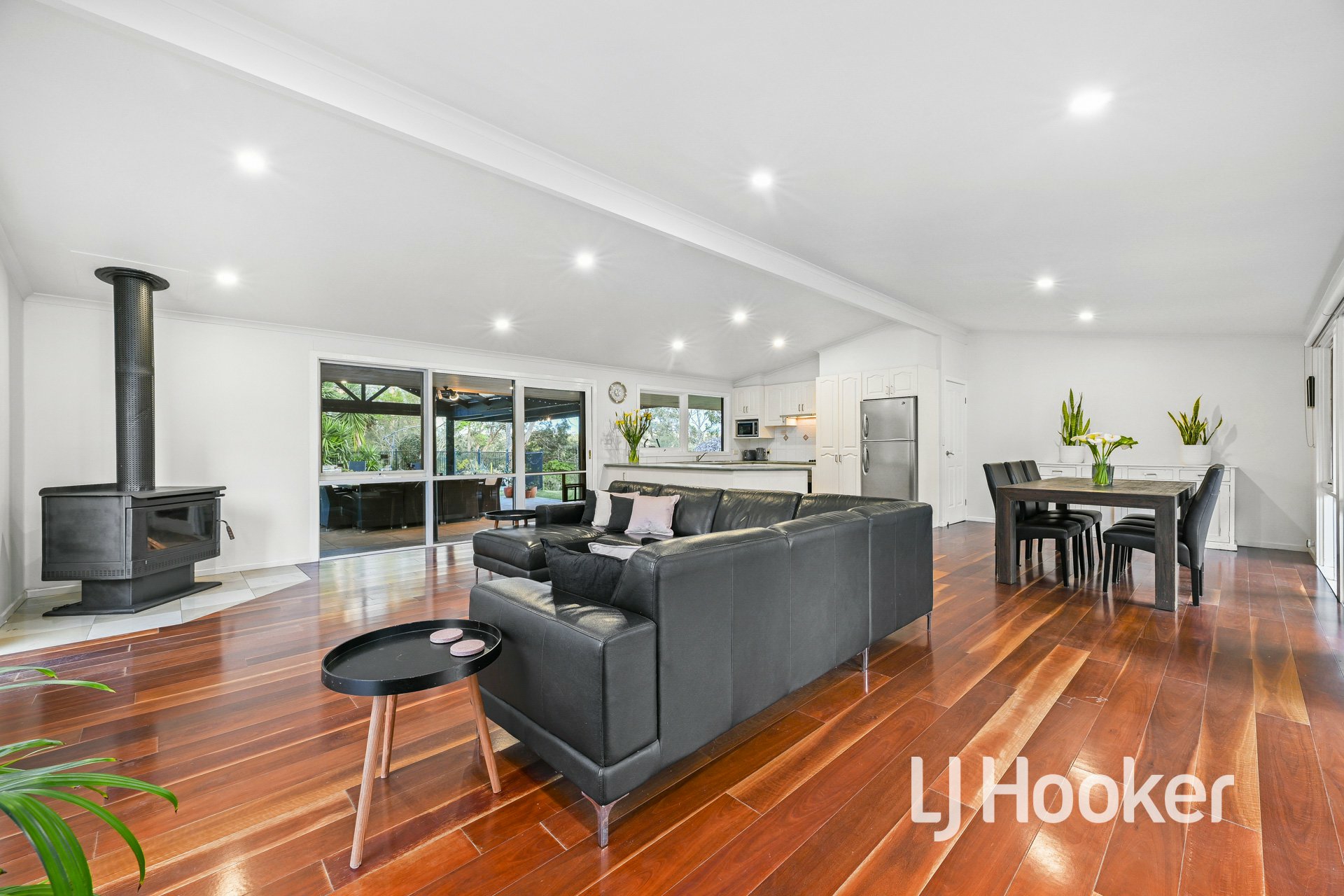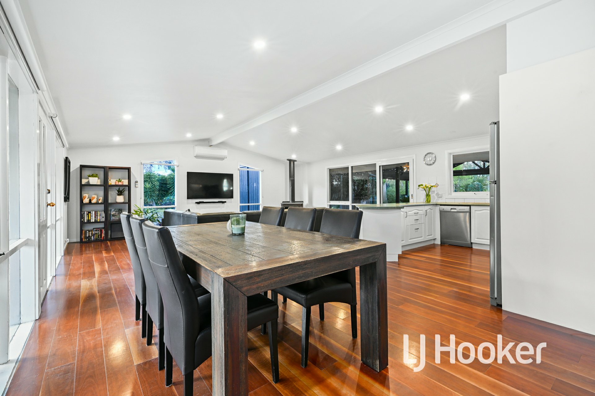 • Open plan living and dining space with split system heating & cooling plus wood heater