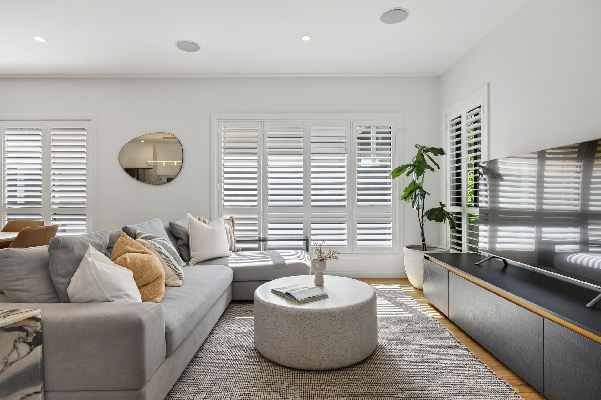 - Designer kitchen with premium appliances, flowing to expansive open-plan living and dining spaces.