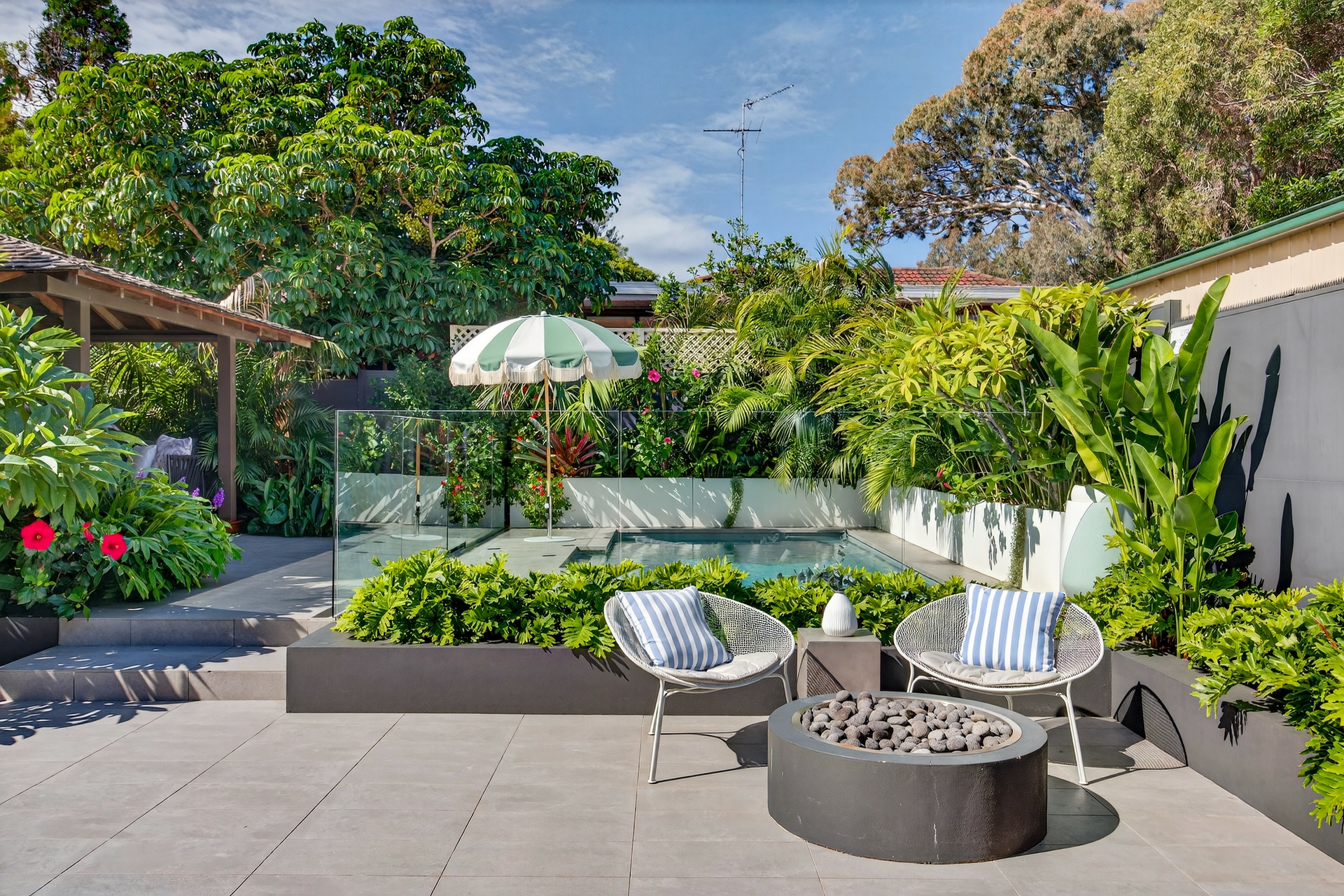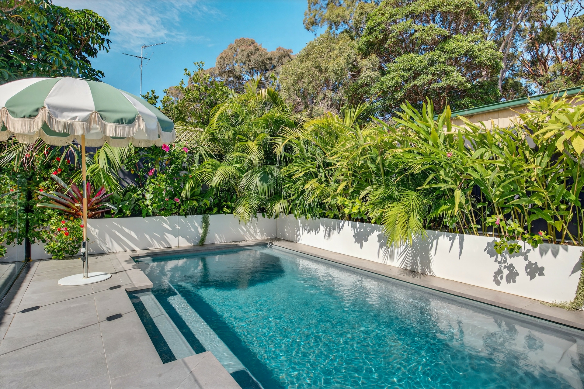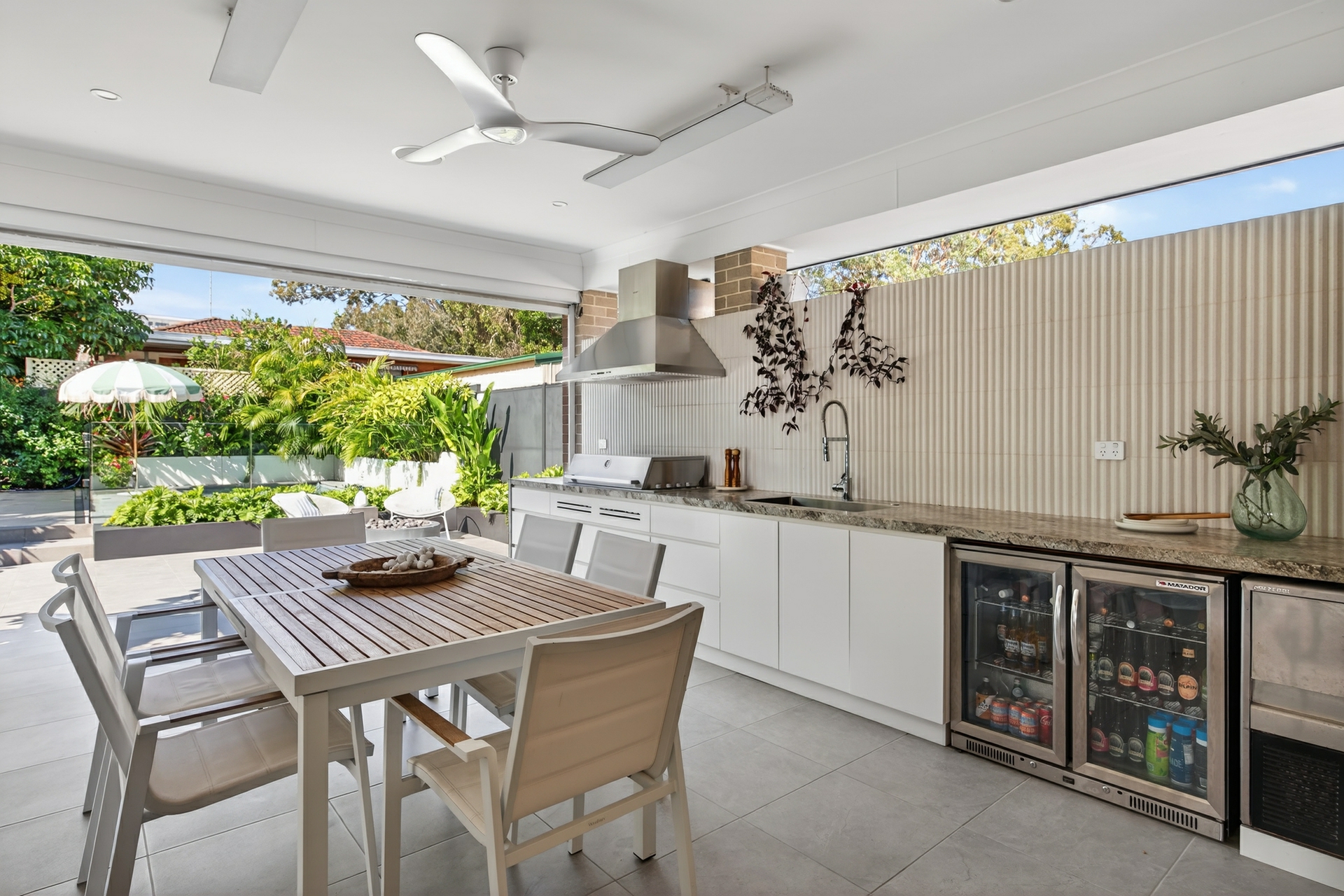 - Resort-style rear yard with heated fresh water swimming pool, covered alfresco entertaining, and a fully equipped outdoor kitchen with beefeater bbq, bar fridge and ice maker.